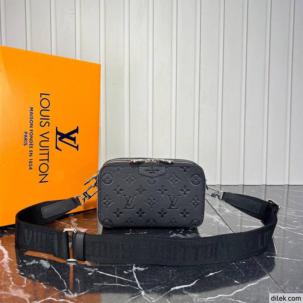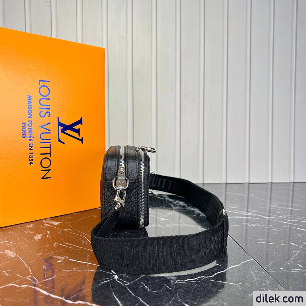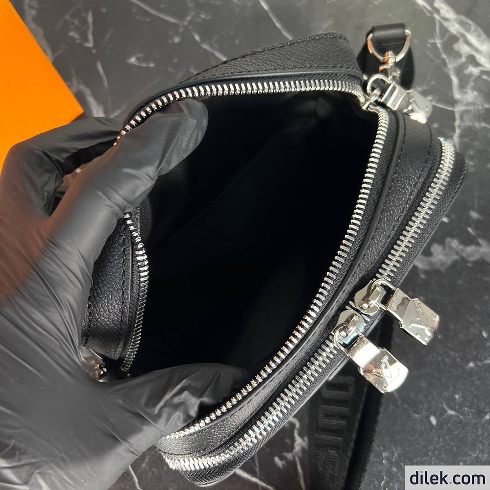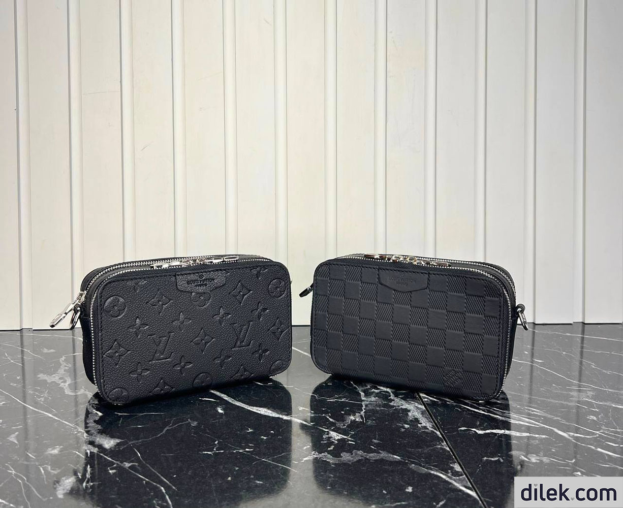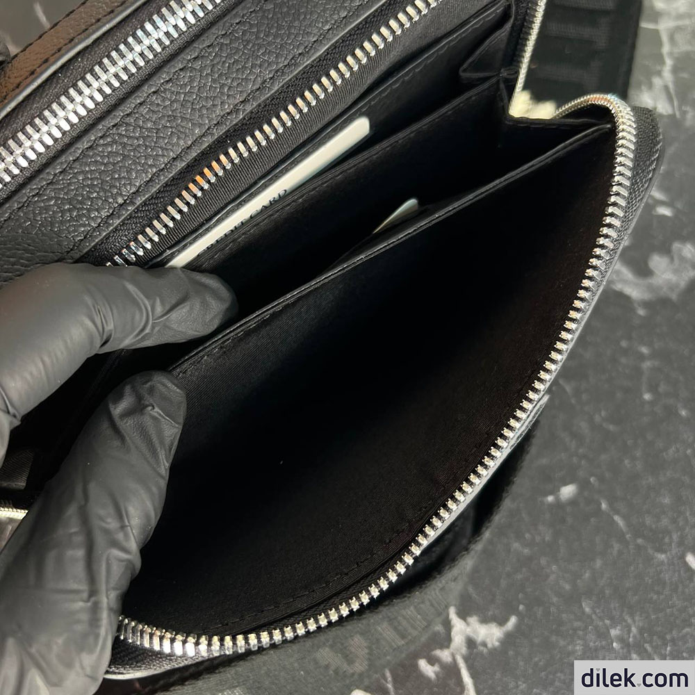 The versatile Alpha Wearable Wallet is fashioned from grained calf leather with discreet black hardware. Comfortable to carry, thanks to its adjustable and removable strap, it opens to reveal a gusseted interior large enough to hold two phones as well as cash, cards and other small essentials.