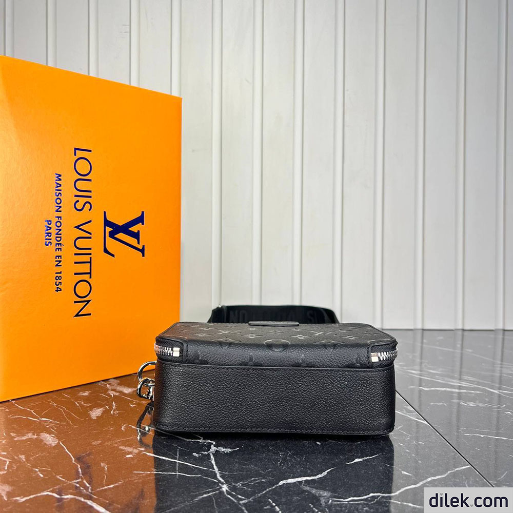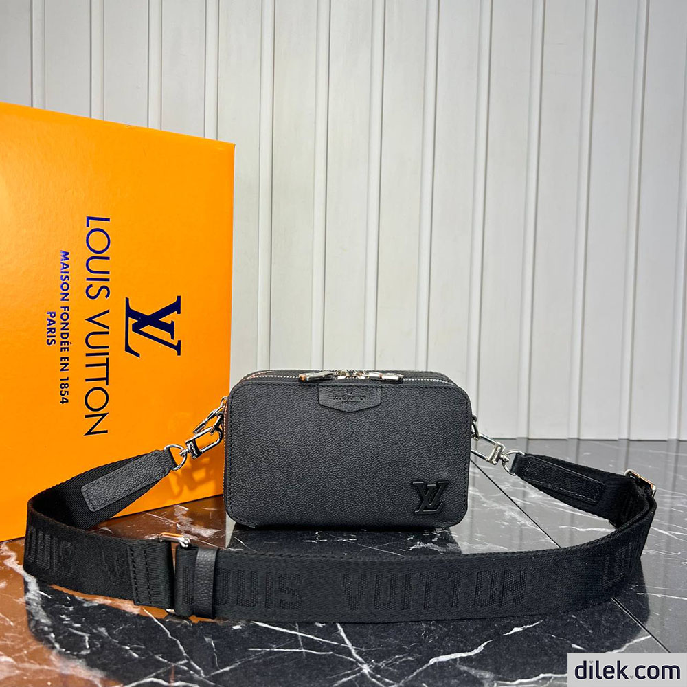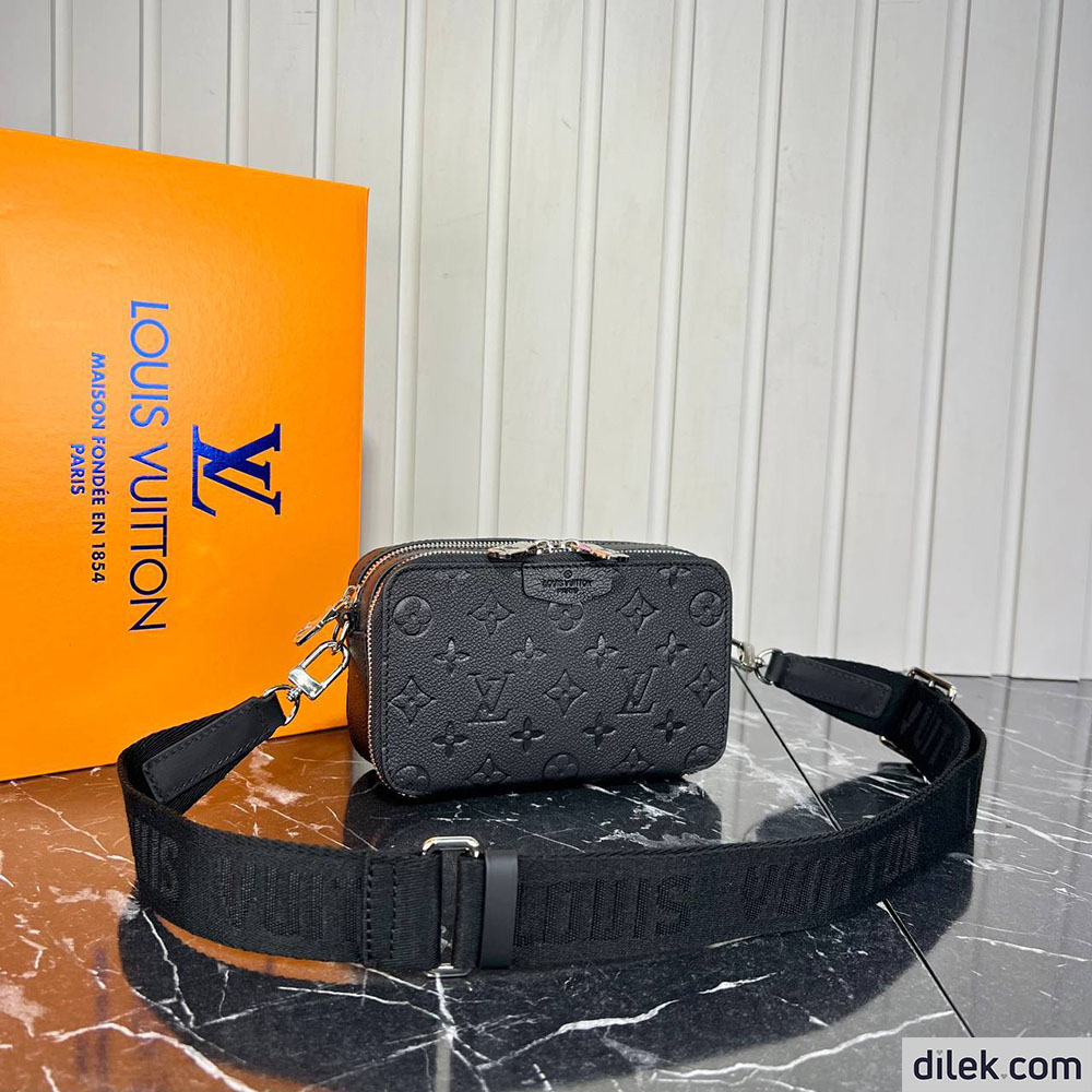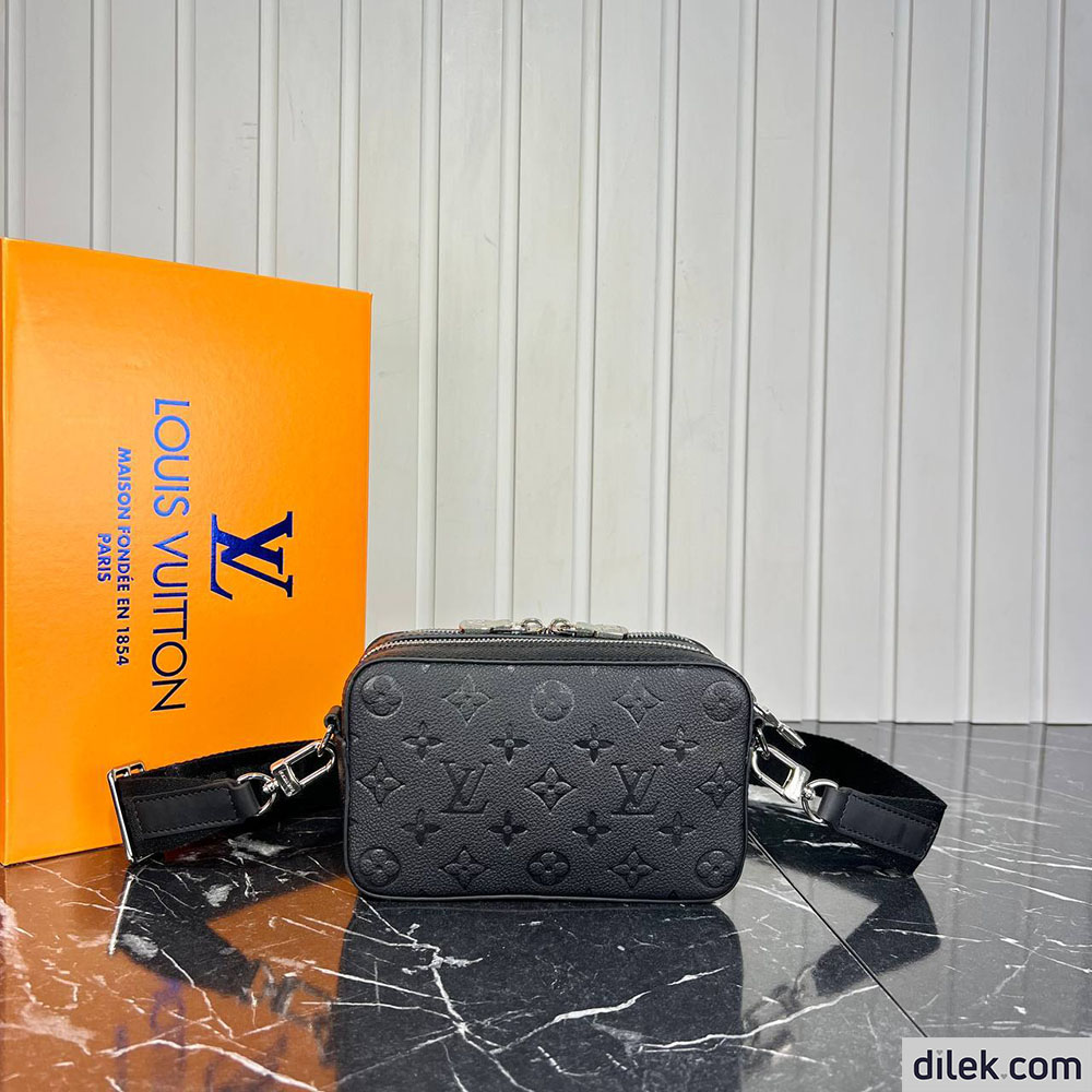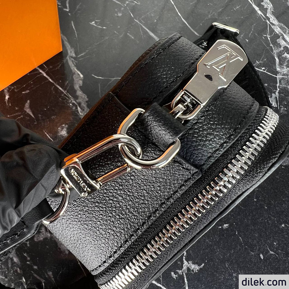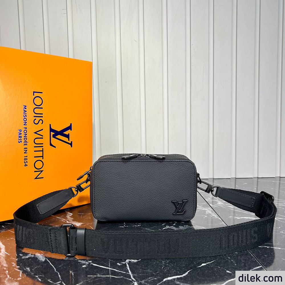 The versatile Alpha Wearable Wallet is fashioned from grained calf leather with discreet black hardware. Comfortable to carry, thanks to its adjustable and removable strap, it opens to reveal a gusseted interior large enough to hold two phones as well as cash, cards and other small essentials.