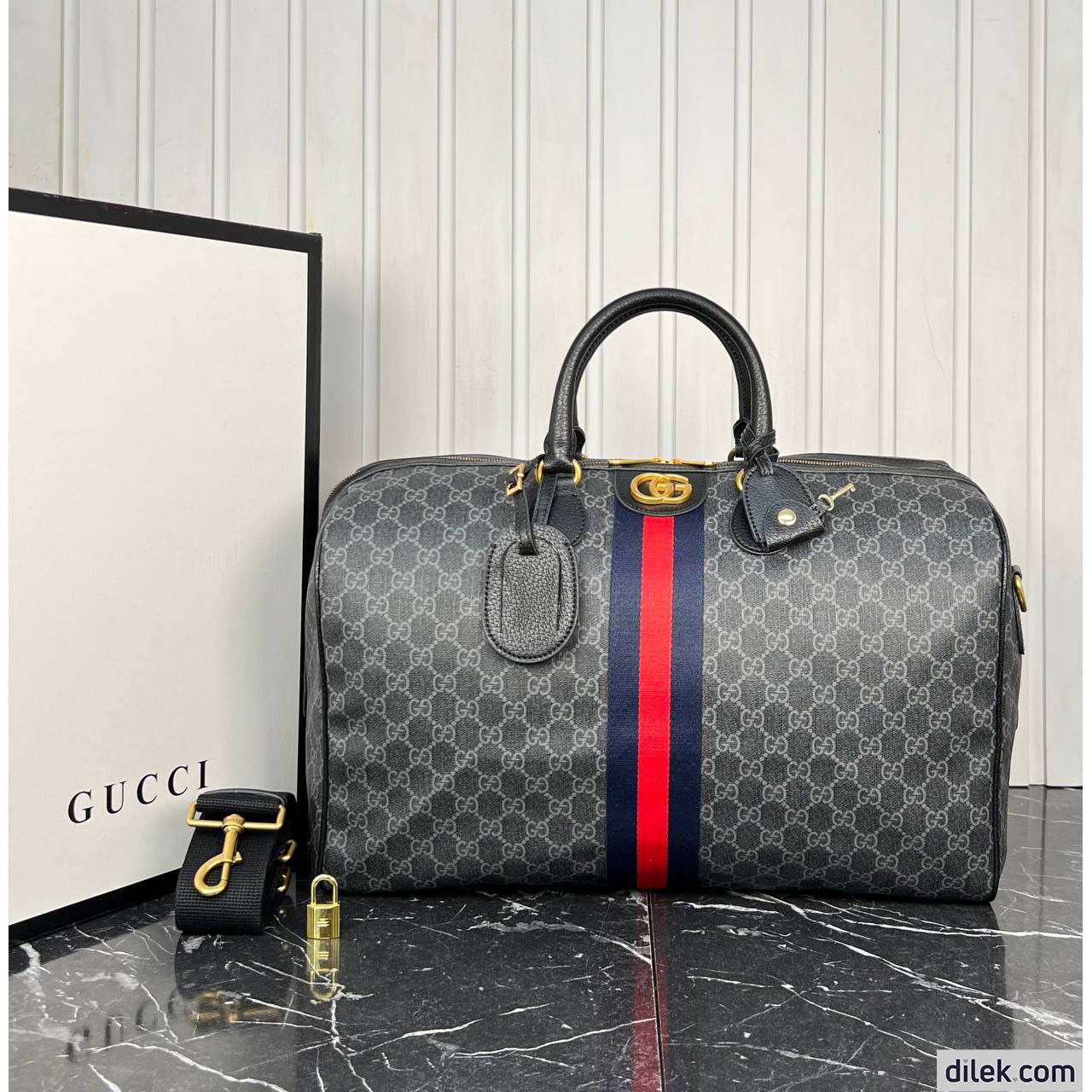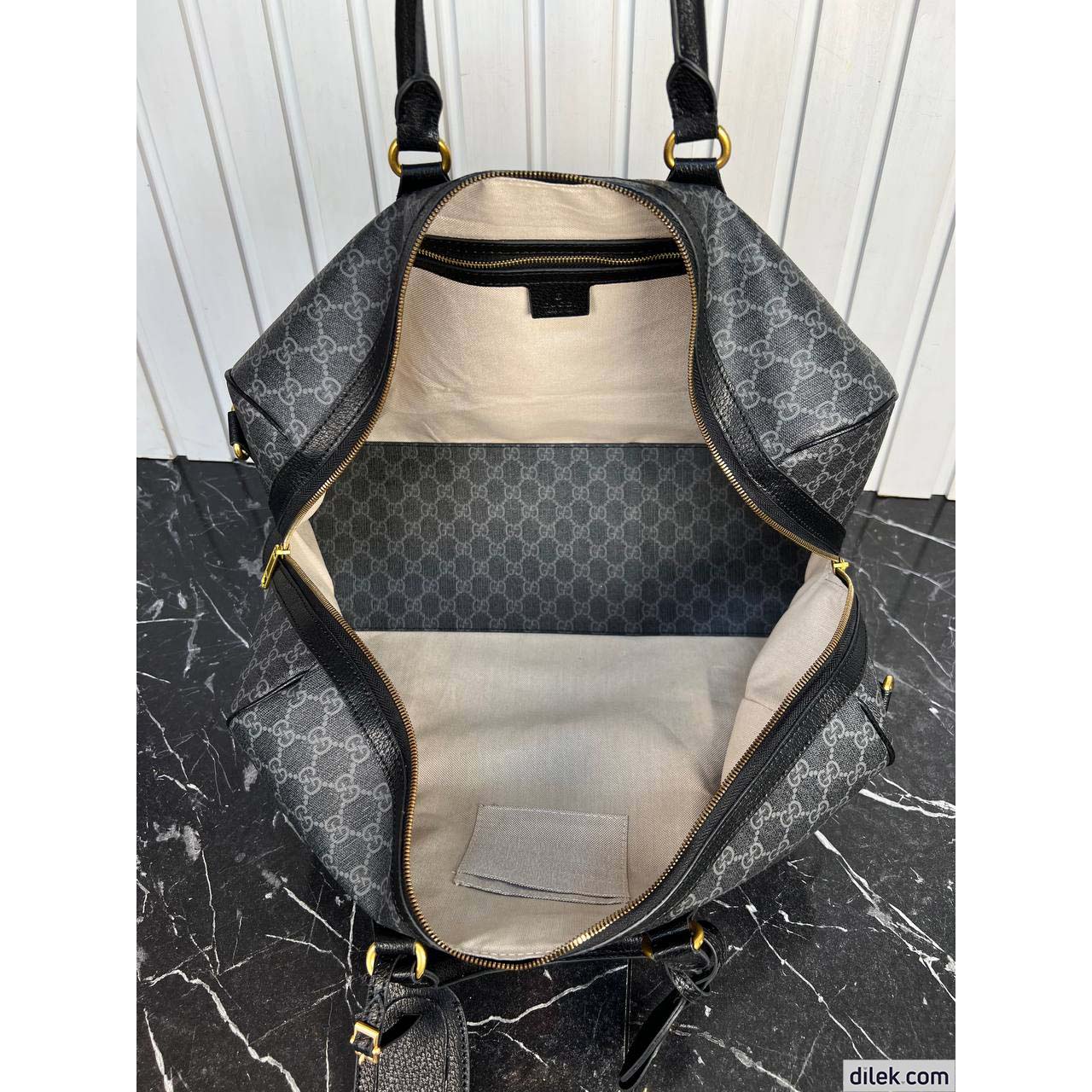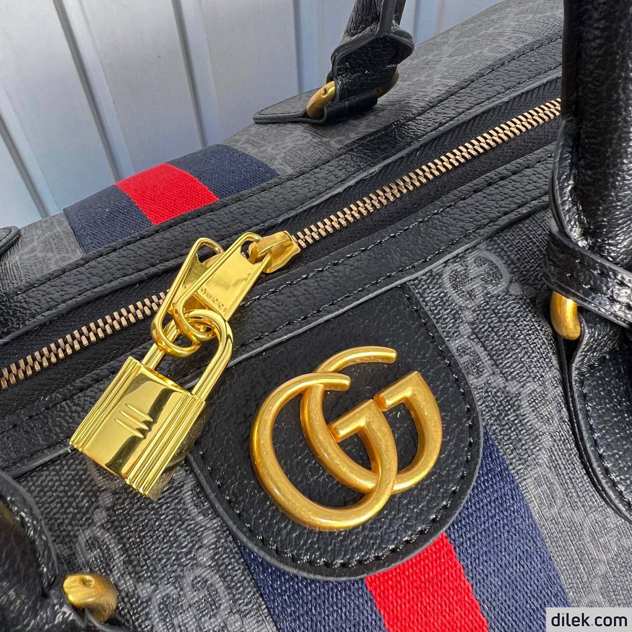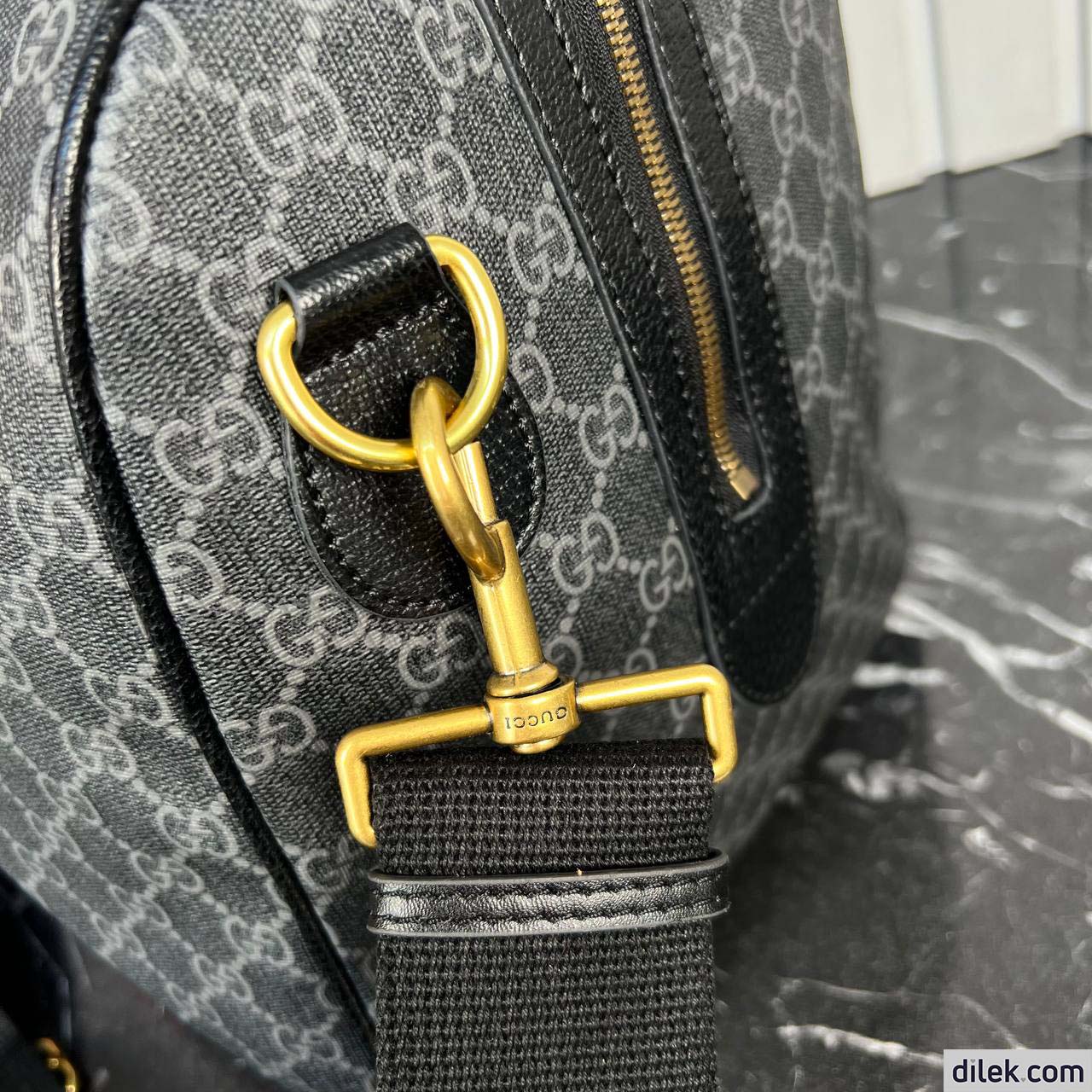 The Gucci colour palette is constantly evolving to include more refined hues. New colourways and combinations result in the reinvention of signature styles with a contemporary feel. This Ophidia duffle bag appears in an elegant grey and black variation of the GG Supreme canvas, complete with a palladium-toned Double G hardware.