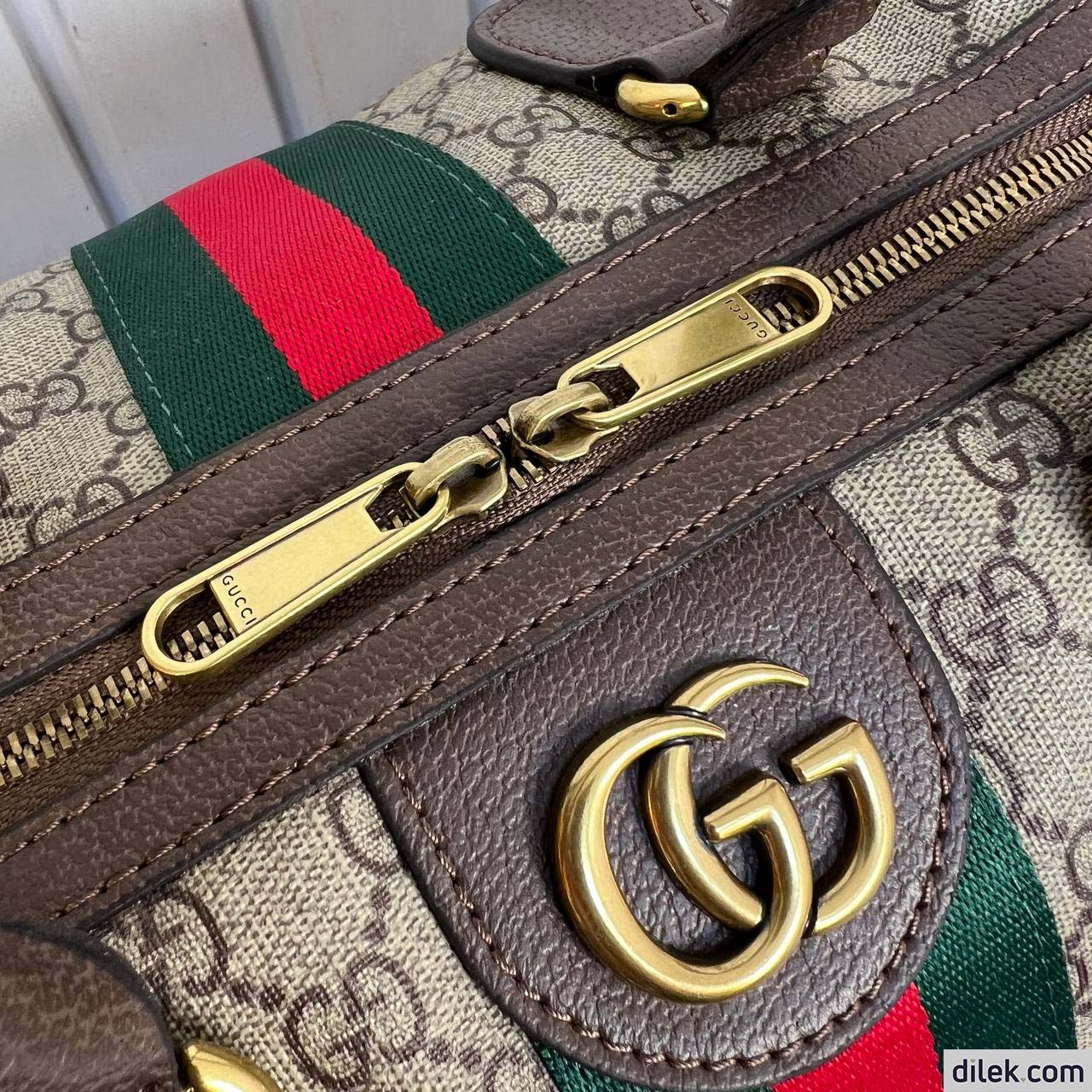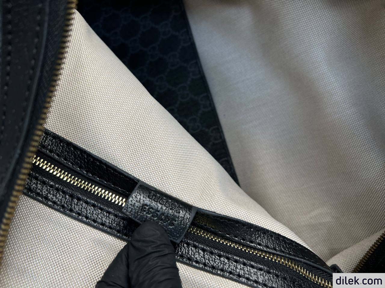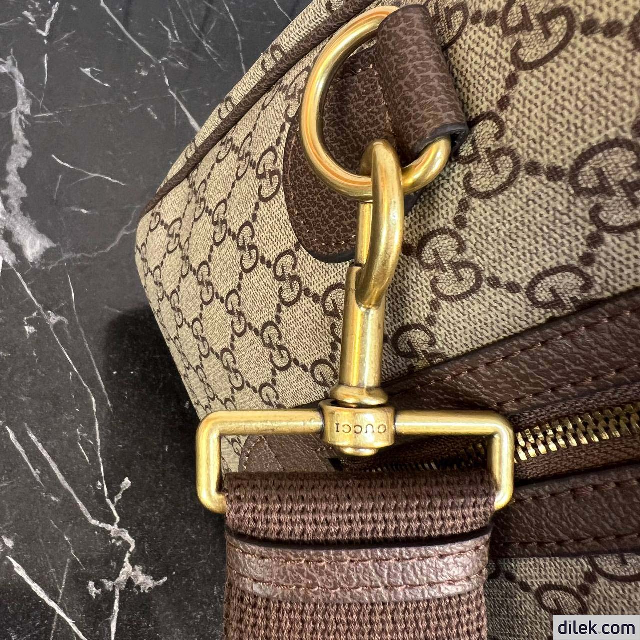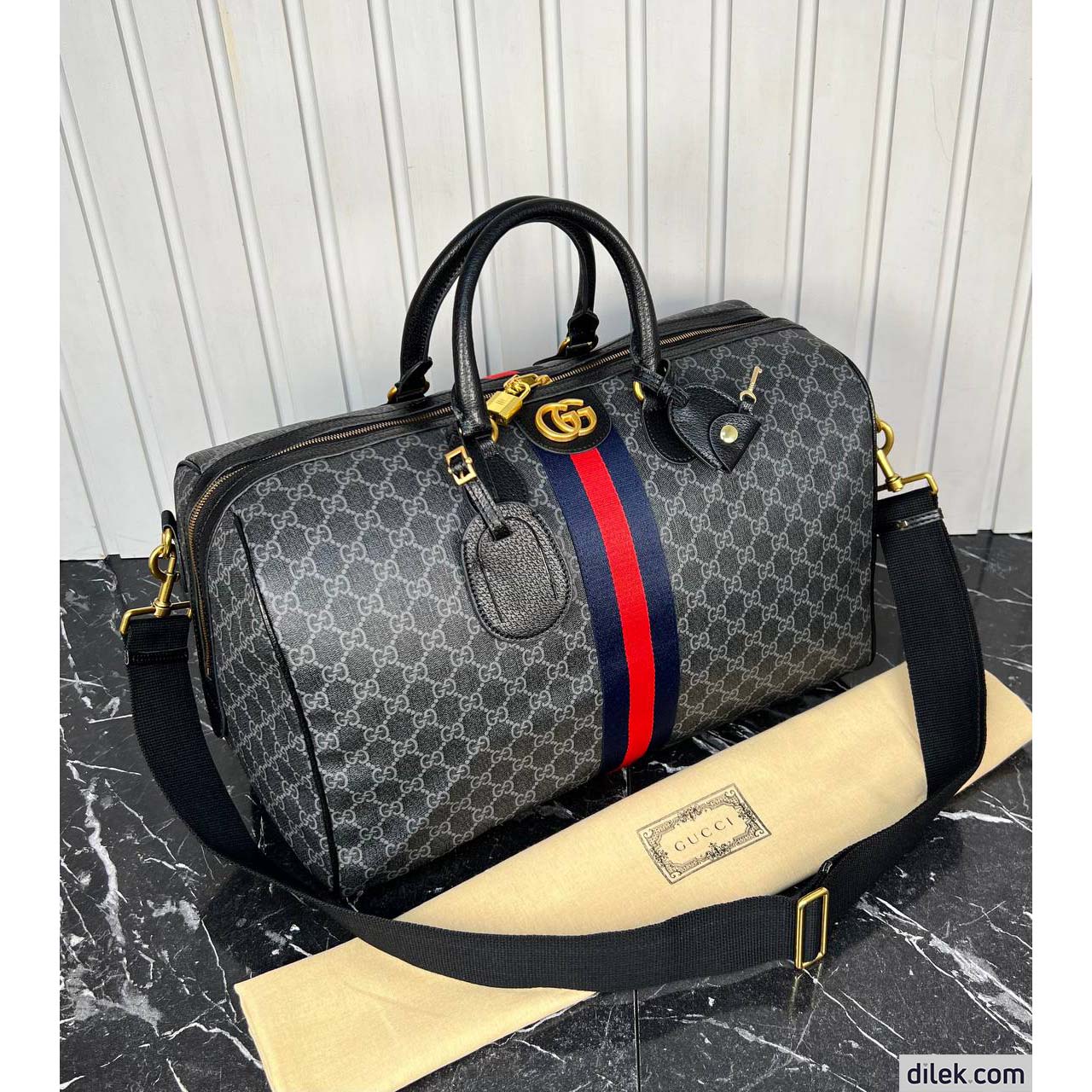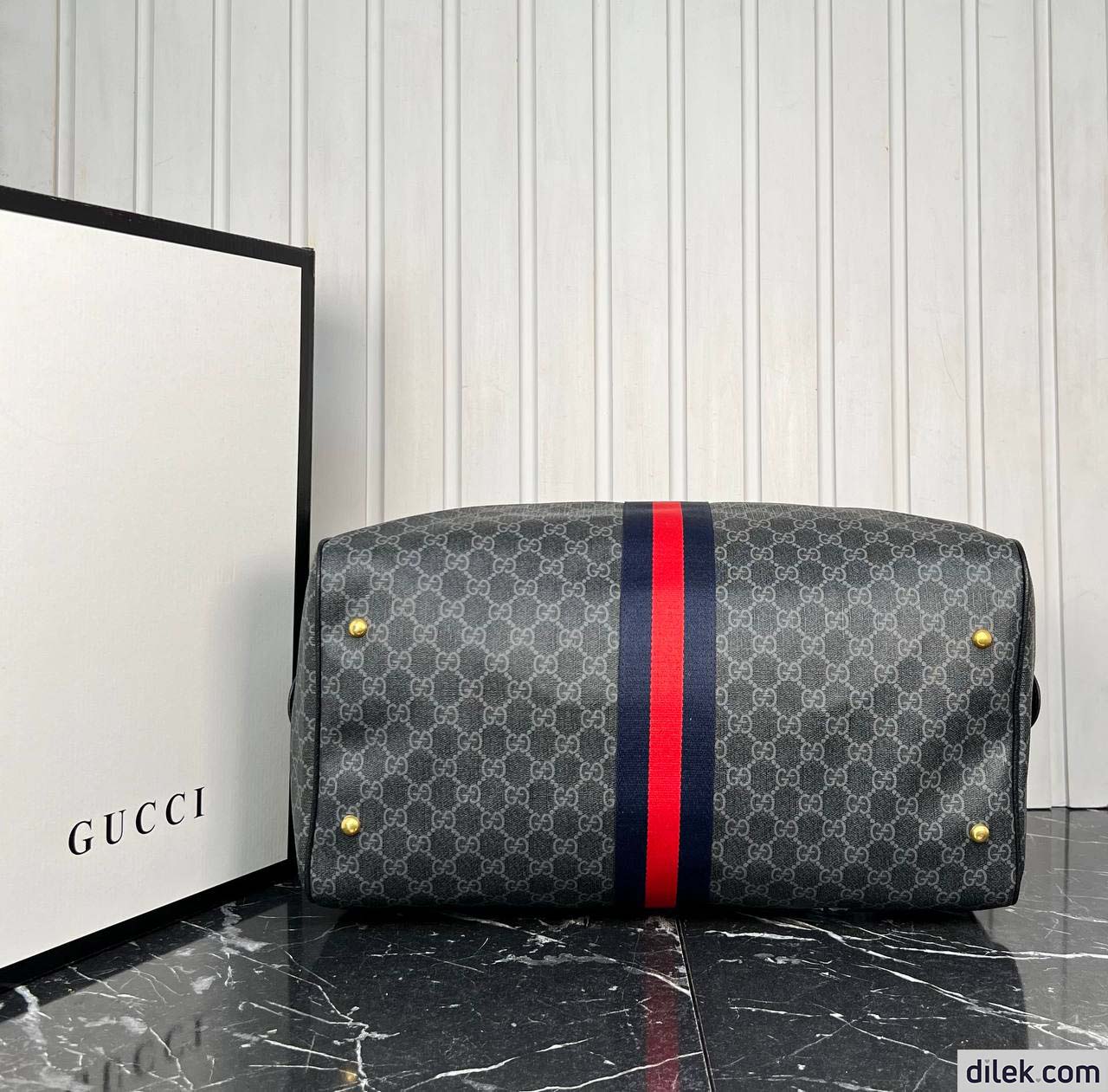 The Gucci colour palette is constantly evolving to include more refined hues. New colourways and combinations result in the reinvention of signature styles with a contemporary feel. This Ophidia duffle bag appears in an elegant grey and black variation of the GG Supreme canvas, complete with a palladium-toned Double G hardware.