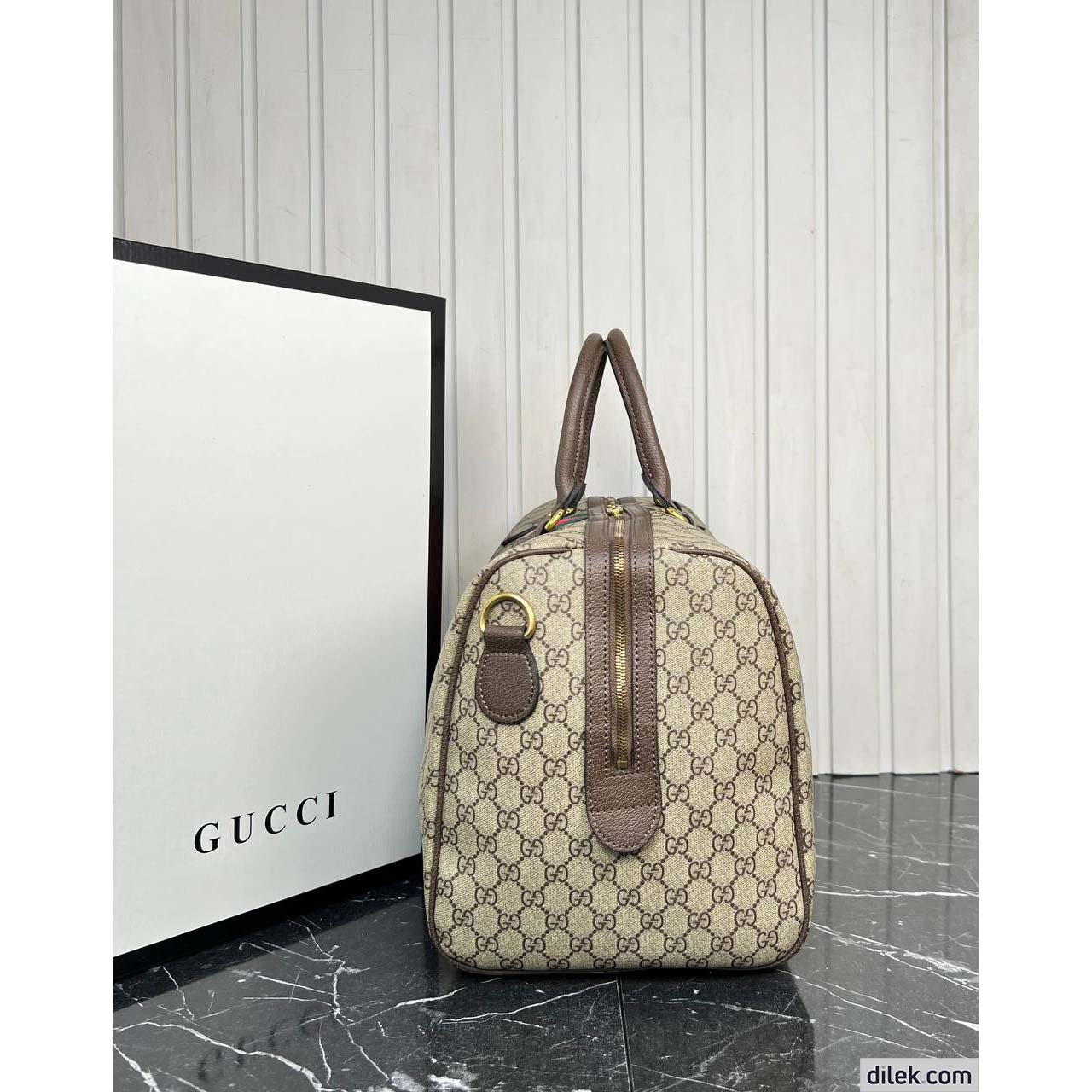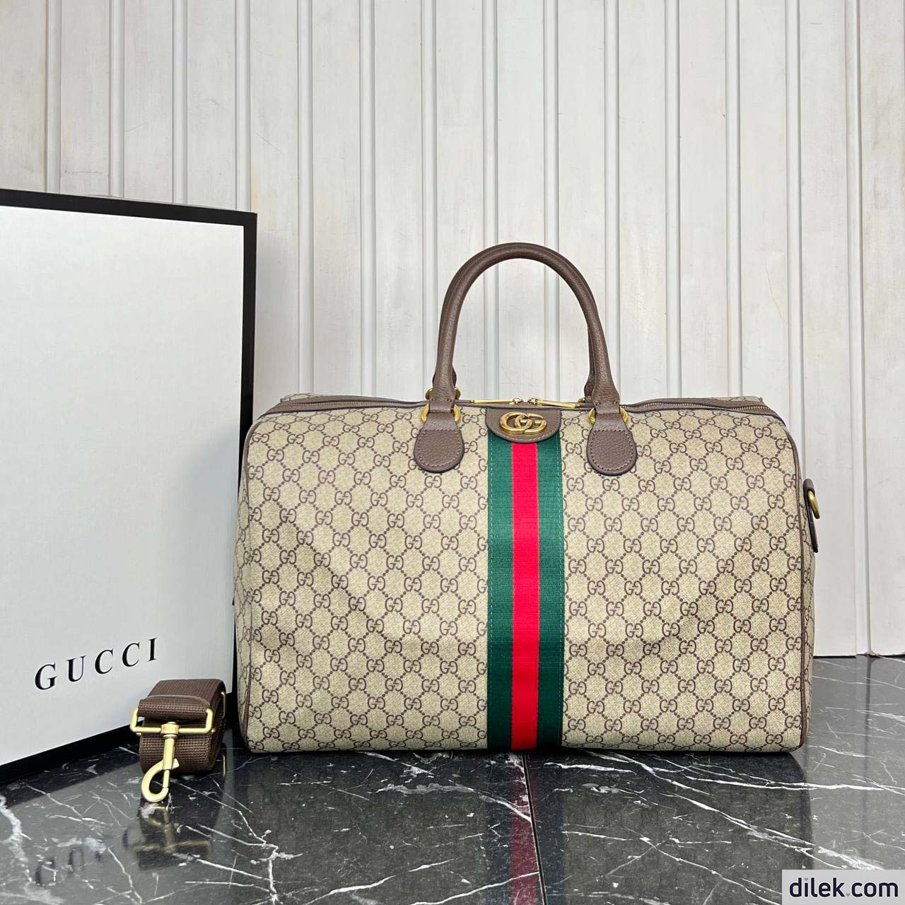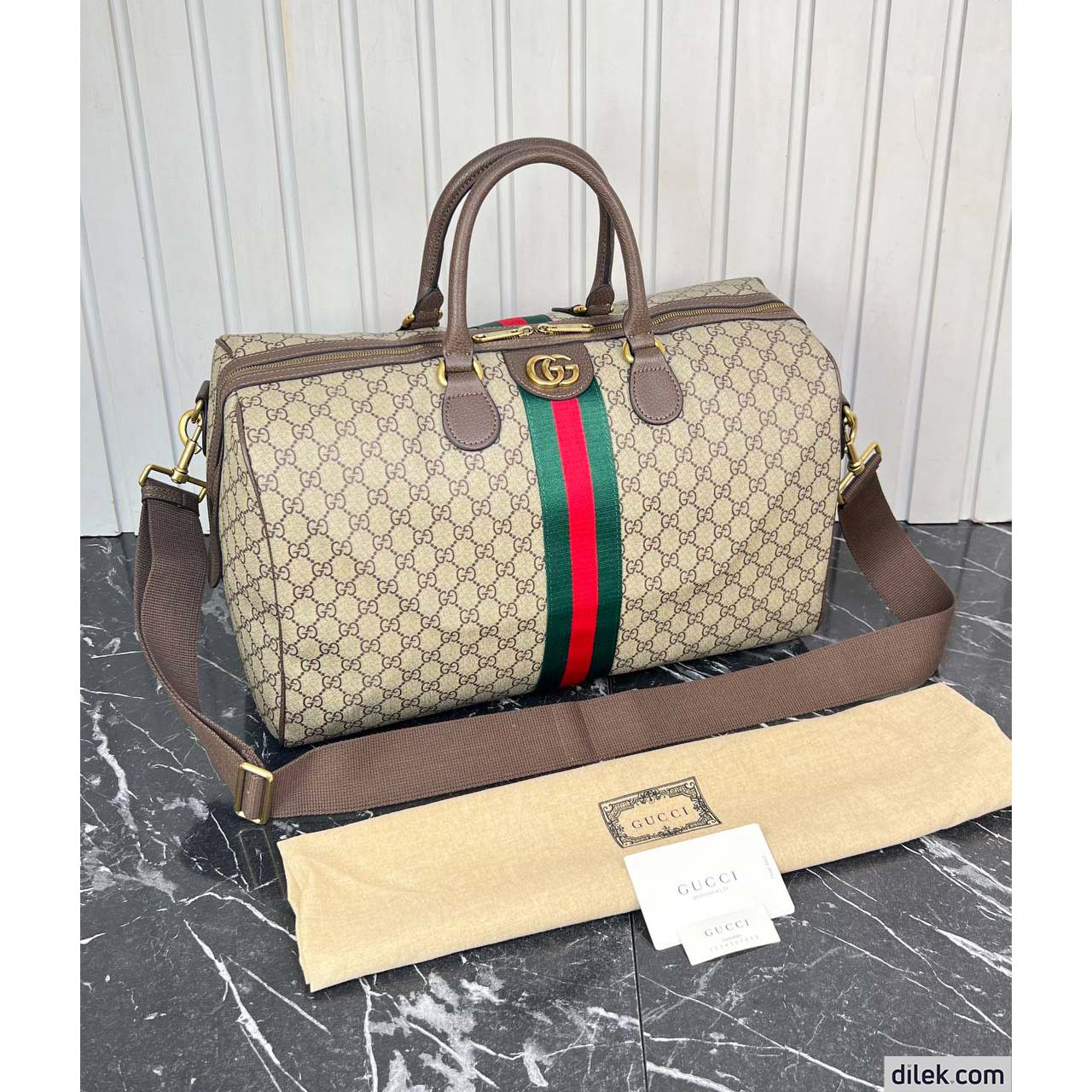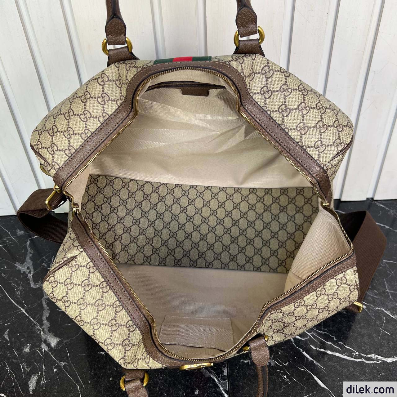 The Gucci colour palette is constantly evolving to include more refined hues. New colourways and combinations result in the reinvention of signature styles with a contemporary feel. This Ophidia duffle bag appears in an elegant grey and black variation of the GG Supreme canvas, complete with a palladium-toned Double G hardware.
