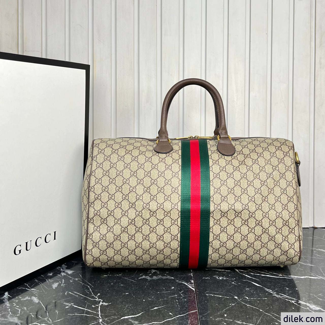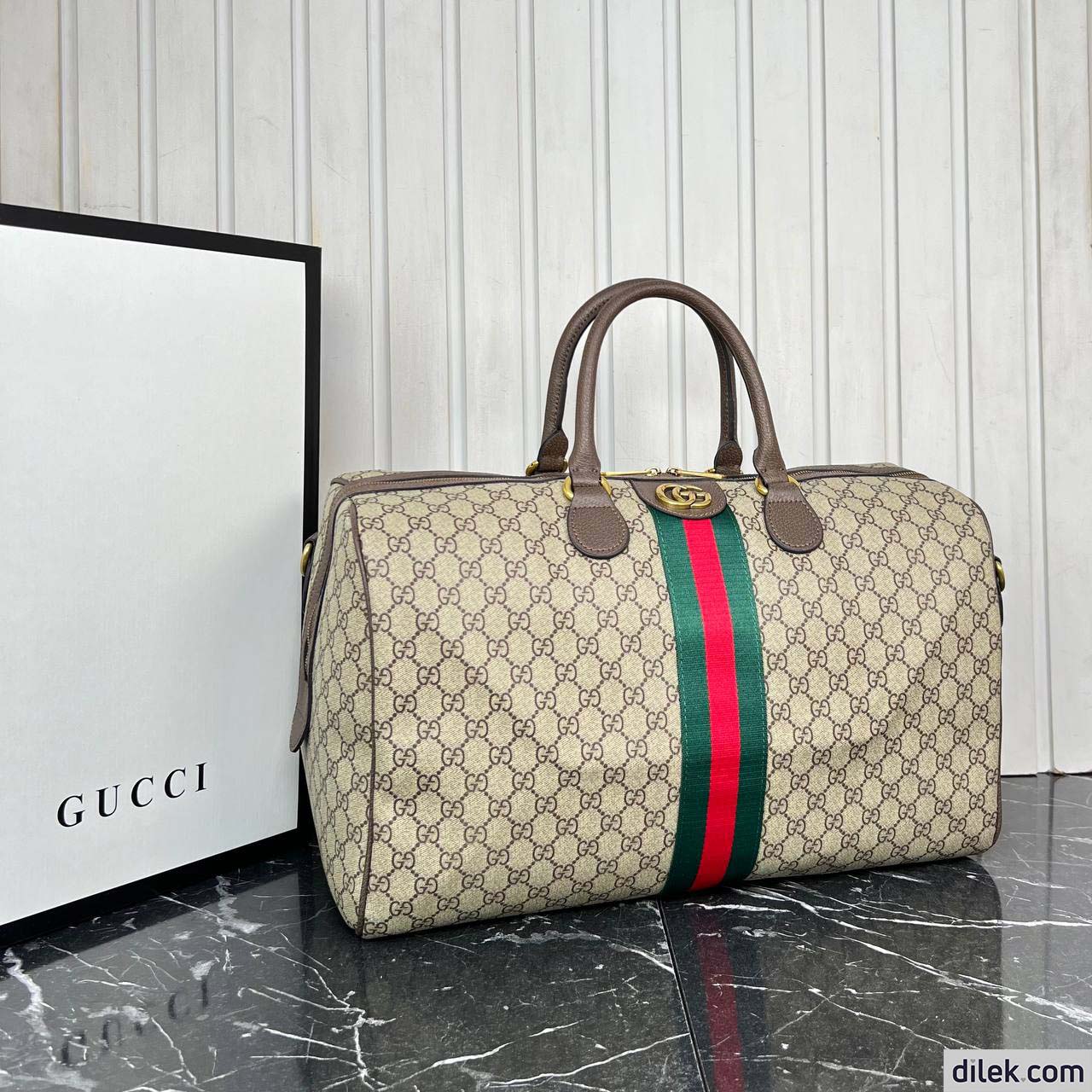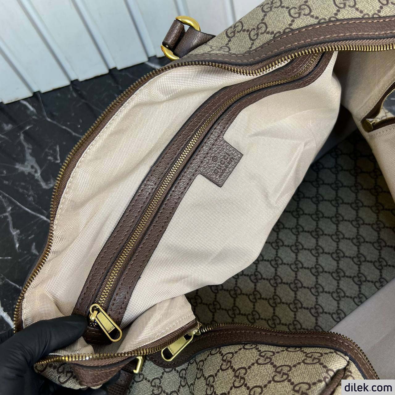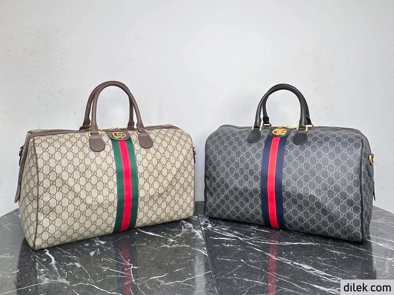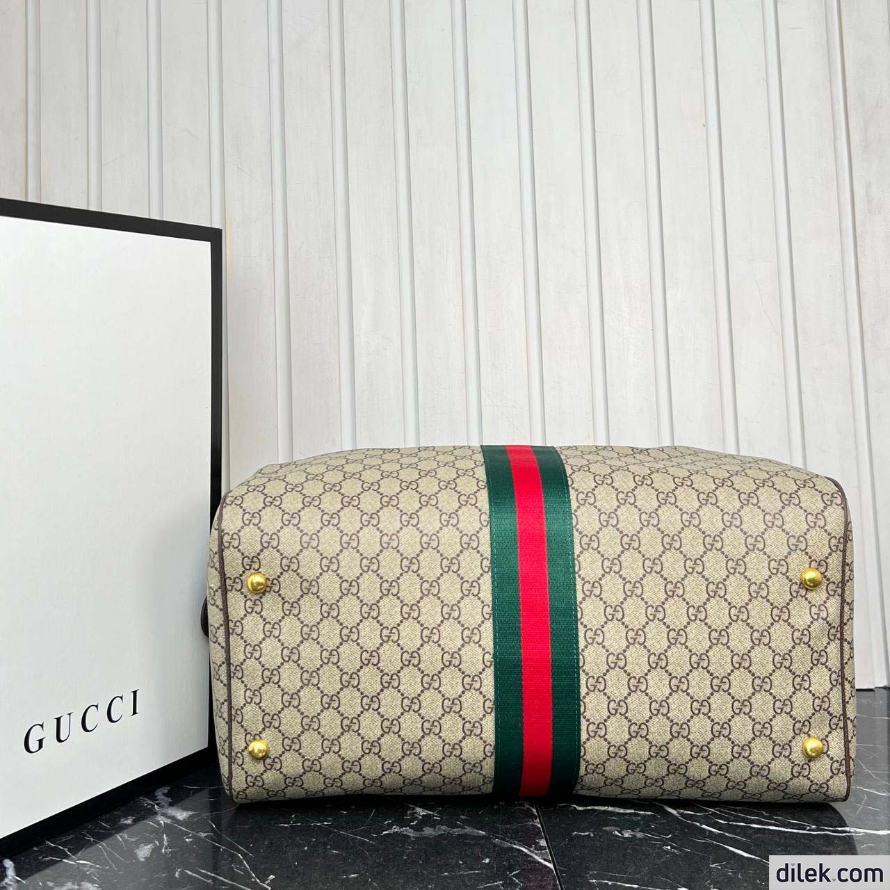 The Gucci colour palette is constantly evolving to include more refined hues. New colourways and combinations result in the reinvention of signature styles with a contemporary feel. This Ophidia duffle bag appears in an elegant grey and black variation of the GG Supreme canvas, complete with a palladium-toned Double G hardware.
