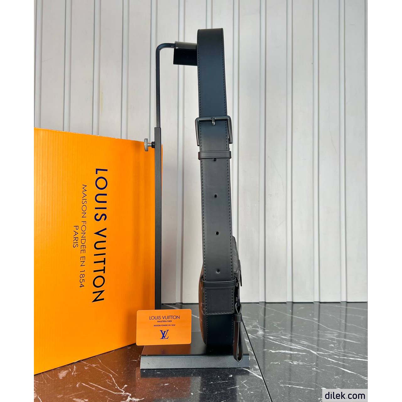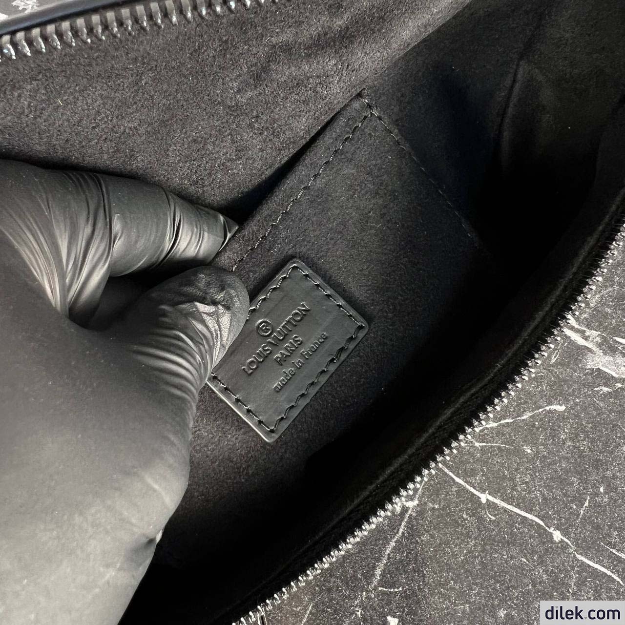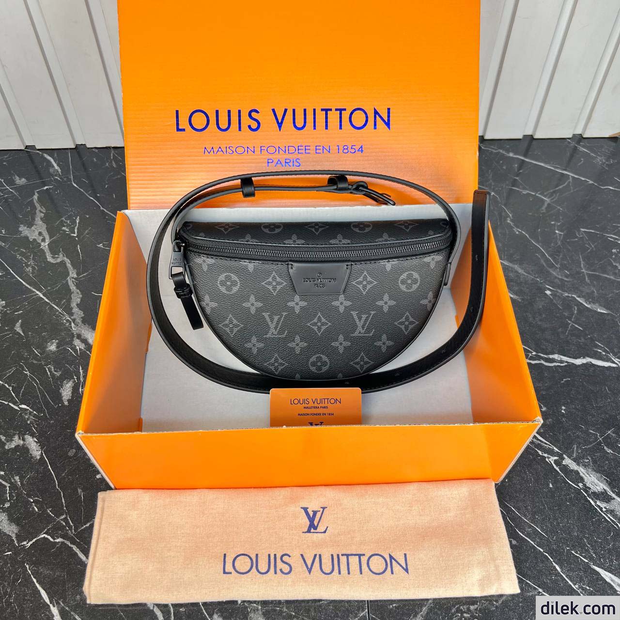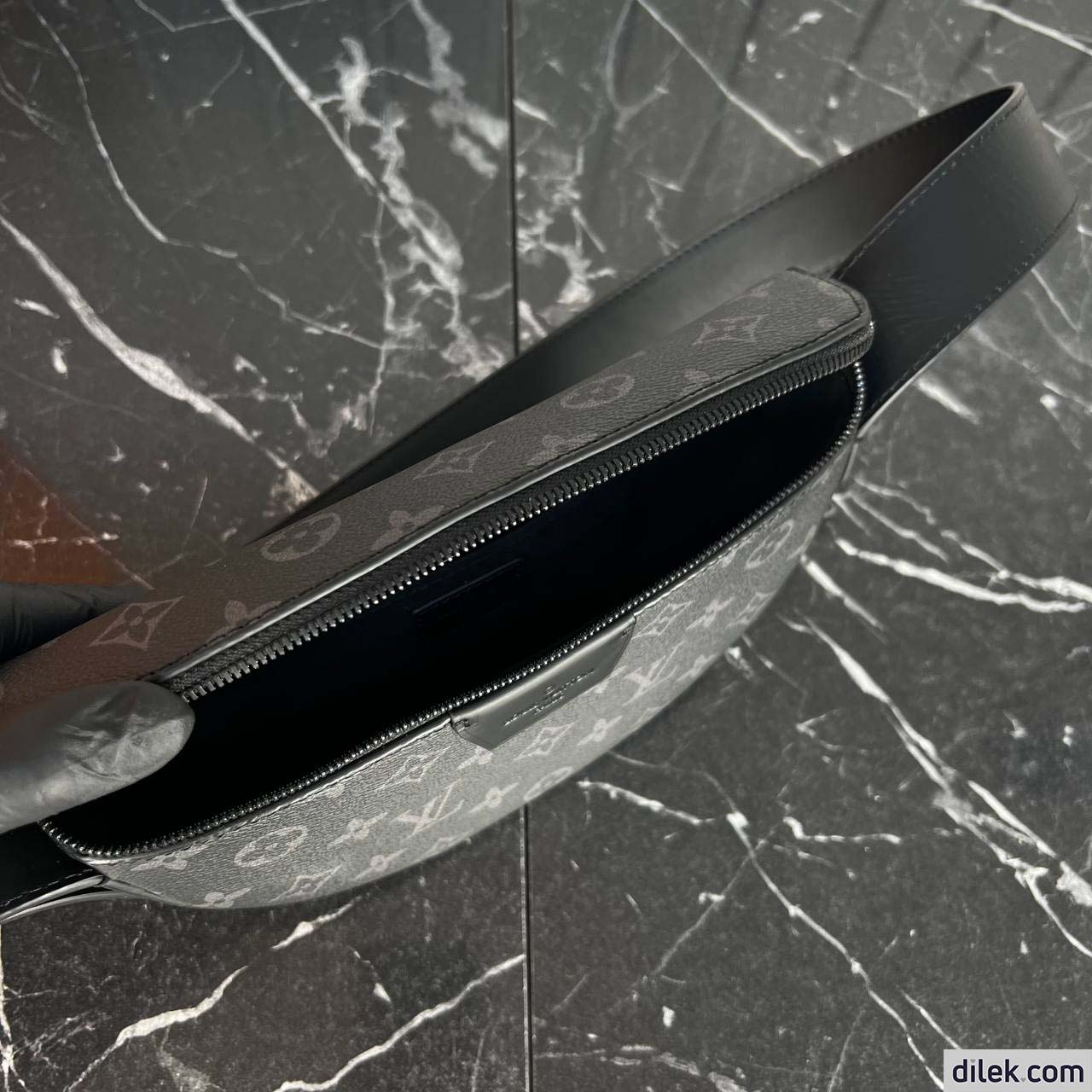The LV Moon Crossbody bag is made from Monogram Eclipse coated canvas with black-leather trim and strap, giving it a masculine sophistication. The bag’s half-moon shape makes it comfortable to wear, whether across the front of the back of the body. It can easily fit a phone, small wallet, and earphones.