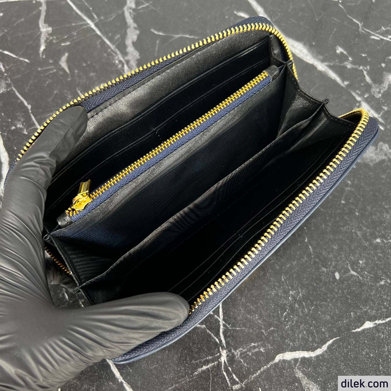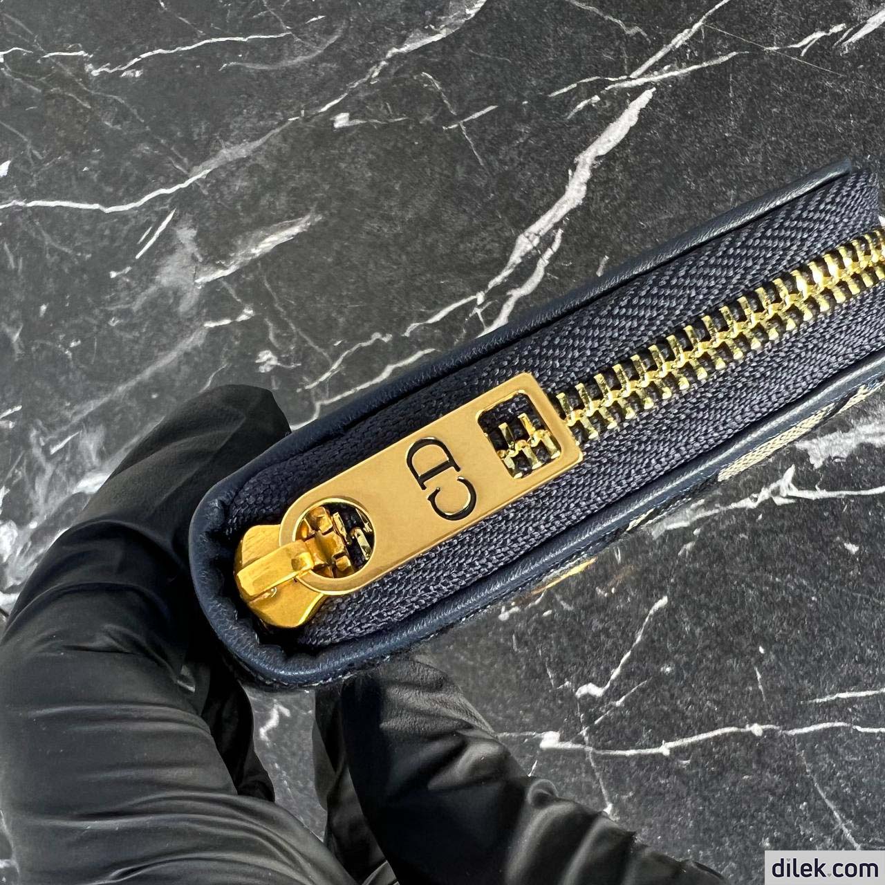 The Dior Caro Voyageur wallet is crafted in cloud blue supple calfskin and offers a contemporary variation of the iconic Cannage topstitching. A spacious and chic companion, the accessory is embellished with a 'CD' signature on the front and may be paired with bags of the same line.