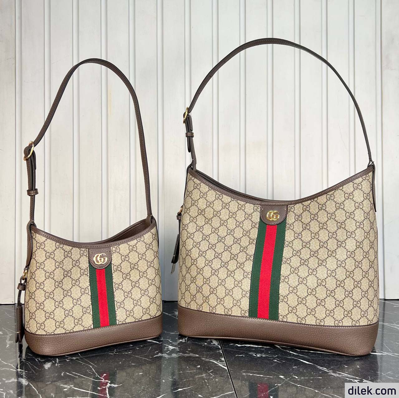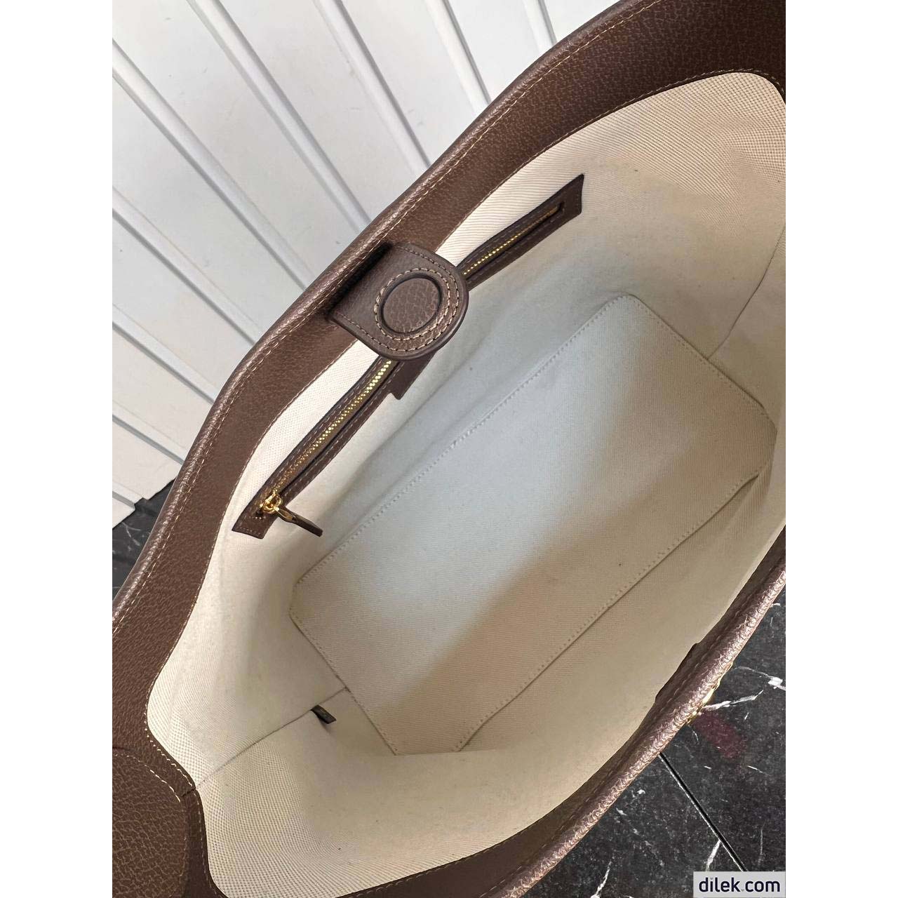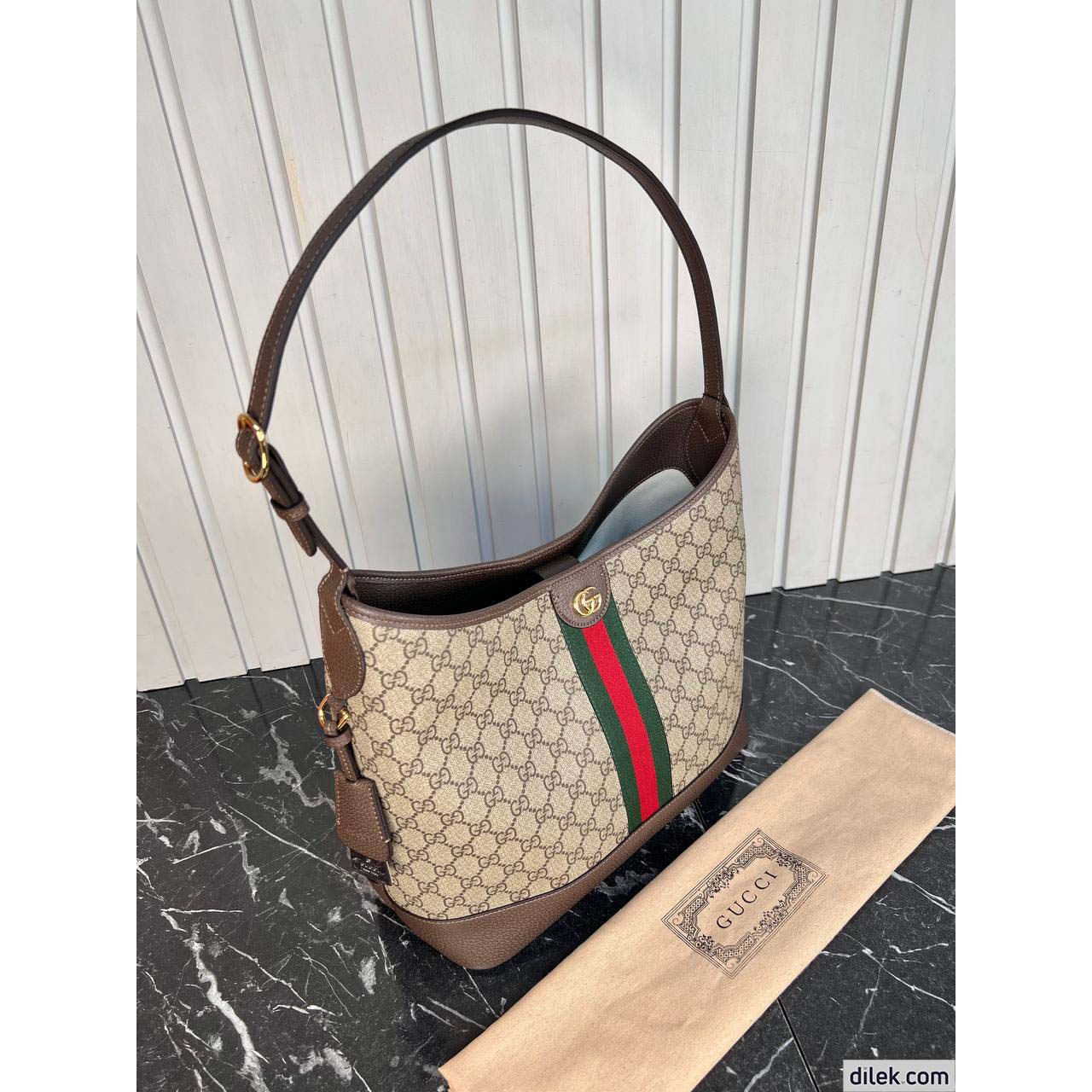 The Ophidia is reinvented in new and unexpected ways in this medium-sized piece which blends the open bucket design and shoulder bag style. It is crafted in the House's signature GG Supreme canvas in the iconic color combination of beige and ebony.