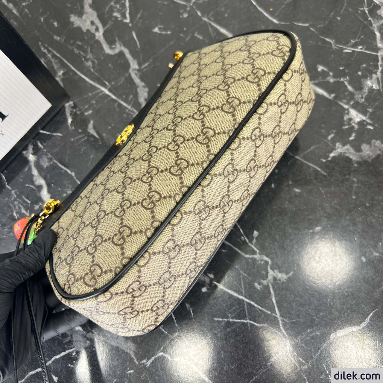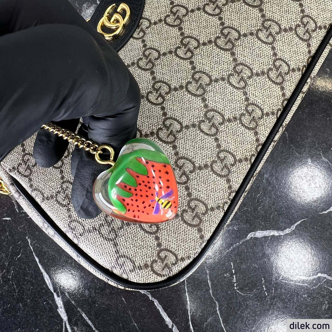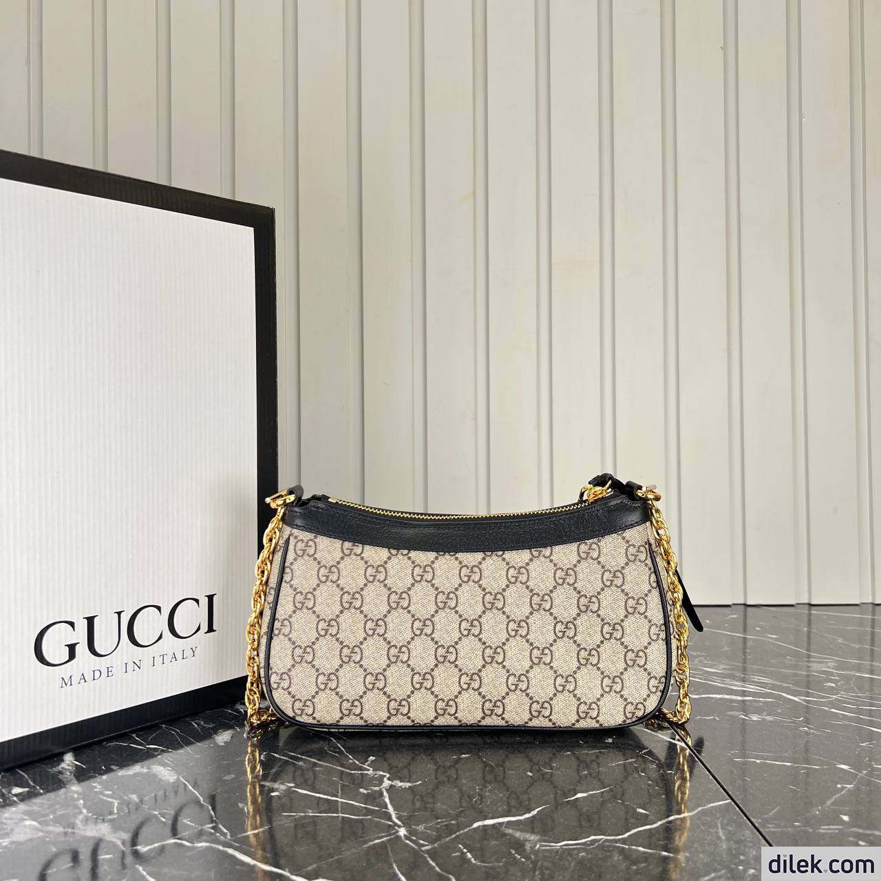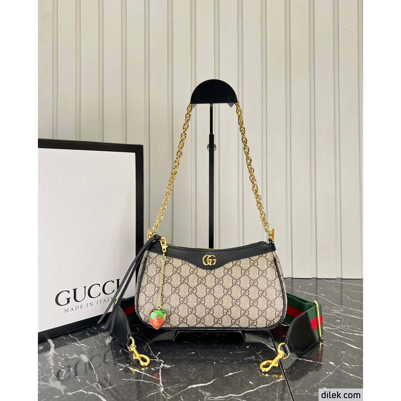 House collections continue the idea that pieces should be timeless and not just in fashion for one season. Guccio Gucci's everlasting monogram continues to enrich new designs with a logo feel. This Ophidia small handbag is presented in the historical GG Supreme canvas, complete with the Double G hardware.