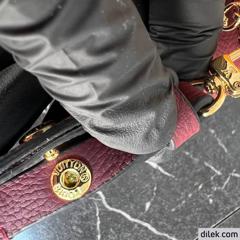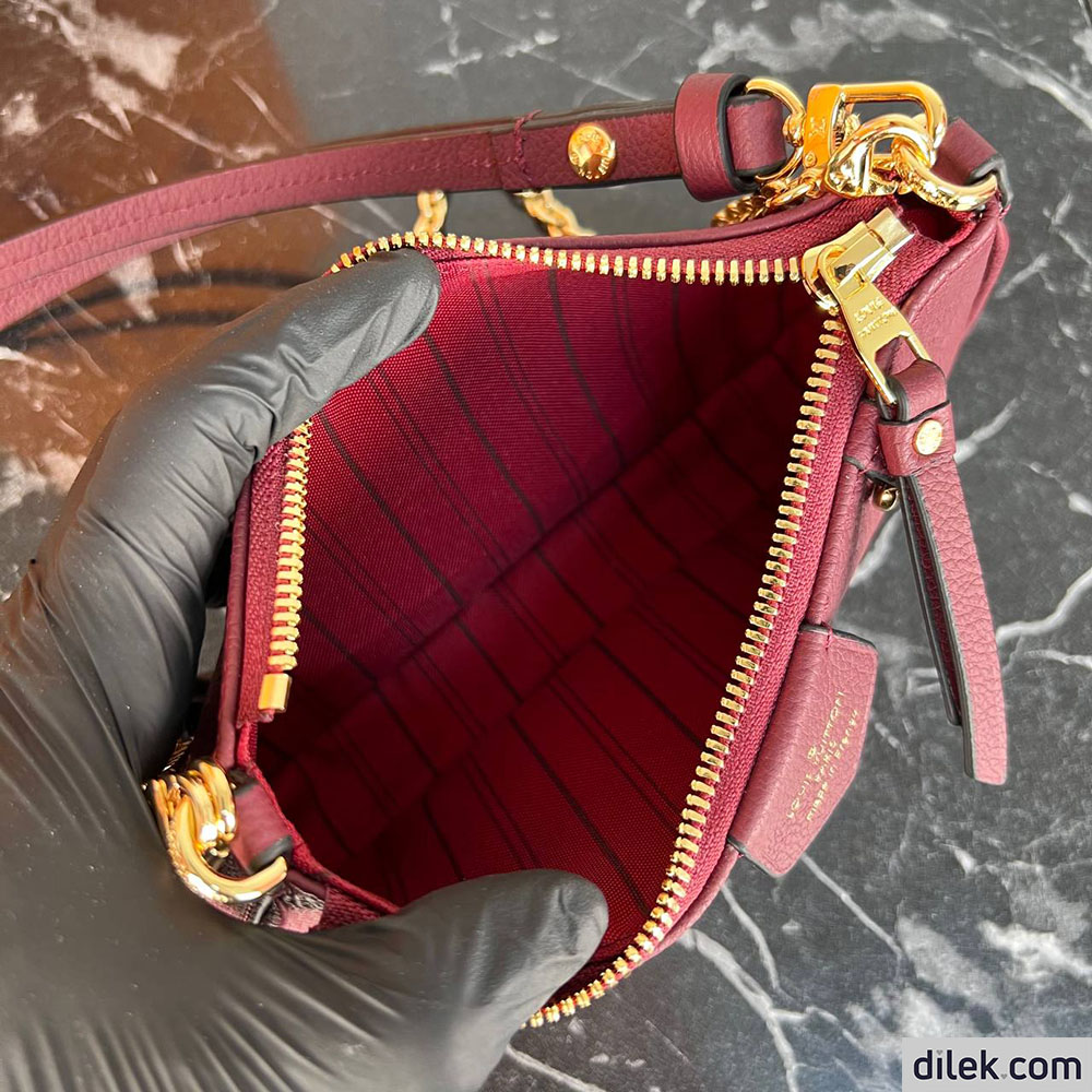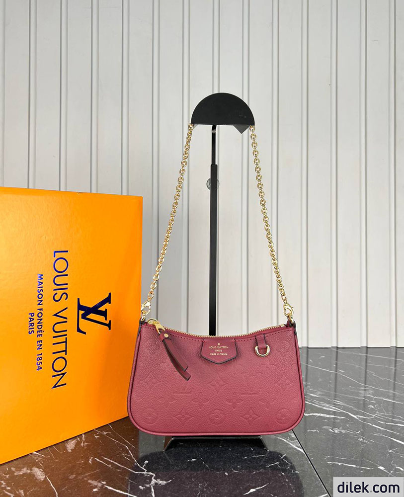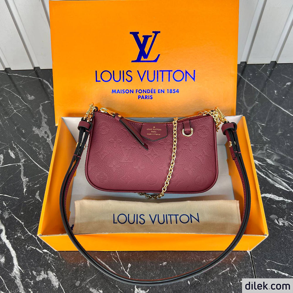 The Easy Pouch is made from Monogram Empreinte leather in a dark red colorway that lends itself perfectly to the Monogram embossing. This versatile pouch, with its curved lines and tiny D-ring, can be worn on the shoulder or cross-body thanks to the removable chain and strap.