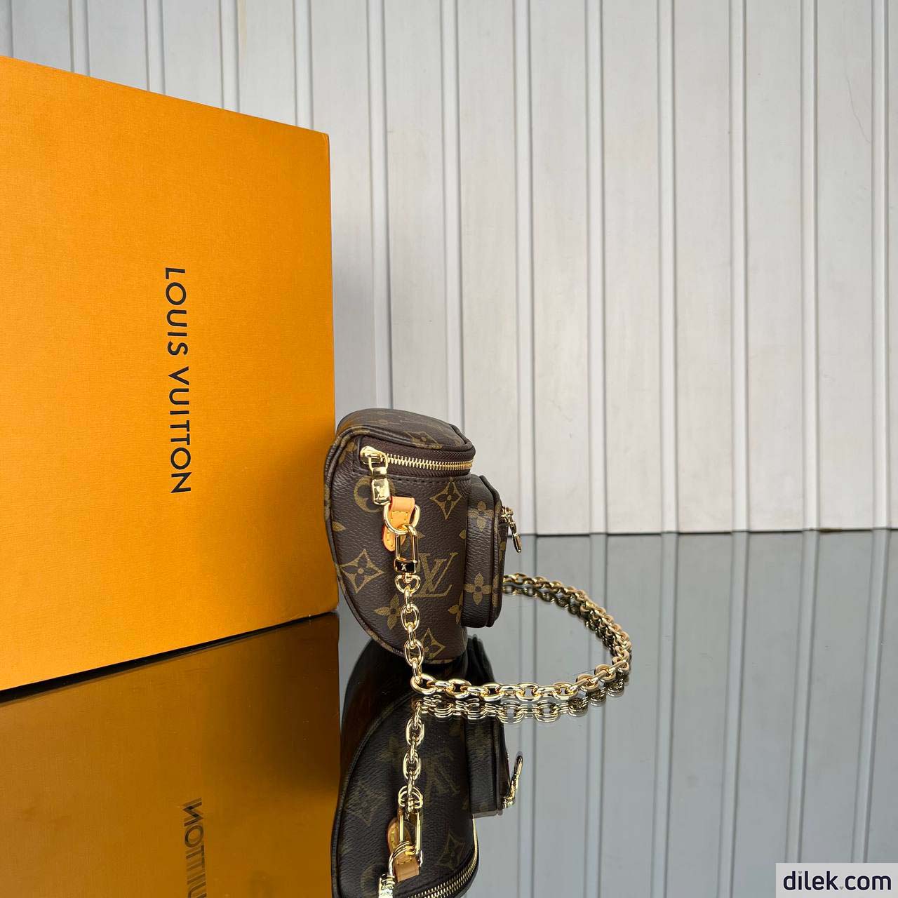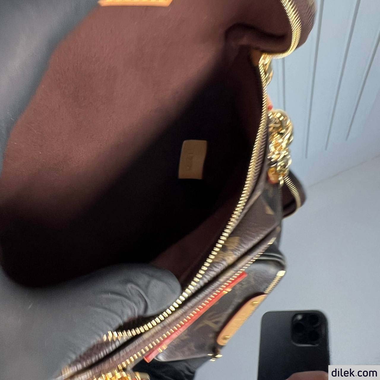 The Mini Bumbag in Monogram canvas is Louis Vuitton's feminine interpretation of the on-trend bumbag format. Designed for versatility, it features a removable, adjustable strap in the House's emblematic natural leather, as well as a removable gold-tone chain, which can be functional or decorative. The bag has a zipped main compartment and a zipped front pocket with an embossed leather tag.