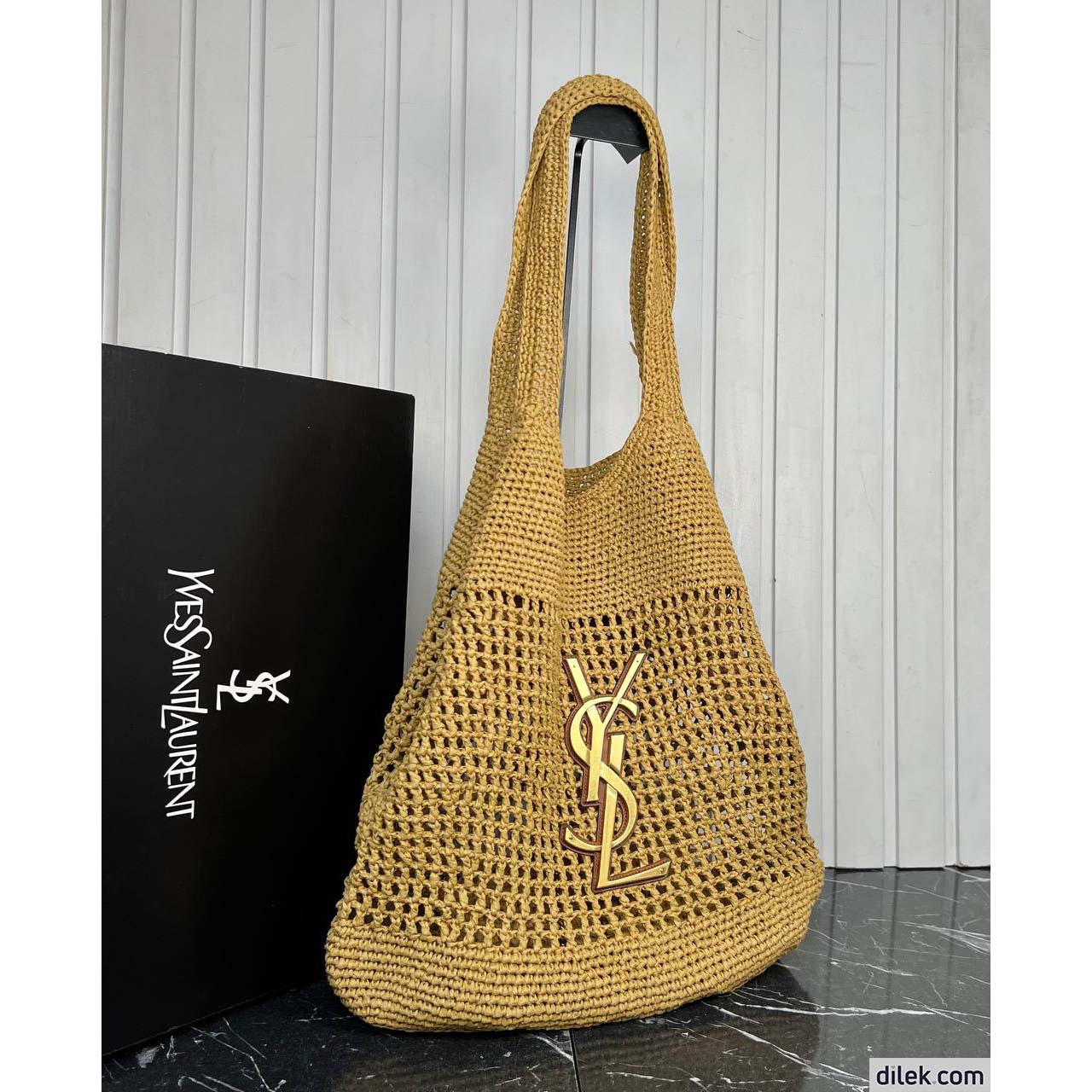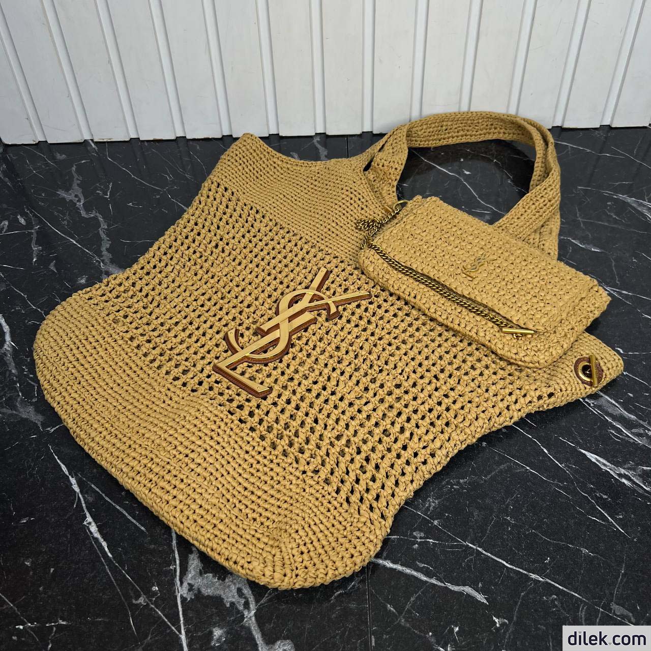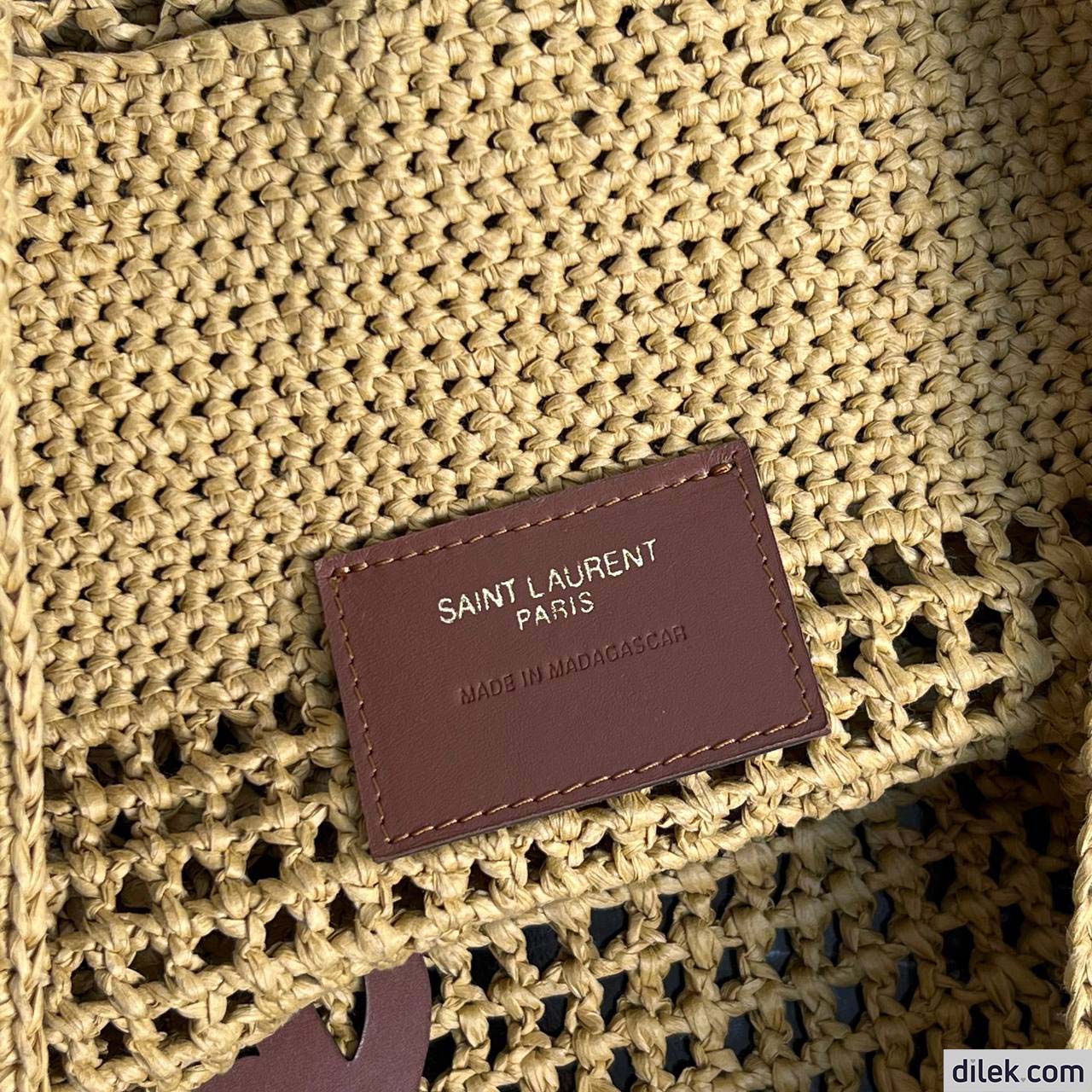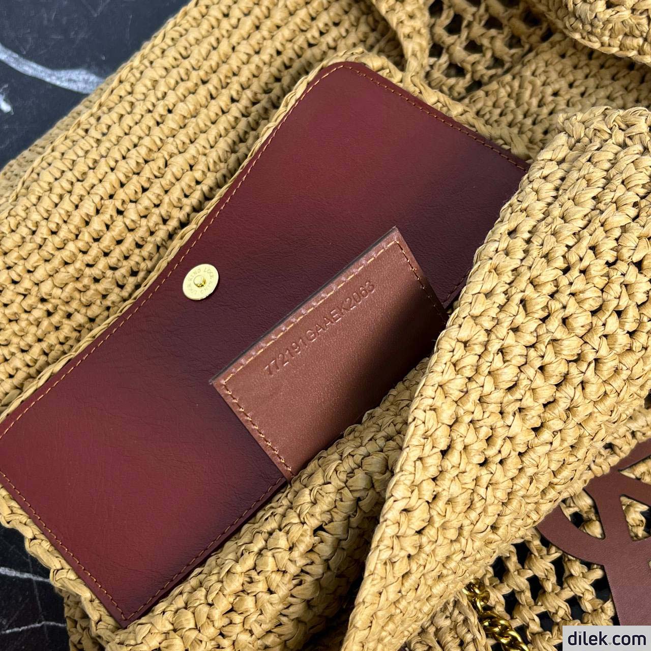 Maxi shopping bag made in a hand-embroidered natural raffia. This technique requires the finest savoir-faire and specialized craftsmanship. Anorned with an oversized, sculptures cassandre, its inner chain can be used to adjust the sides.