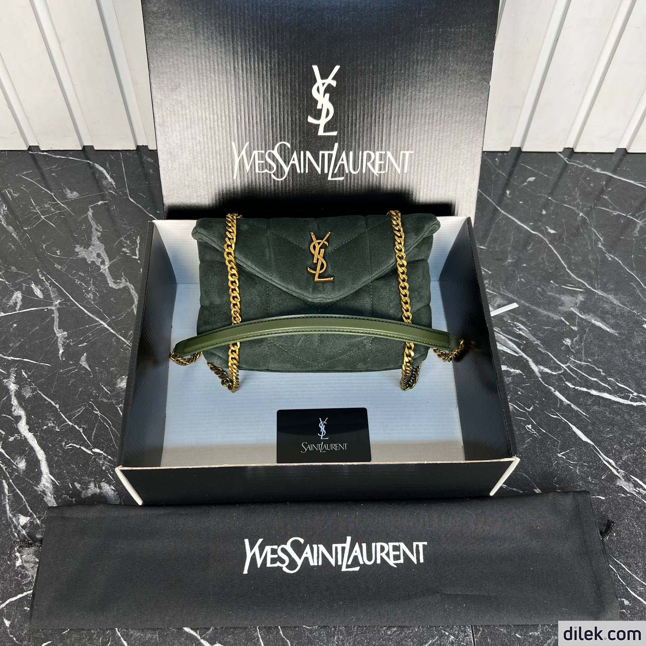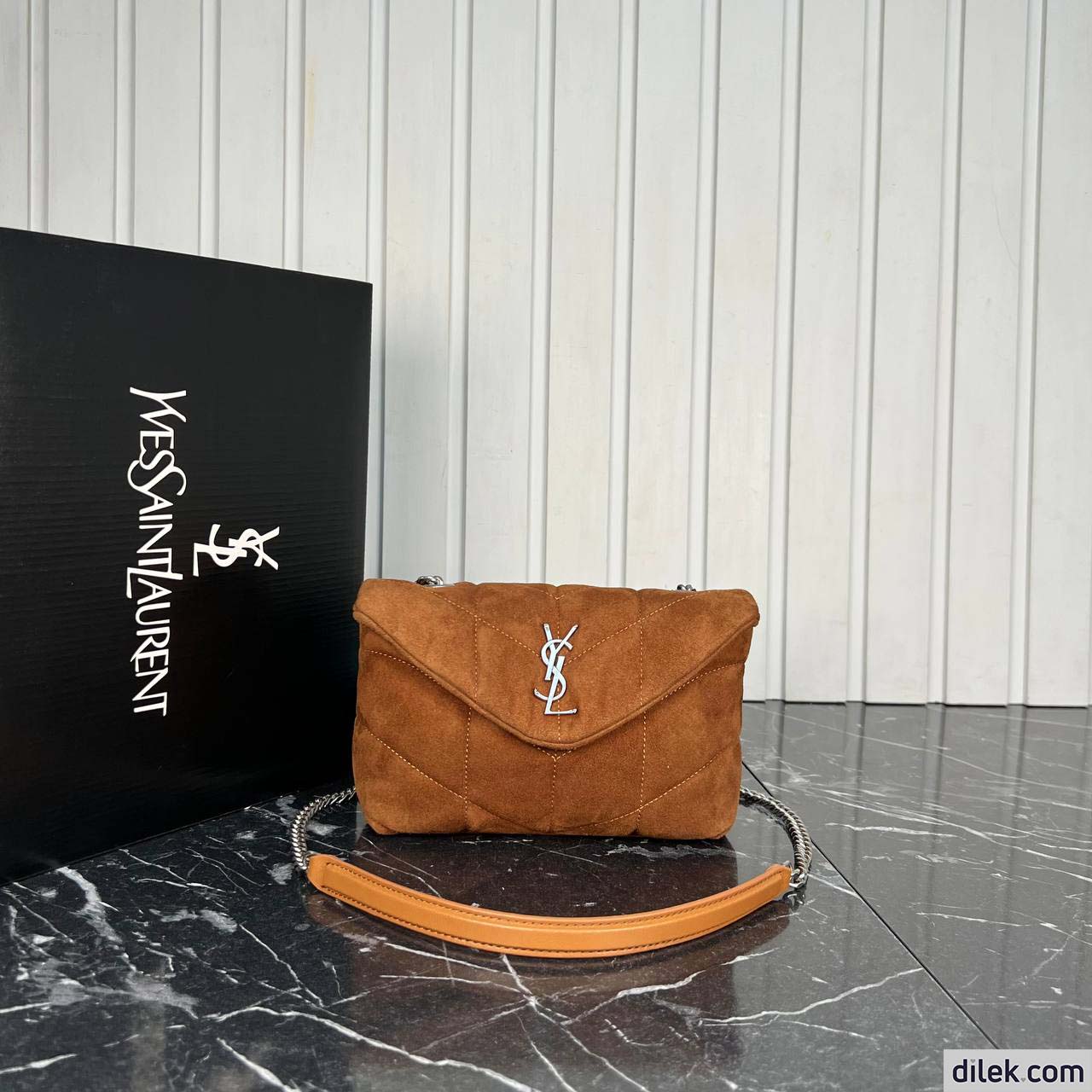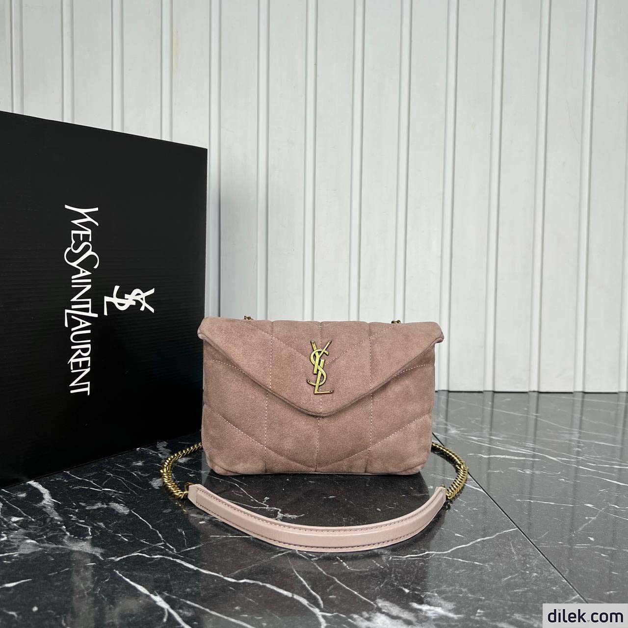 The the iconic loulou puffer in a mini version. Made of soft chevron-quilted suede, it features a sliding chain for wearing it on the shoulder or crossbody.