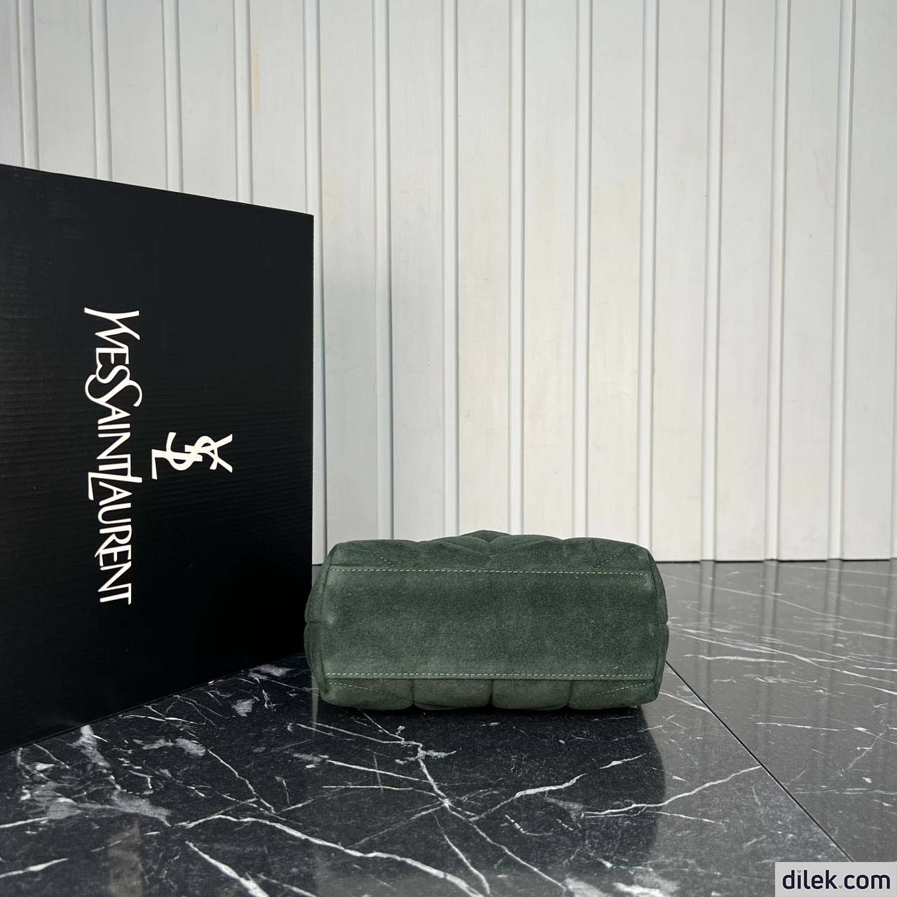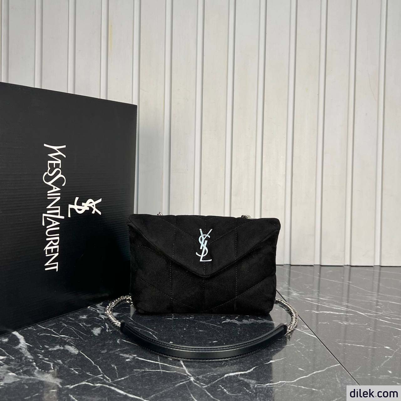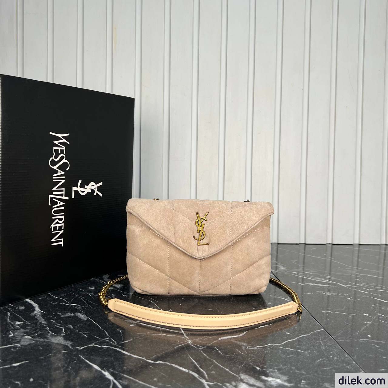 The the iconic loulou puffer in a mini version. Made of soft chevron-quilted suede, it features a sliding chain for wearing it on the shoulder or crossbody.