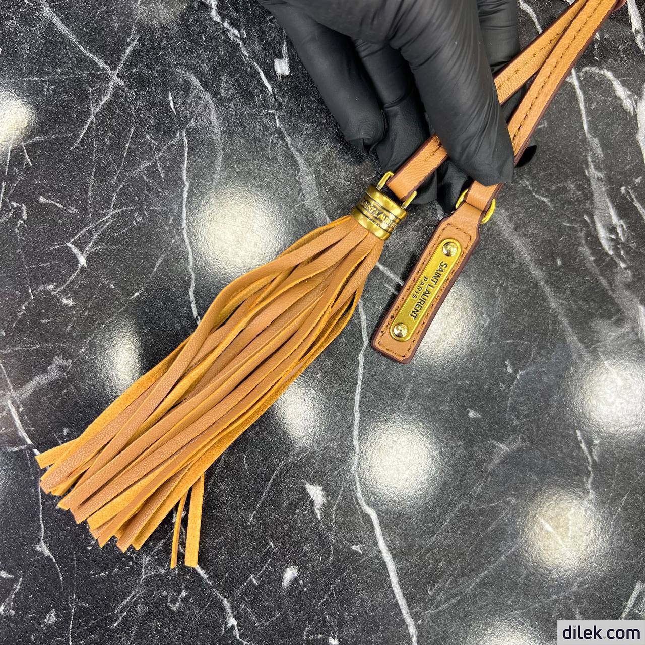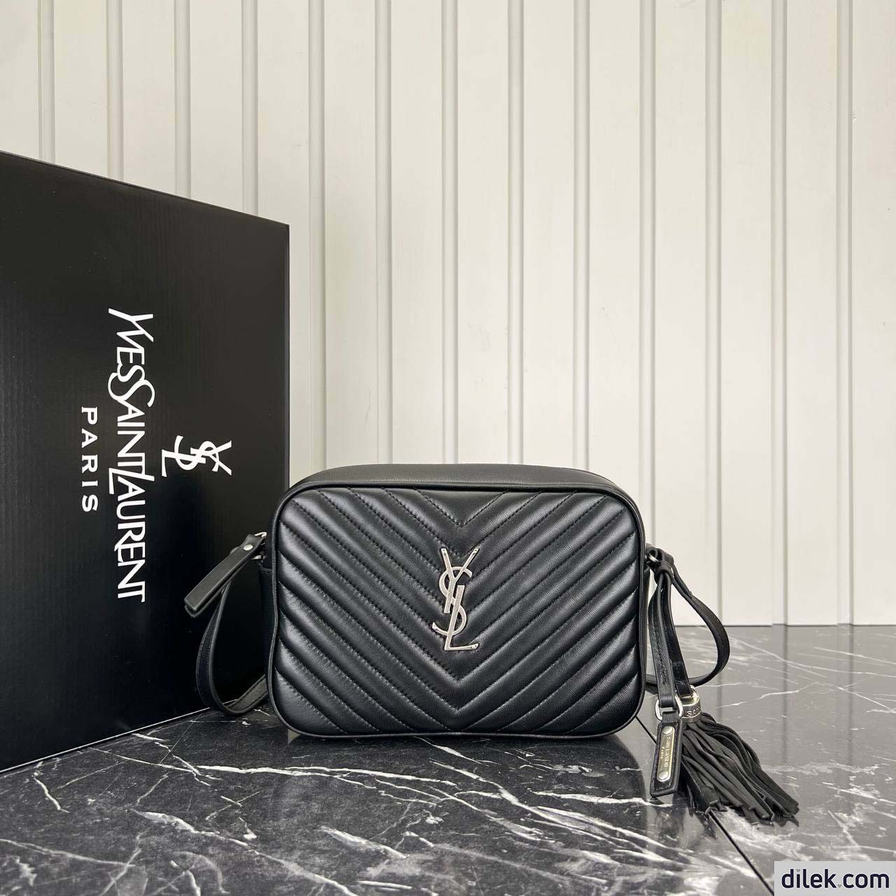 Saint Laurent monogram shoulder bag featuring an adjustable leather strap, removable leather tassel, interlaced YSL initials in metal at the center and quilted overstitching.
