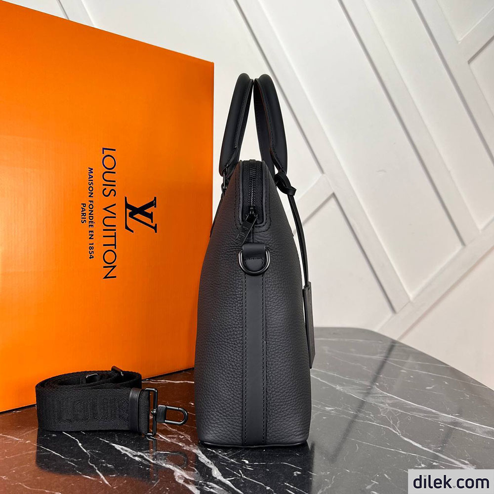 Slim and equipped with a padded pocket for a computer, the business-friendly Briefcase is fashioned from Aerogram grained calf leather for a supple, luxurious feel. It features a removable Jacquard strap, with Louis Vuitton woven into the textile, and is signed with metallic LV Initials on the lower right corner.