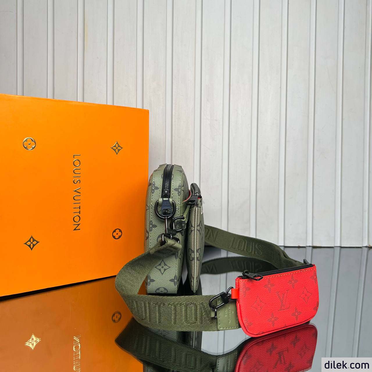 Made from Monogram Shadow calfskin, the Trio Messenger is three accessories in one: a coin purse, a main compartment, and a detachable front pocket that can be used separately. The supple calfskin leather features a Monogram print on top of the embossed Monogram pattern. The matte finishing brings a masculine feel to the bag.