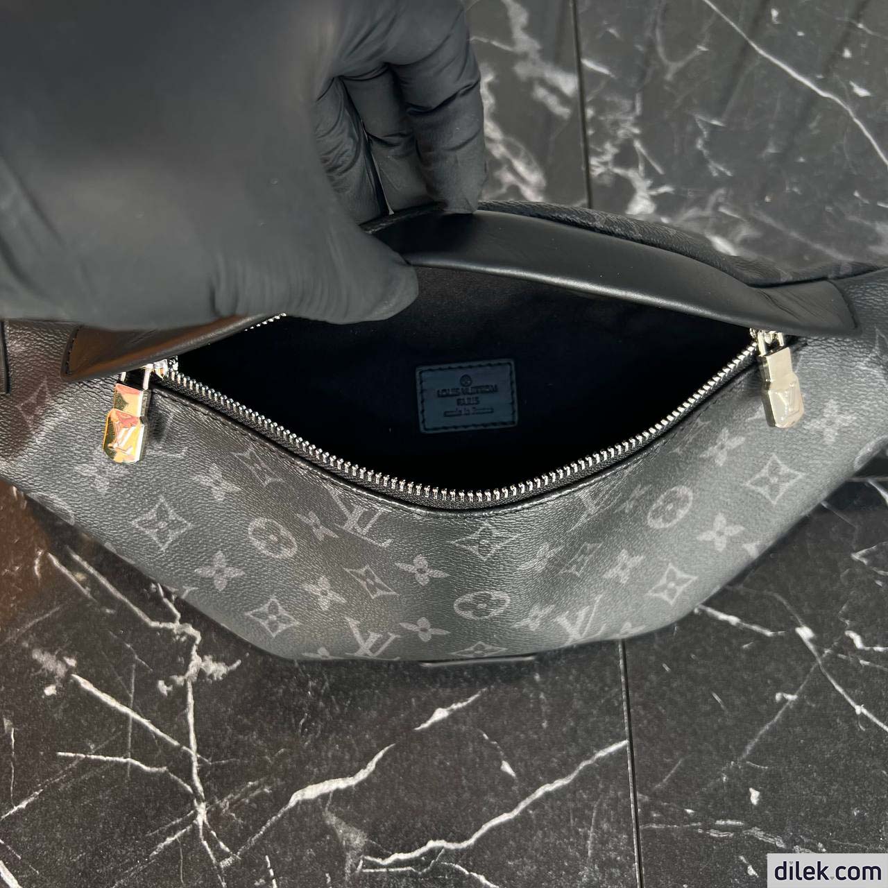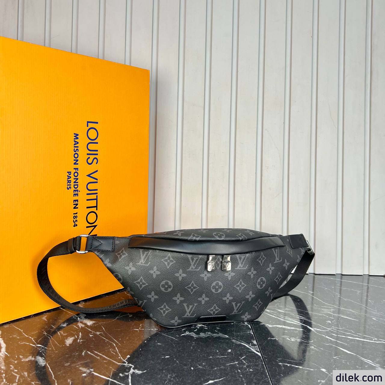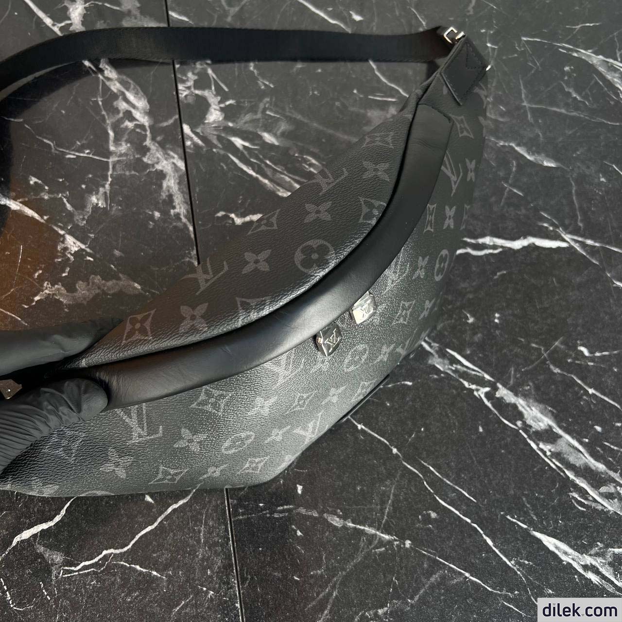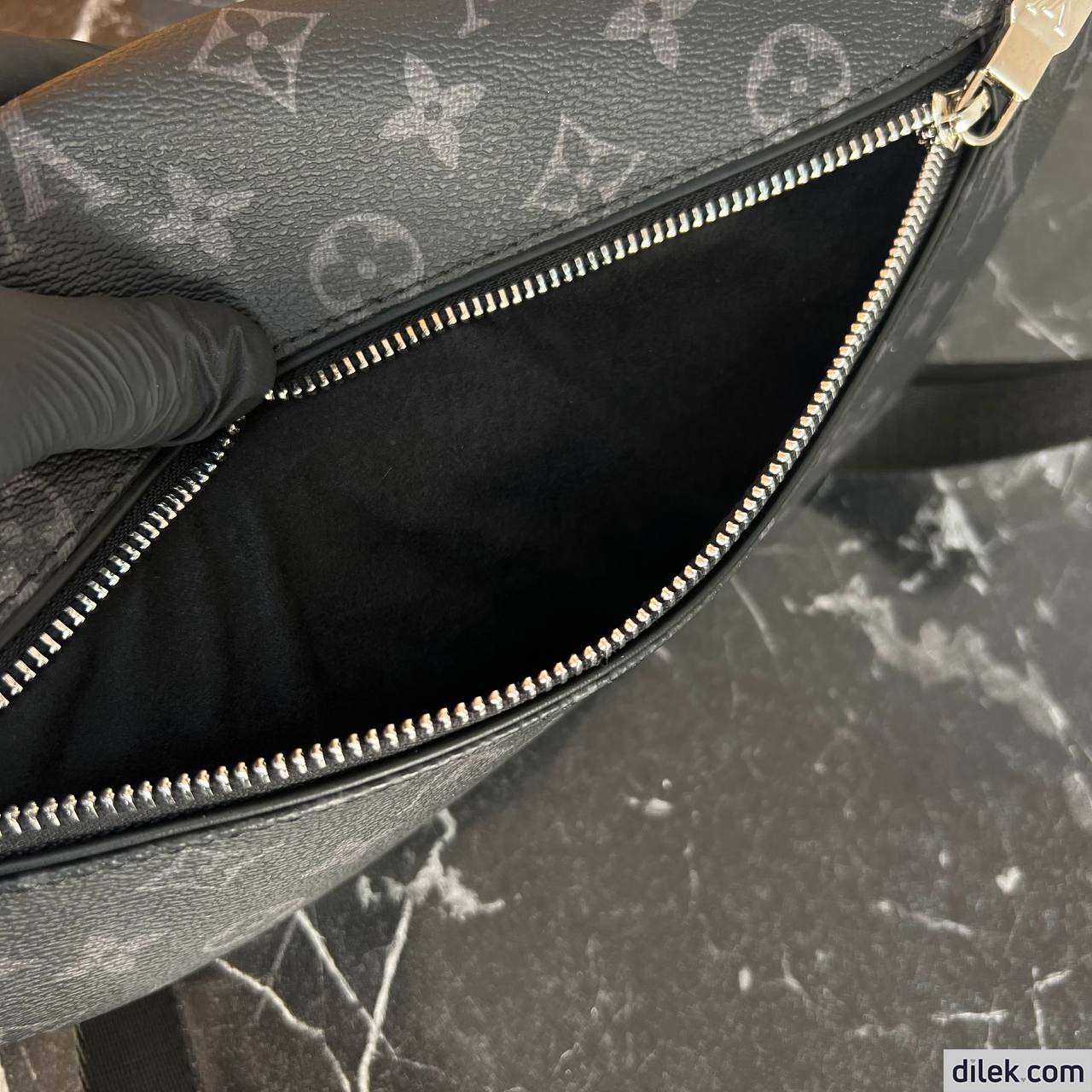 Crafted from Monogram Eclipse canvas, the Discovery bumbag offers the ideal mix of casual chic and modern functionality. With a body-friendly shape and adjustable belt, it can be worn around the waist, over the shoulder or slung stylishly across the chest. Zipped pockets, front and back, provide easy access to phone, cards and keys.