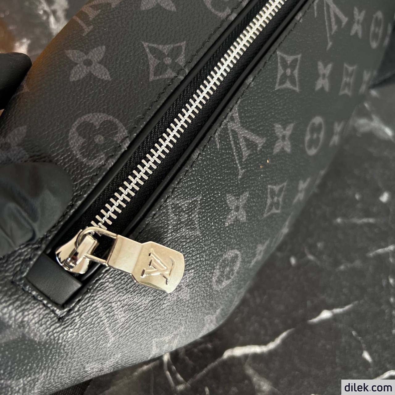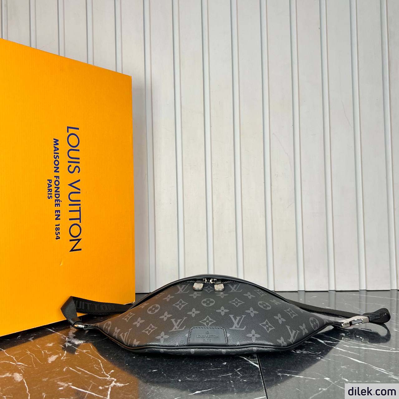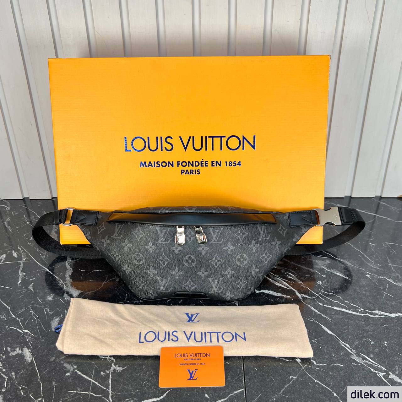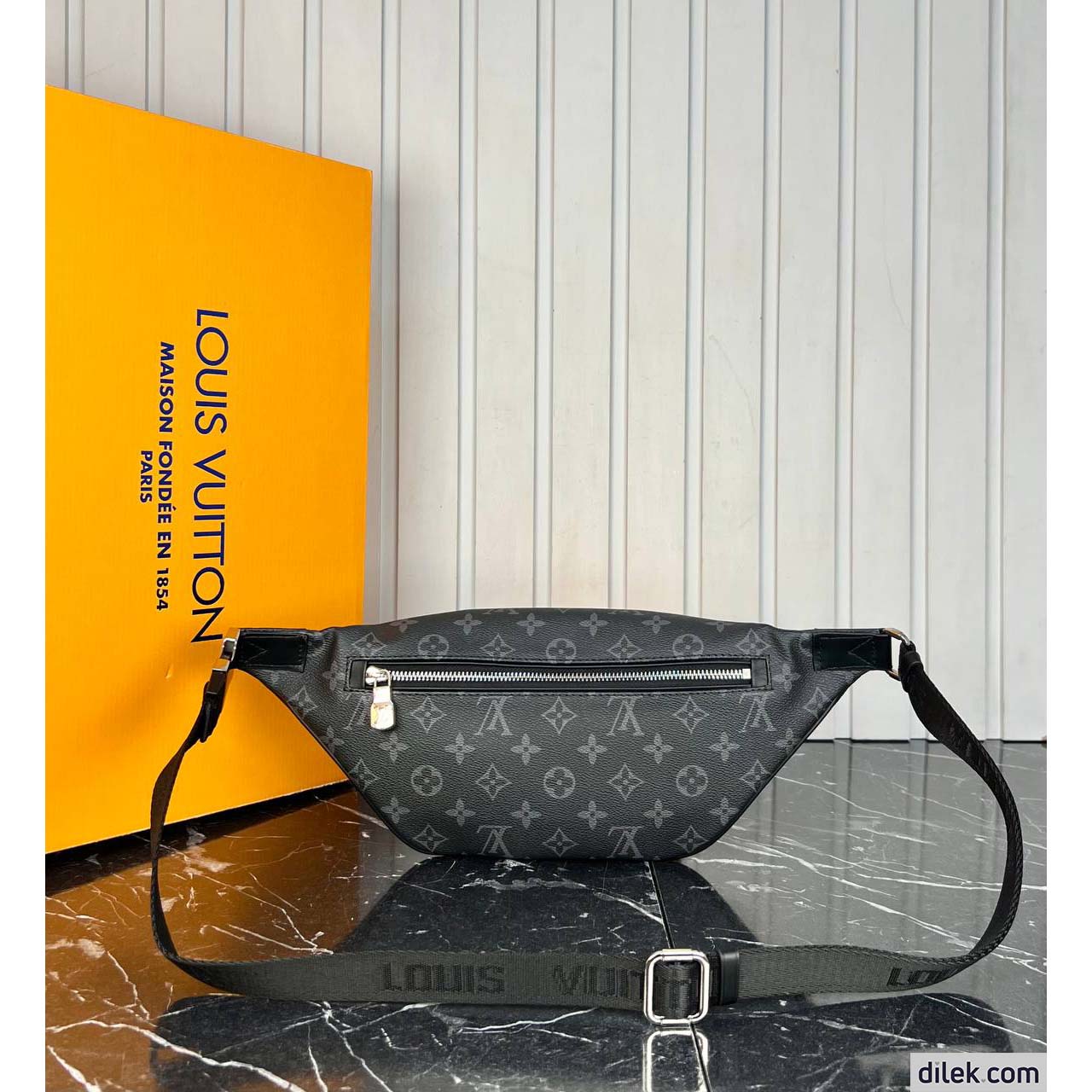 Crafted from Monogram Eclipse canvas, the Discovery bumbag offers the ideal mix of casual chic and modern functionality. With a body-friendly shape and adjustable belt, it can be worn around the waist, over the shoulder or slung stylishly across the chest. Zipped pockets, front and back, provide easy access to phone, cards and keys.
