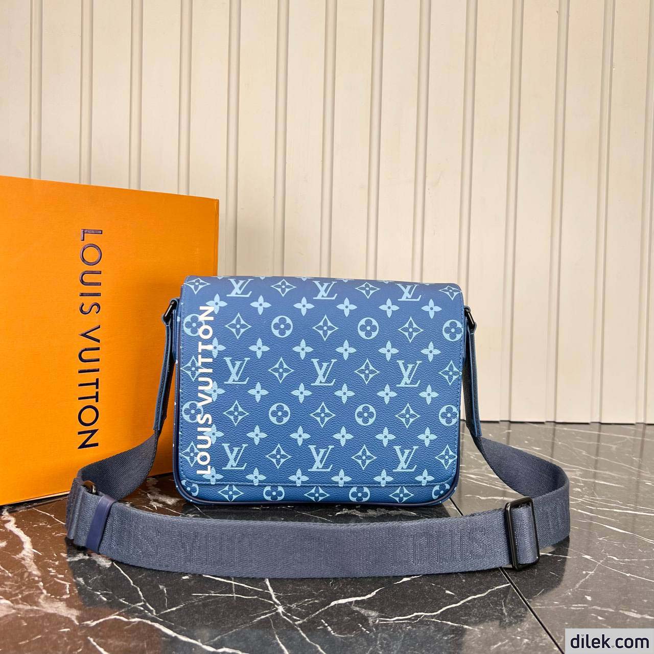 The District PM messenger bag is made from canvas with a Monogram print and features “Louis Vuitton” in white block letters on the front of the bag. Magnetic flap closure and a zipped pocket on the back make it practical. The matching adjustable strap allows for comfortable shoulder and cross-body carry.