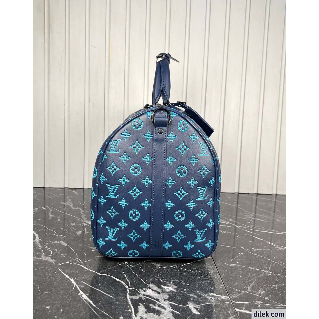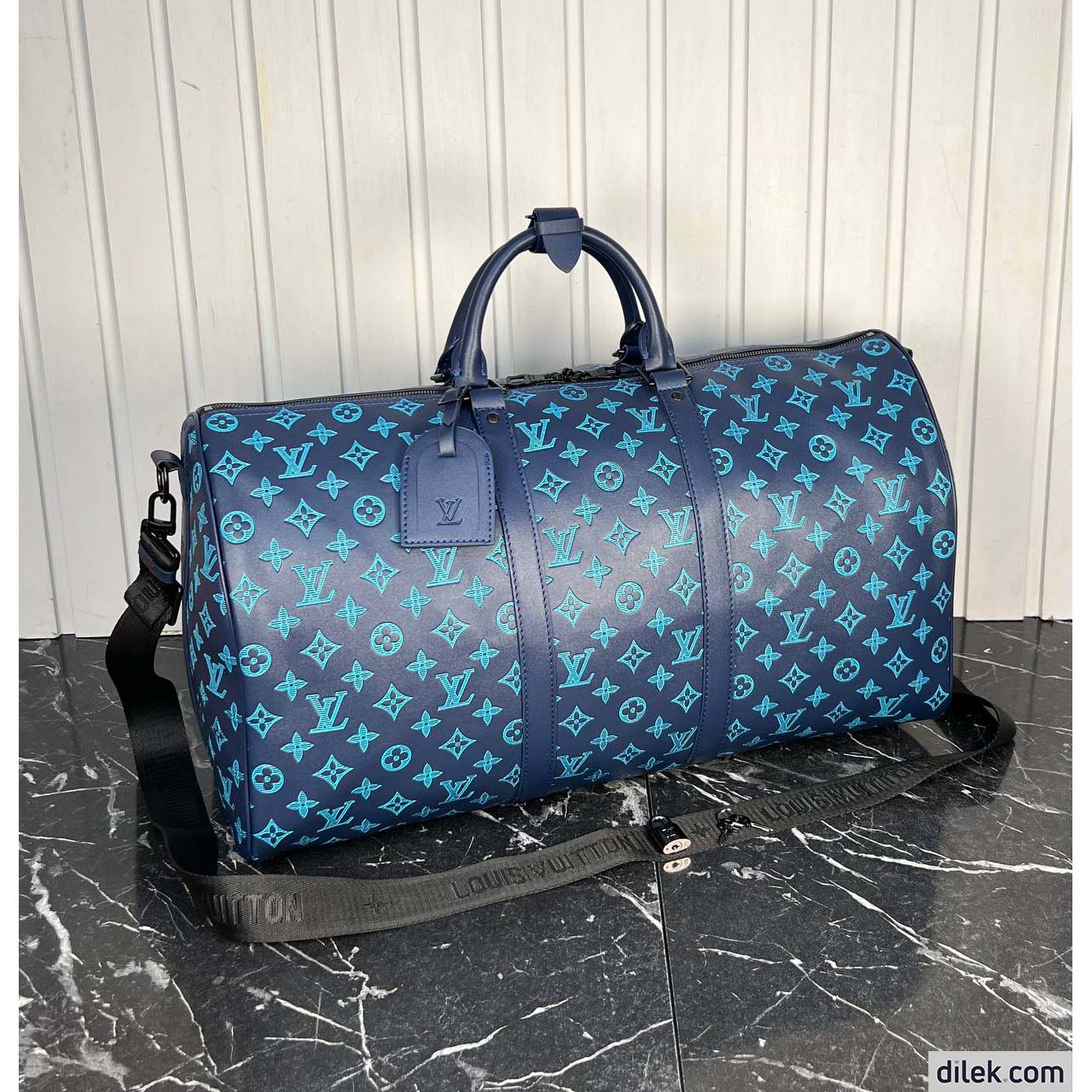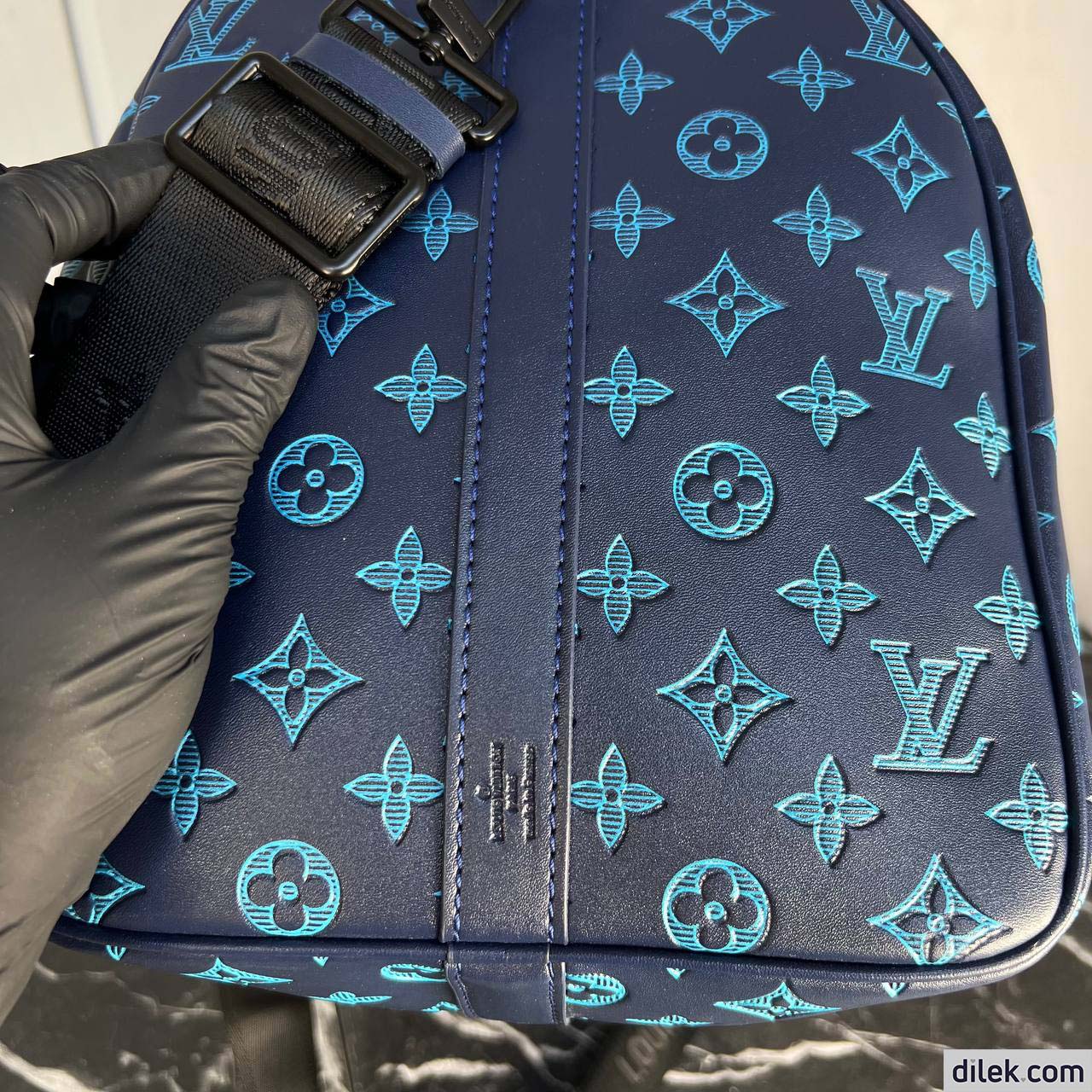 Fashioned from non-glossy calf leather with an embossed Monogram pattern, the Keepall Bandoulière 50 bag takes on a masculine, sporty allure. Small enough for carry-on, the Keepall is large enough to hold everything needed for most short trips. The top handles and removable and adjustable shoulder strap give carry options.