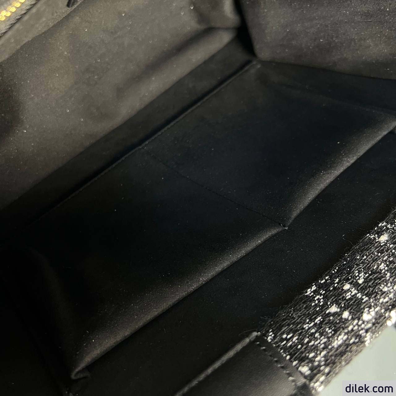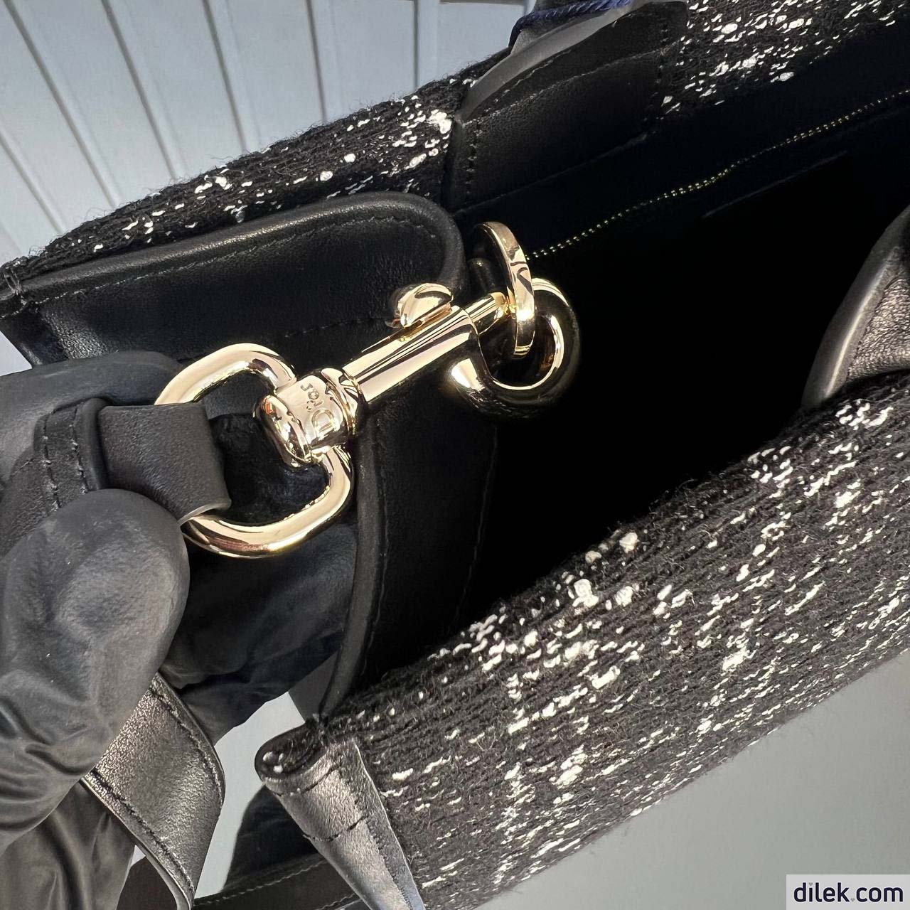 Maria Grazia Chiuri's hallmark Dior Book Tote offers an original take on elegance. Fully embroidered in black textured tweed with a blend of threads displaying the Cannage motif, it is embellished with pale gold-finish metal D.I.O.R charms on one of the handles. The cashmere leather interior reveals a zip pocket and slip pockets, ideal for organizing all the daily essentials. Featuring an adjustable and removable strap, the lightweight and practical medium tote is a prime example of Dior savoir-faire and may be carried by hand or worn over the shoulder.