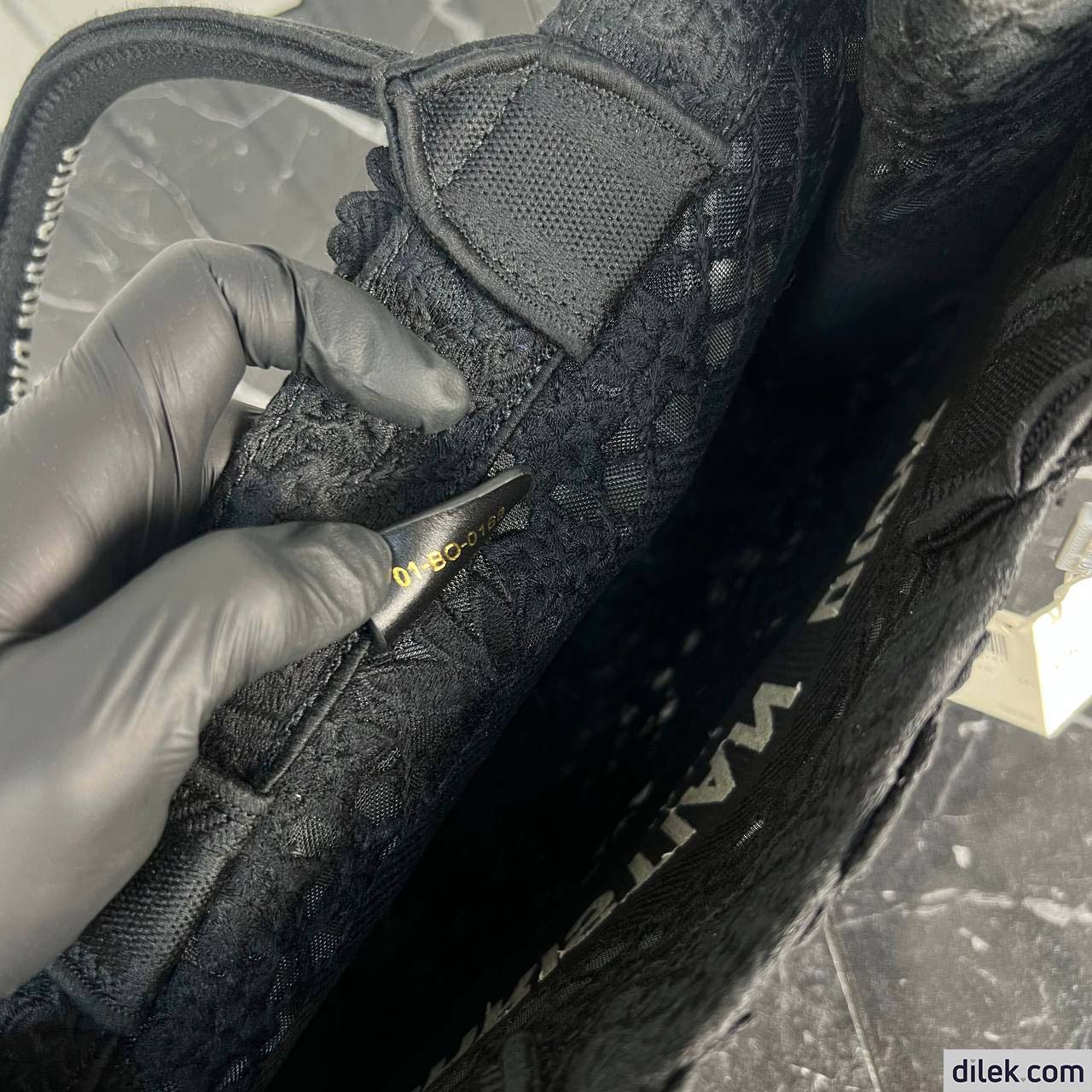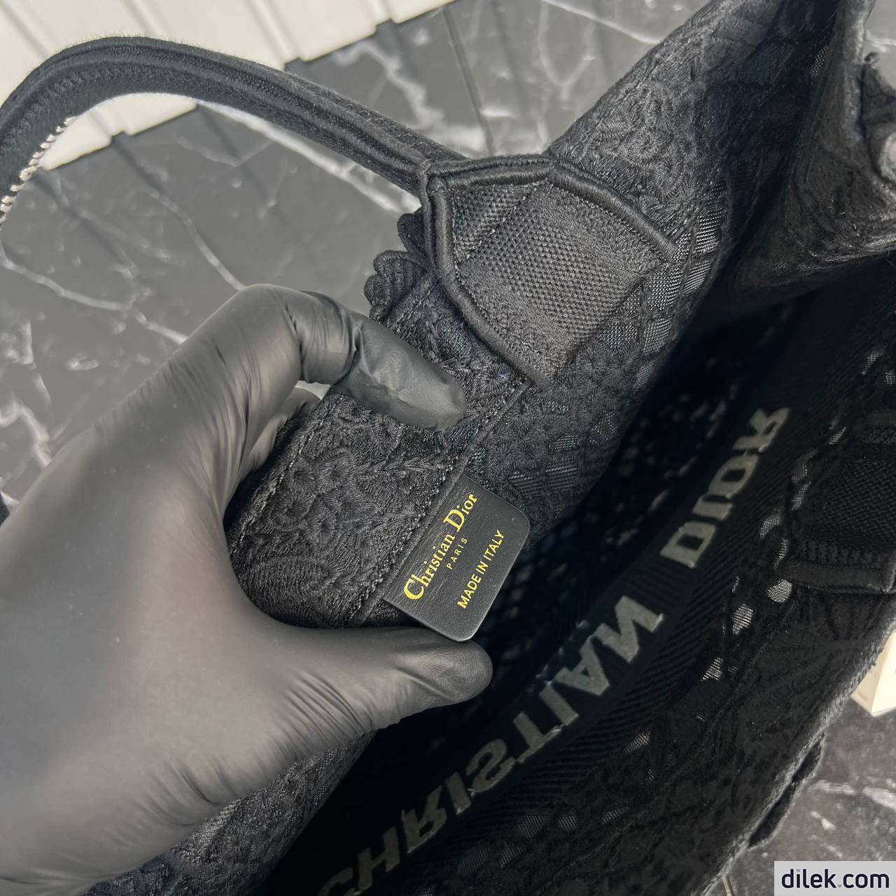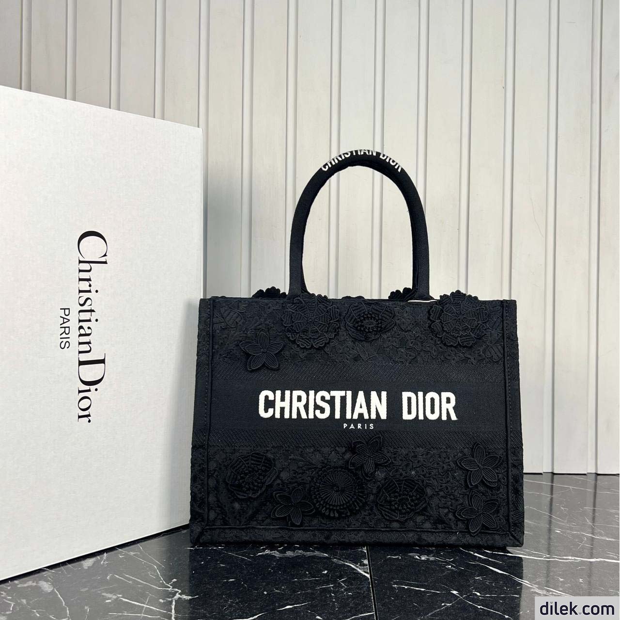 Introduced by Maria Grazia Chiuri, Creative Director of Christian Dior, the Dior Book Tote has become a staple of the Dior aesthetic. Designed to hold all the daily essentials, the style is fully embroidered with a black D-Lace Butterfly motif with 3D Macrame effect. The ultra-elegant embroidery is a refined take on lace and display of the House's savoir-faire with a poetic embellishment of three-dimensional hand-applied butterflies. Enhanced by a contrasting Christian Dior Paris signature on the front, the medium tote may be carried by hand or worn over the shoulder.