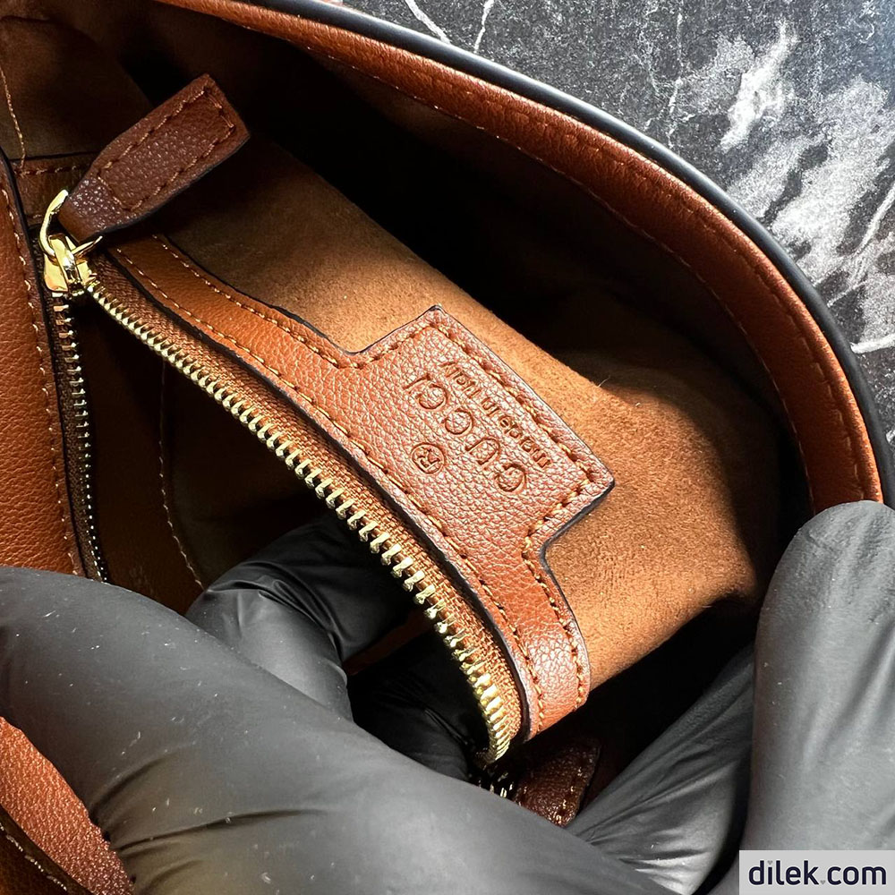 Vintage elements are paired with archival details as an ode to the glamour that permeated the Gucci Love Parade fashion show. This shoulder bag pairs a delicate chain strap with black leather to infuse the accessory with a timeless feel. Reintroduced in honor of the collection, the rounded silhouette is completed by a historical, rounded iteration of Guccio Gucci's monogram.