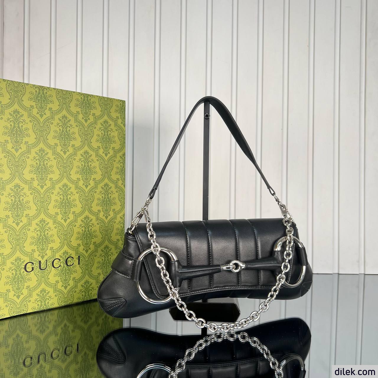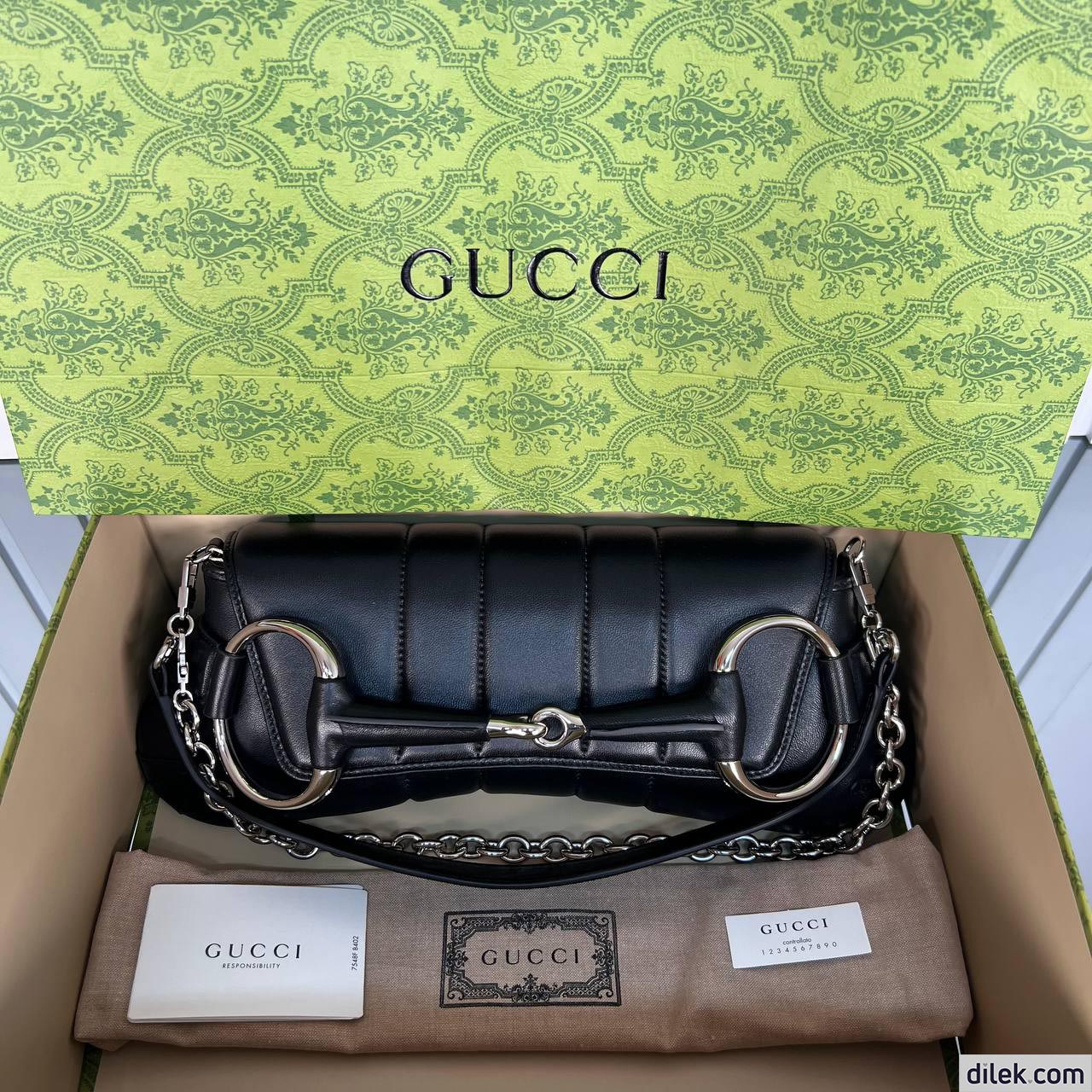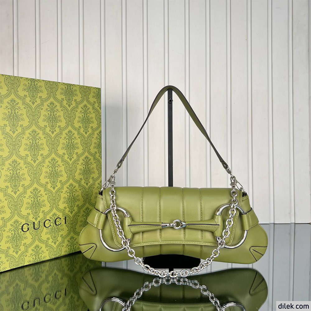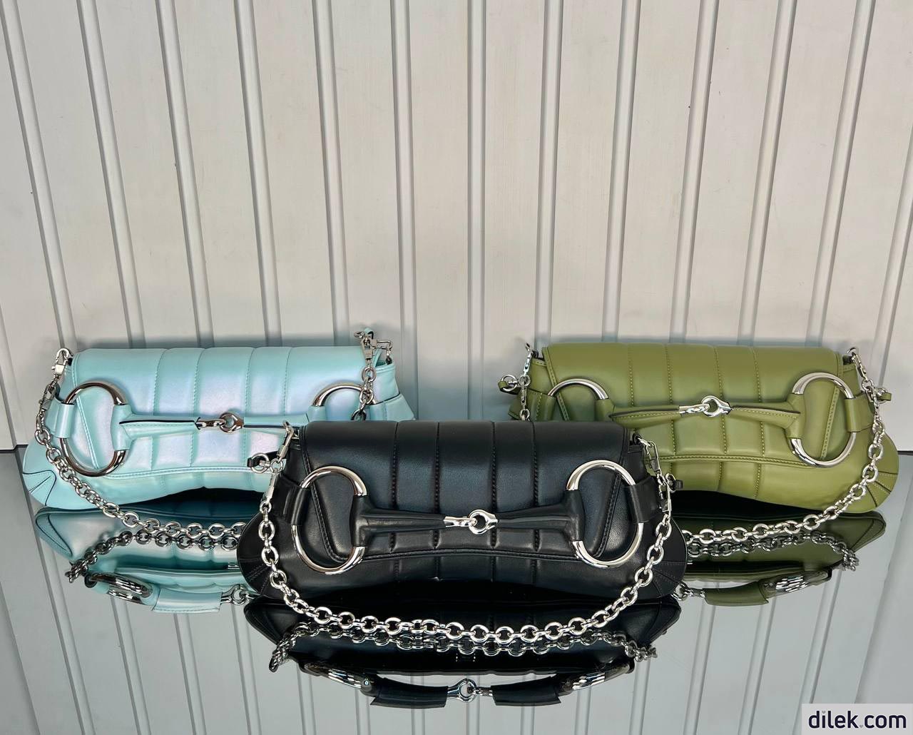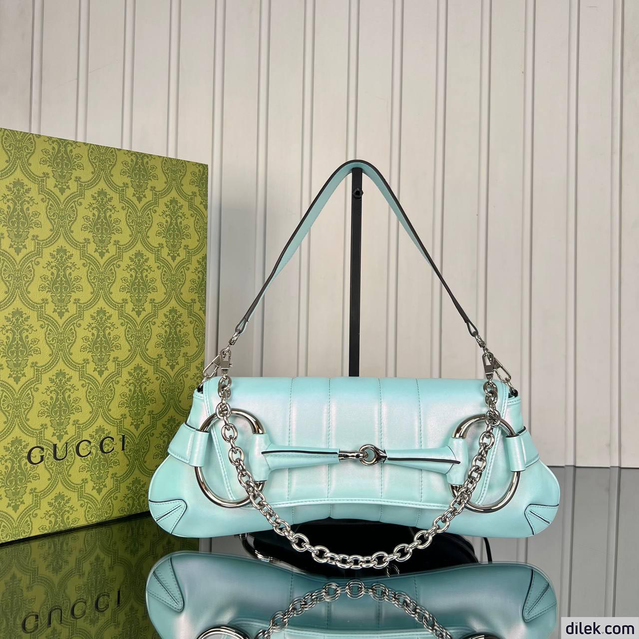 Gucci successfully recalls its past by connecting the archives to the present day. Adorned with a maxi Horsebit, first made popular during the early ‘2000s, this silhouette continues to be one of the most recognizable handbags of the House. Revisited for the Fall Winter 2023 collection, it is presented in various colors and textures that follow a contemporary approach.