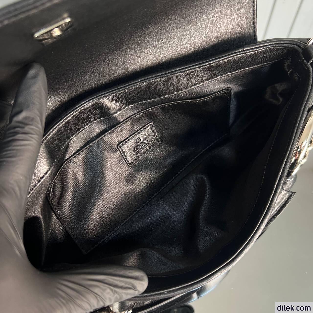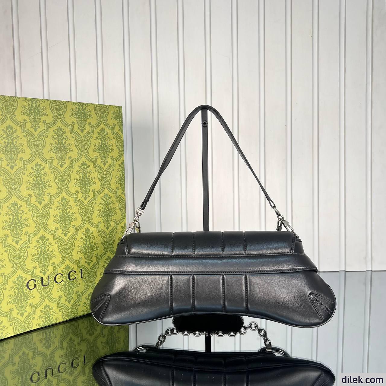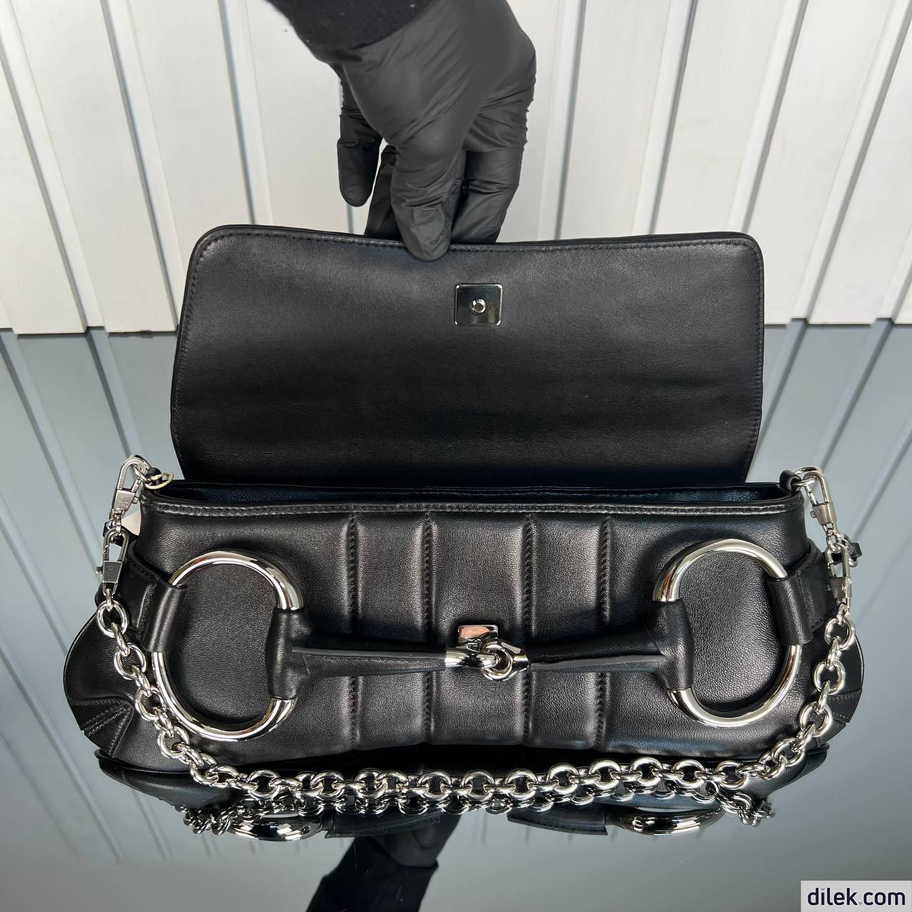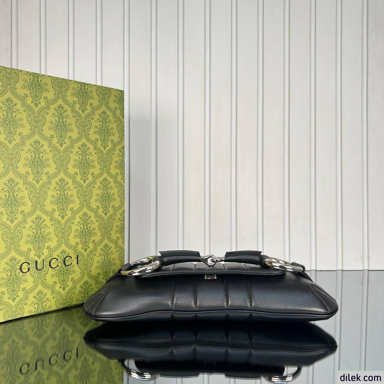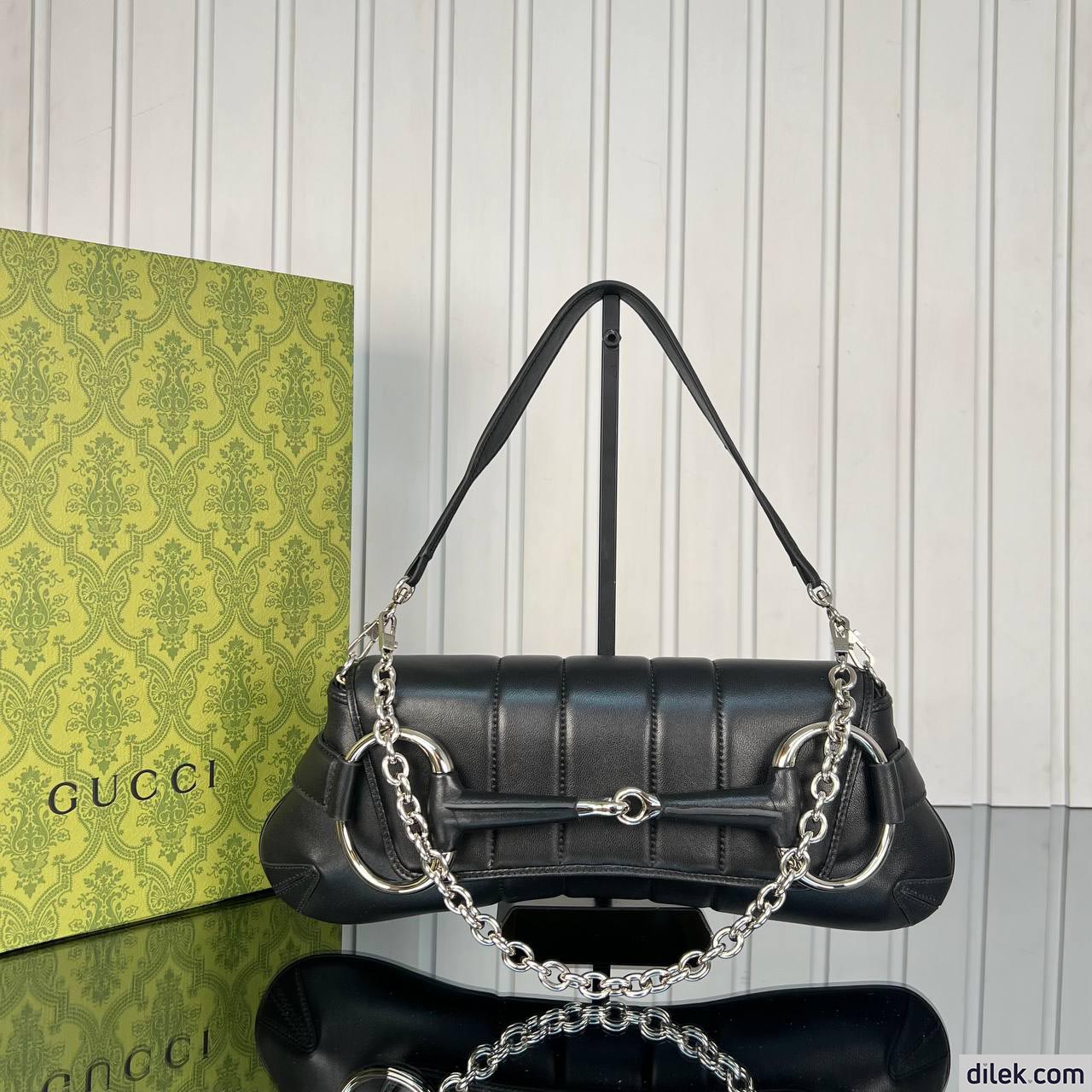 Gucci successfully recalls its past by connecting the archives to the present day. Adorned with a maxi Horsebit, first made popular during the early ‘2000s, this silhouette continues to be one of the most recognizable handbags of the House. Revisited for the Fall Winter 2023 collection, it is presented in various colors and textures that follow a contemporary approach.