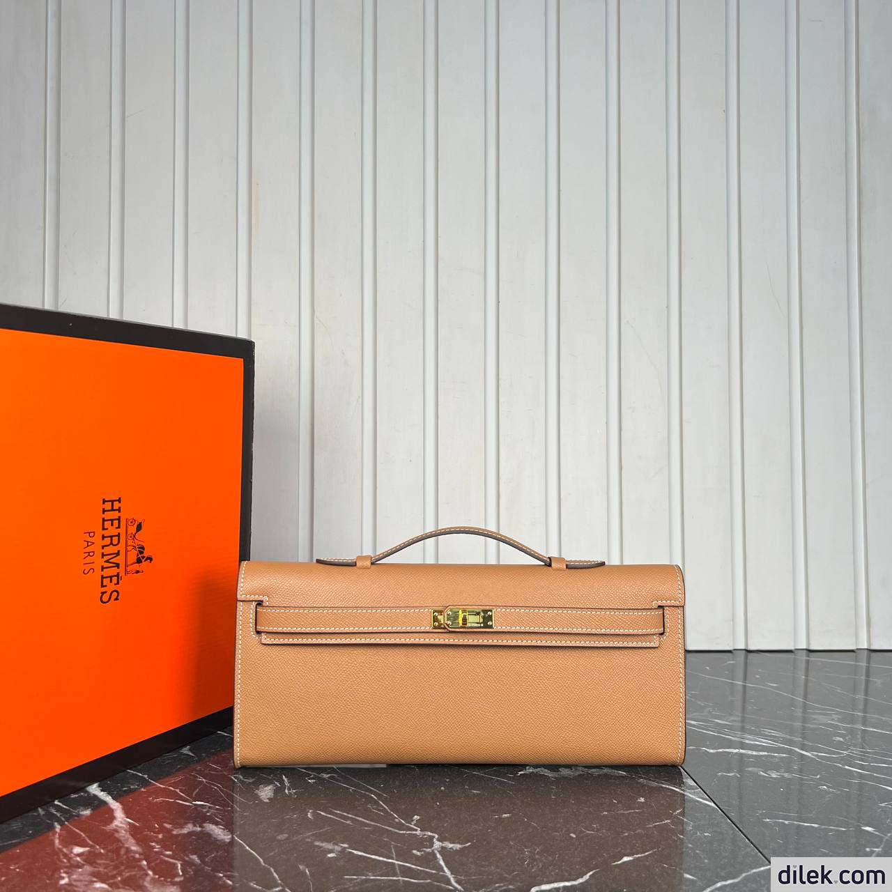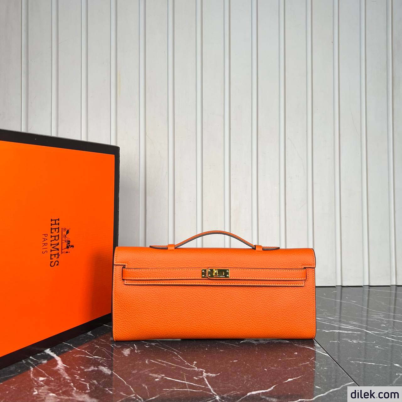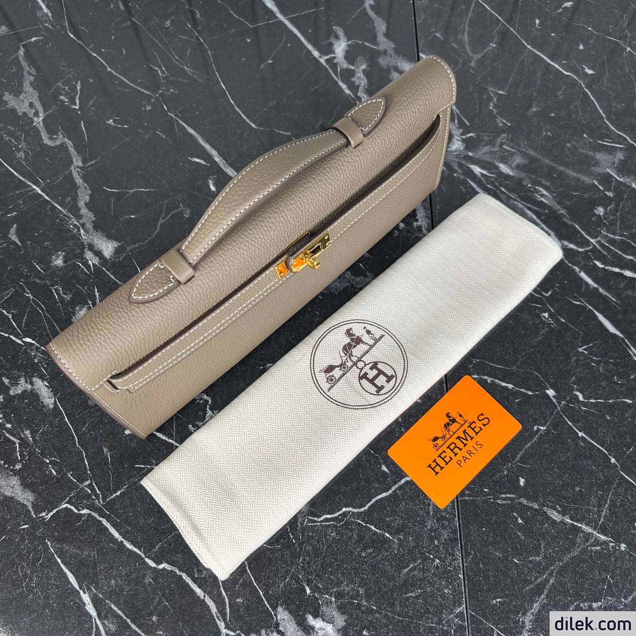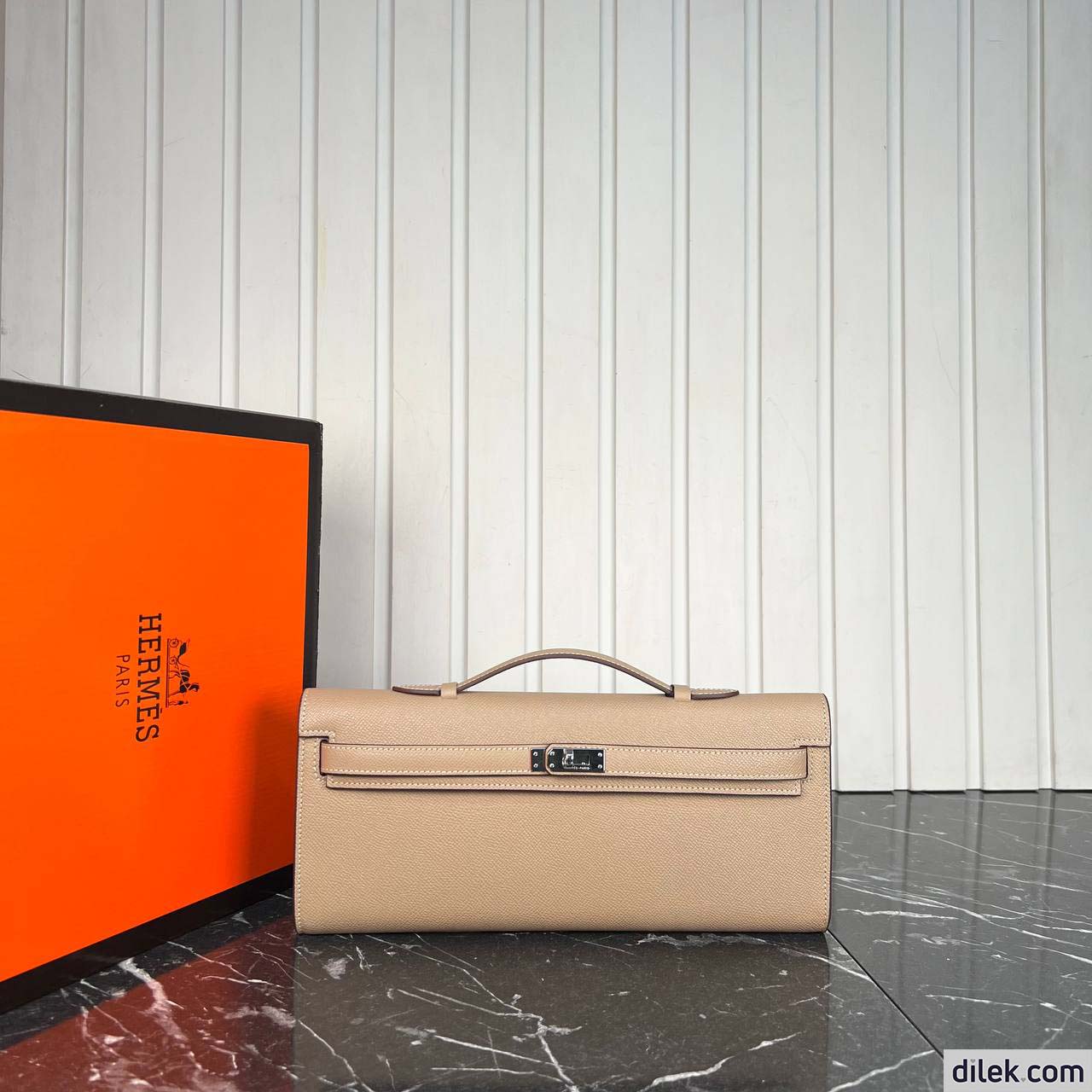 This Hermes Kelly Cut bag is crafted in Swift leather with polished palladium hardware. The bag features two horizontal interlocking straps, turn lock closure and a flap that opens to a matching leather lining with room for all the essentials.