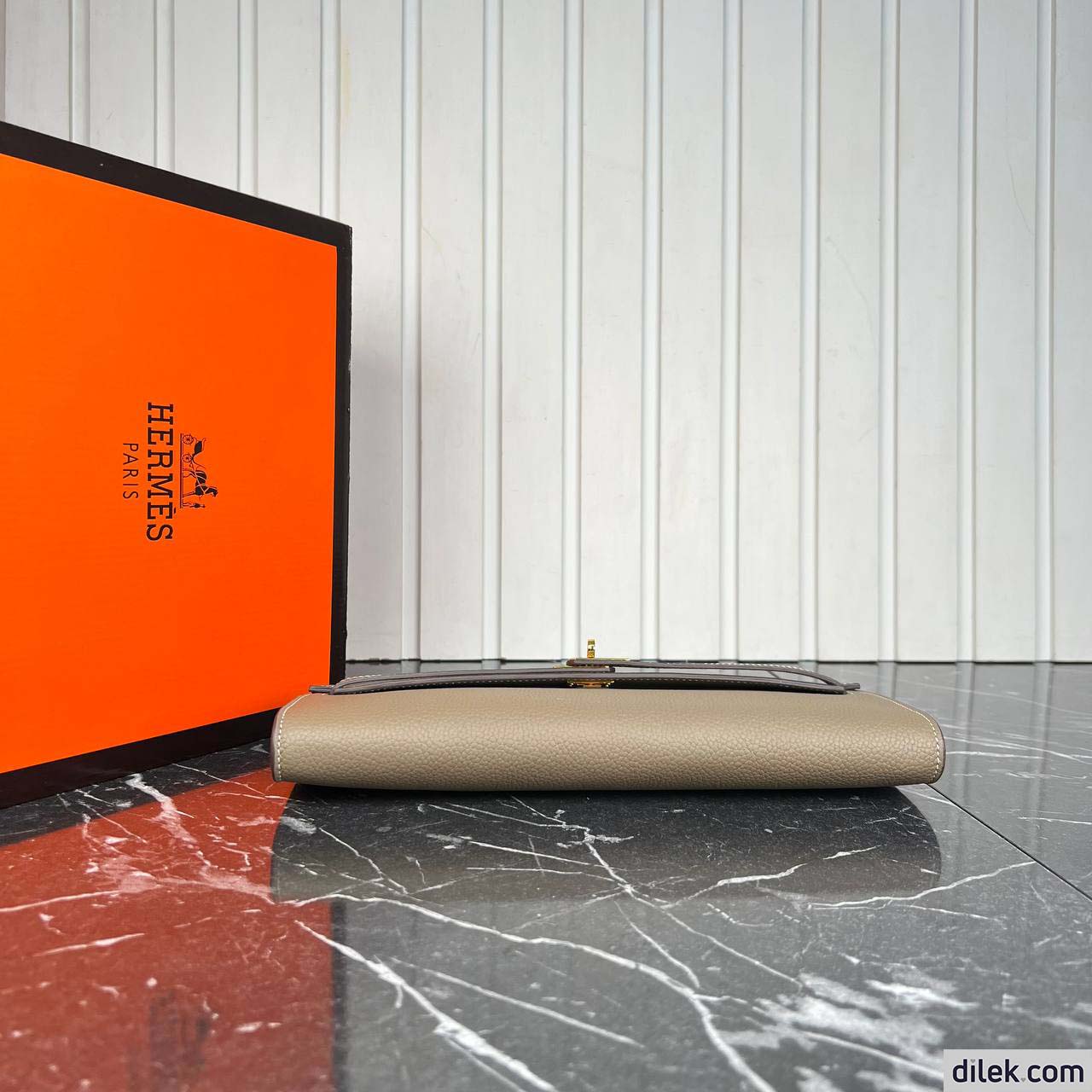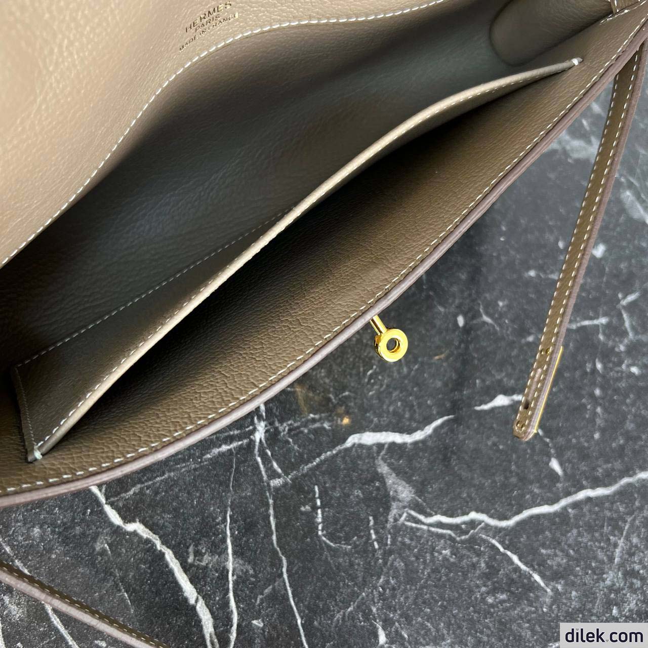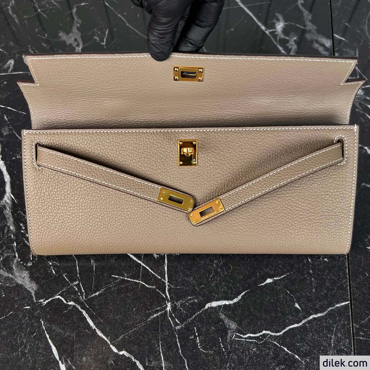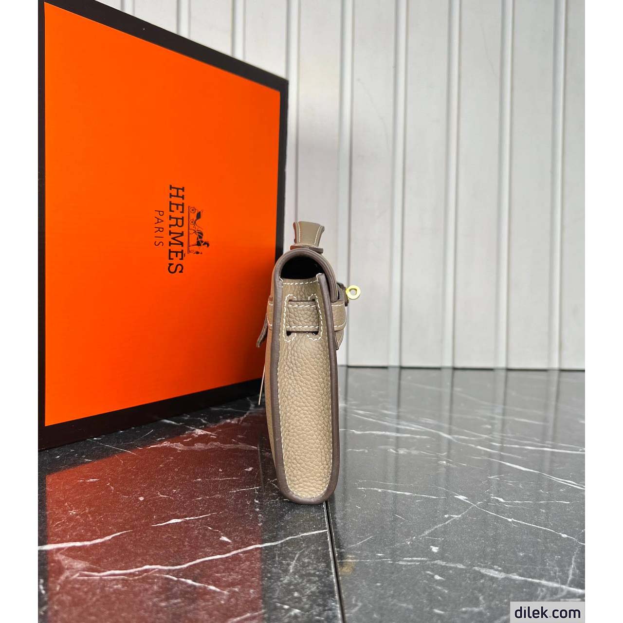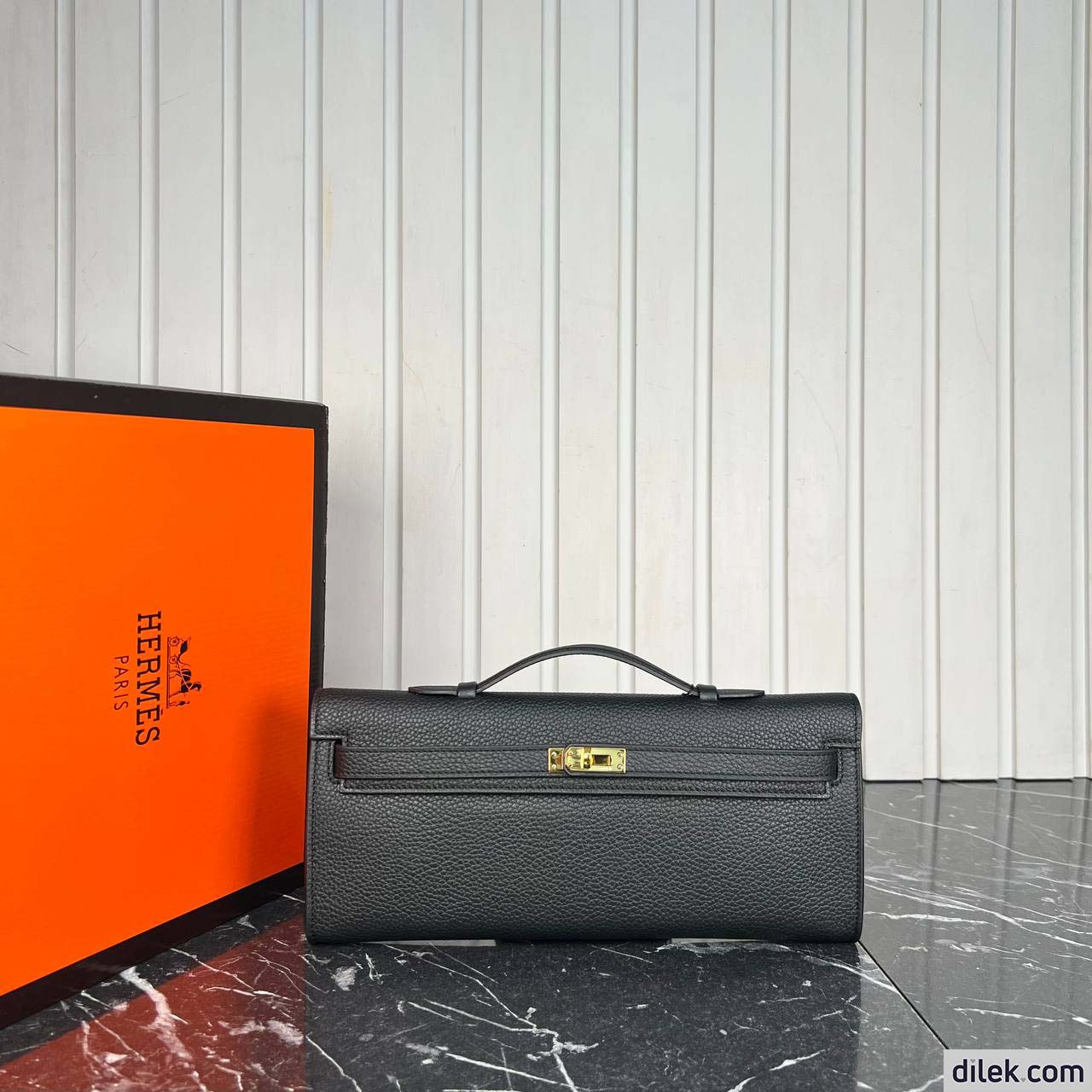 This Hermes Kelly Cut bag is crafted in Swift leather with polished palladium hardware. The bag features two horizontal interlocking straps, turn lock closure and a flap that opens to a matching leather lining with room for all the essentials.
