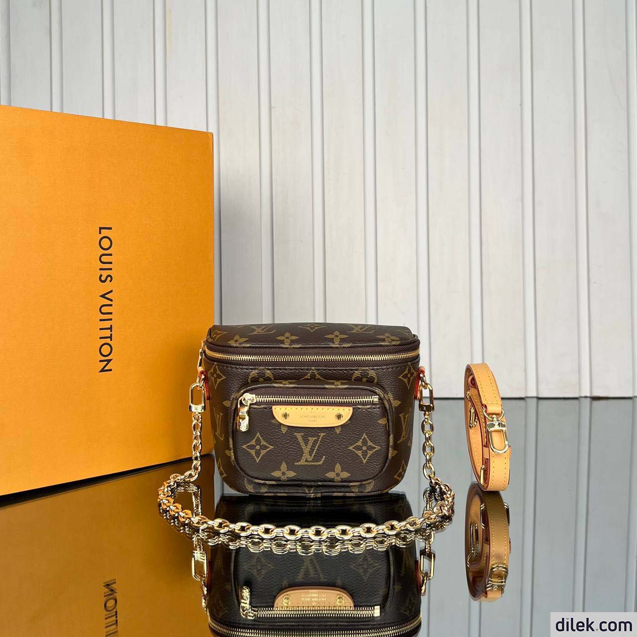 The Mini Bumbag in Monogram canvas is Louis Vuitton's feminine interpretation of the on-trend bumbag format. Designed for versatility, it features a removable, adjustable strap in the House's emblematic natural leather, as well as a removable gold-tone chain, which can be functional or decorative. The bag has a zipped main compartment and a zipped front pocket with an embossed leather tag.