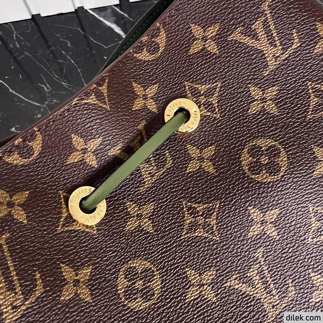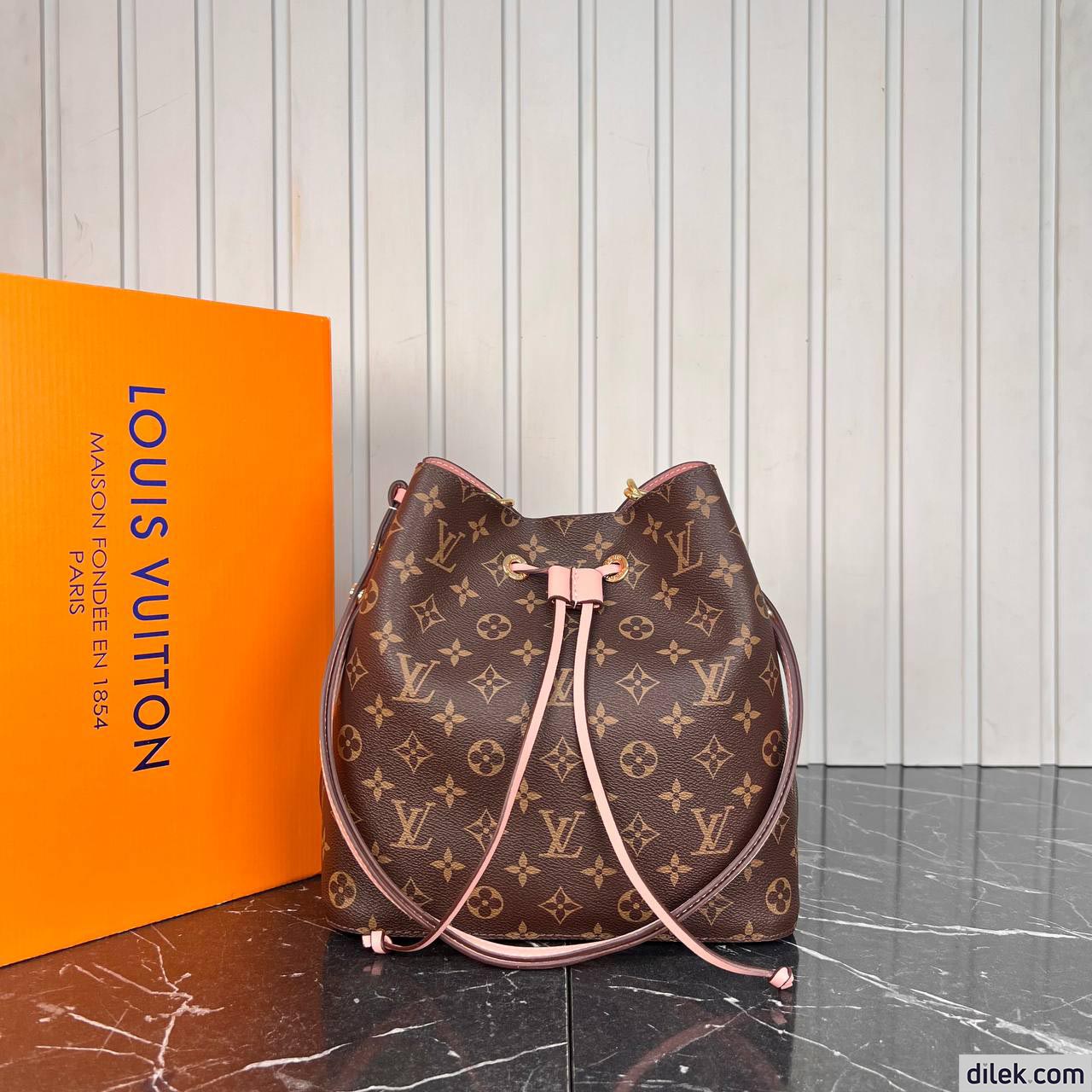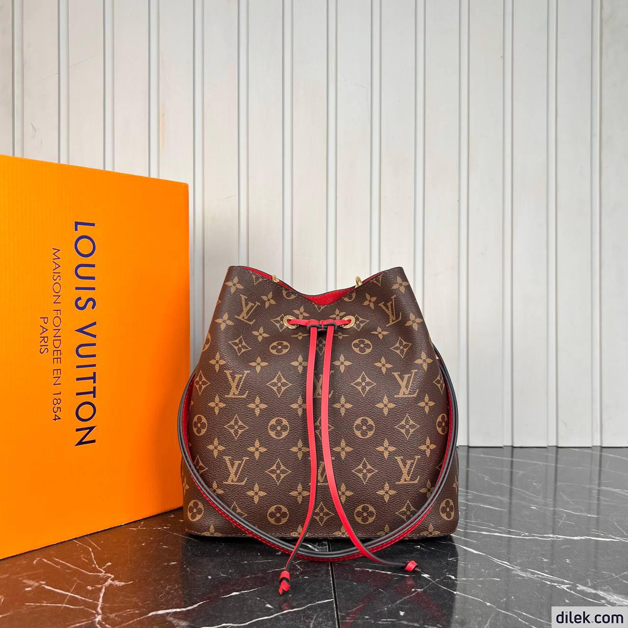 A true House icon, the NéoNoé bucket bag revisits a 1932 design by Gaston-Louis Vuitton. The original was created to transport bottles of Champagne in style; this modern version in Monogram canvas features a sleek shape, colorful leather trim and a matching bonded lining. The adjustable smart strap can be slung over the shoulder or lengthened for a trendy cross-body carry.