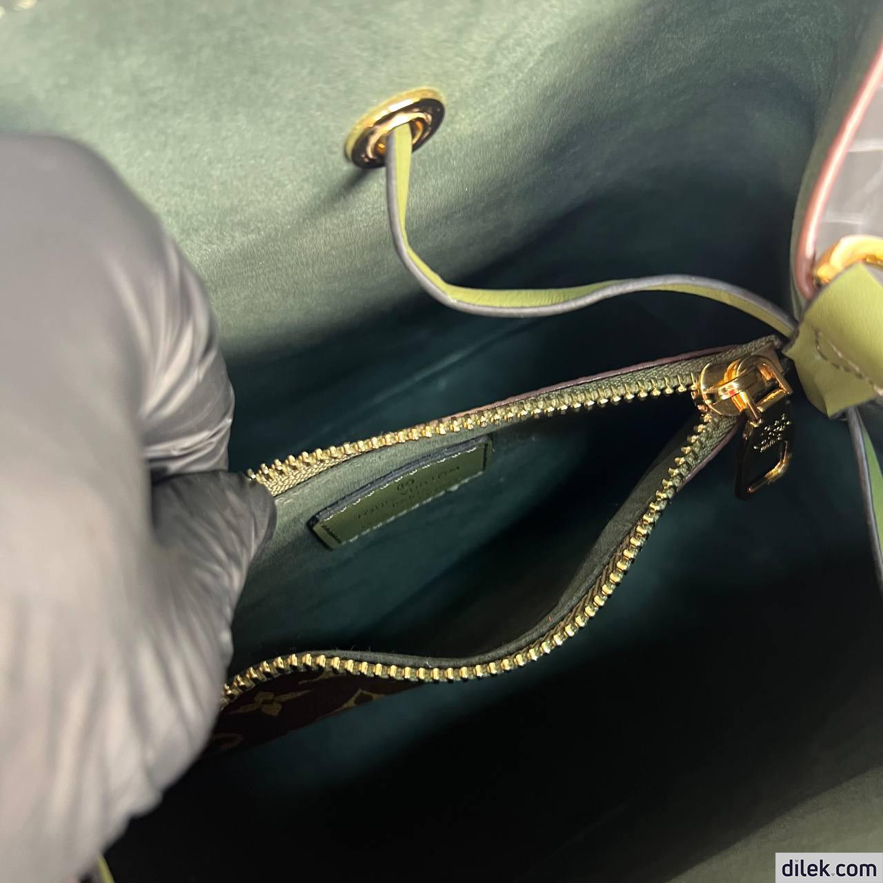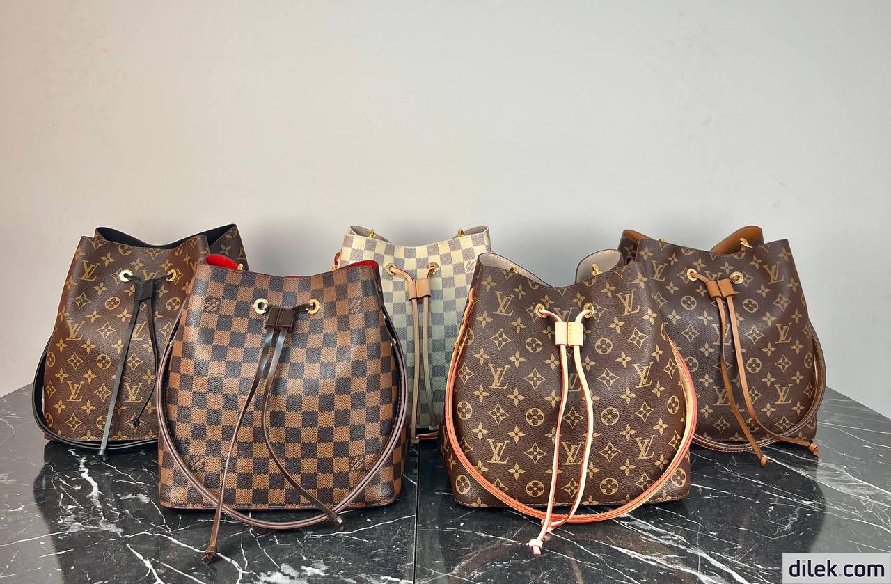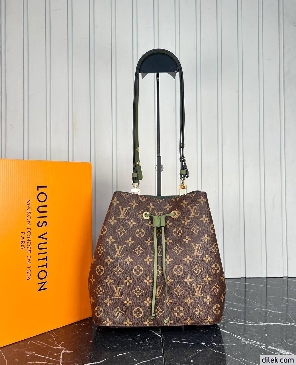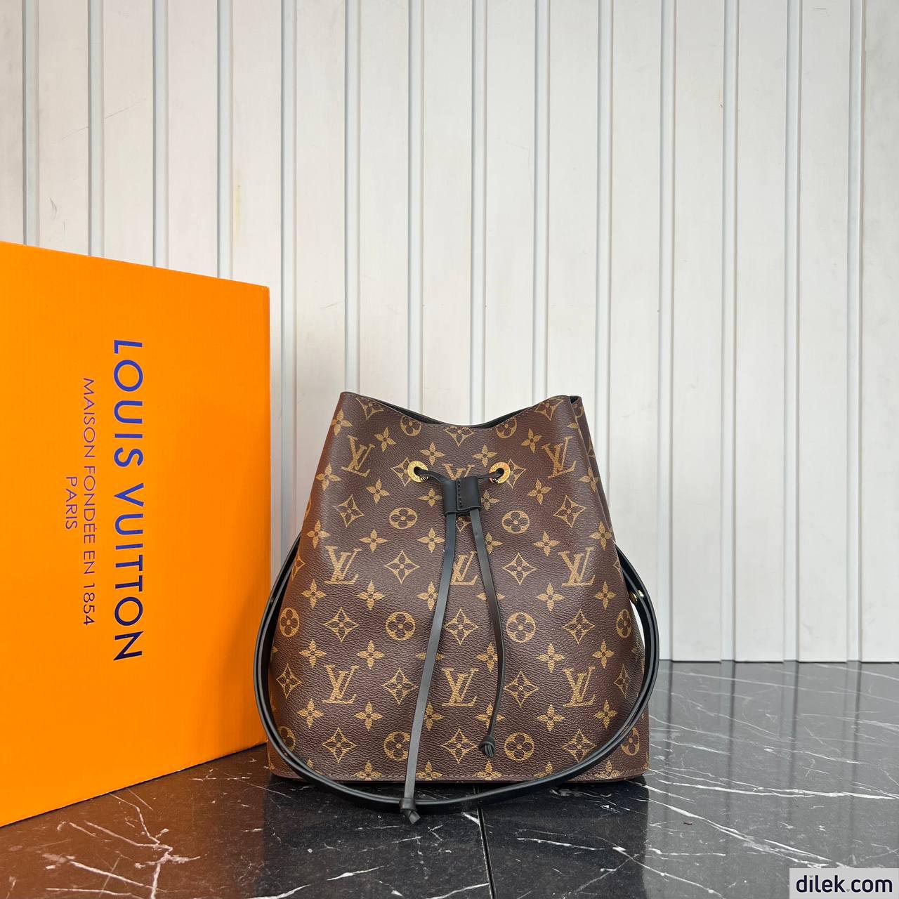 A true House icon, the NéoNoé bucket bag revisits a 1932 design by Gaston-Louis Vuitton. The original was created to transport bottles of Champagne in style; this modern version in Monogram canvas features a sleek shape, colorful leather trim and a matching bonded lining. The adjustable smart strap can be slung over the shoulder or lengthened for a trendy cross-body carry.