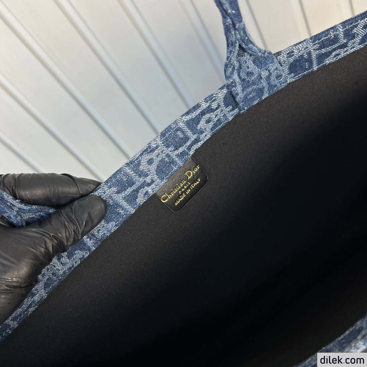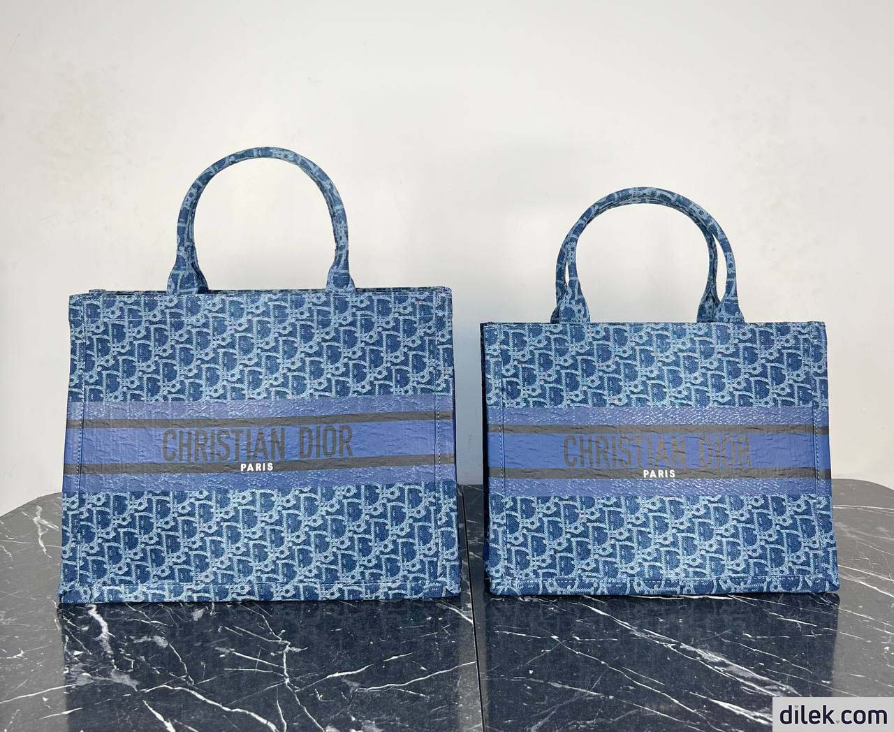 Introduced by Maria Grazia Chiuri, Creative Director of Christian Dior, the Dior Book Tote has become a staple of the Dior aesthetic. Designed to hold all the daily essentials, it is constructed in blue Denim Dior Oblique jacquard, offering a new take on the iconic House motif with the modern appeal of an irregular stonewashed effect. Adorned with a contrasting Christian Dior Paris signature on the front, the medium tote exemplifies the House's savoir-faire and may be carried by hand.