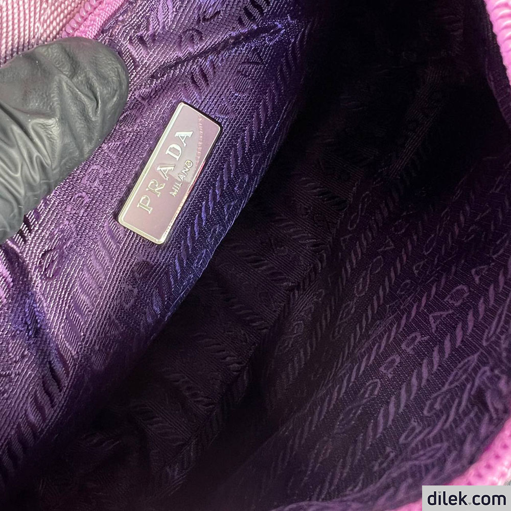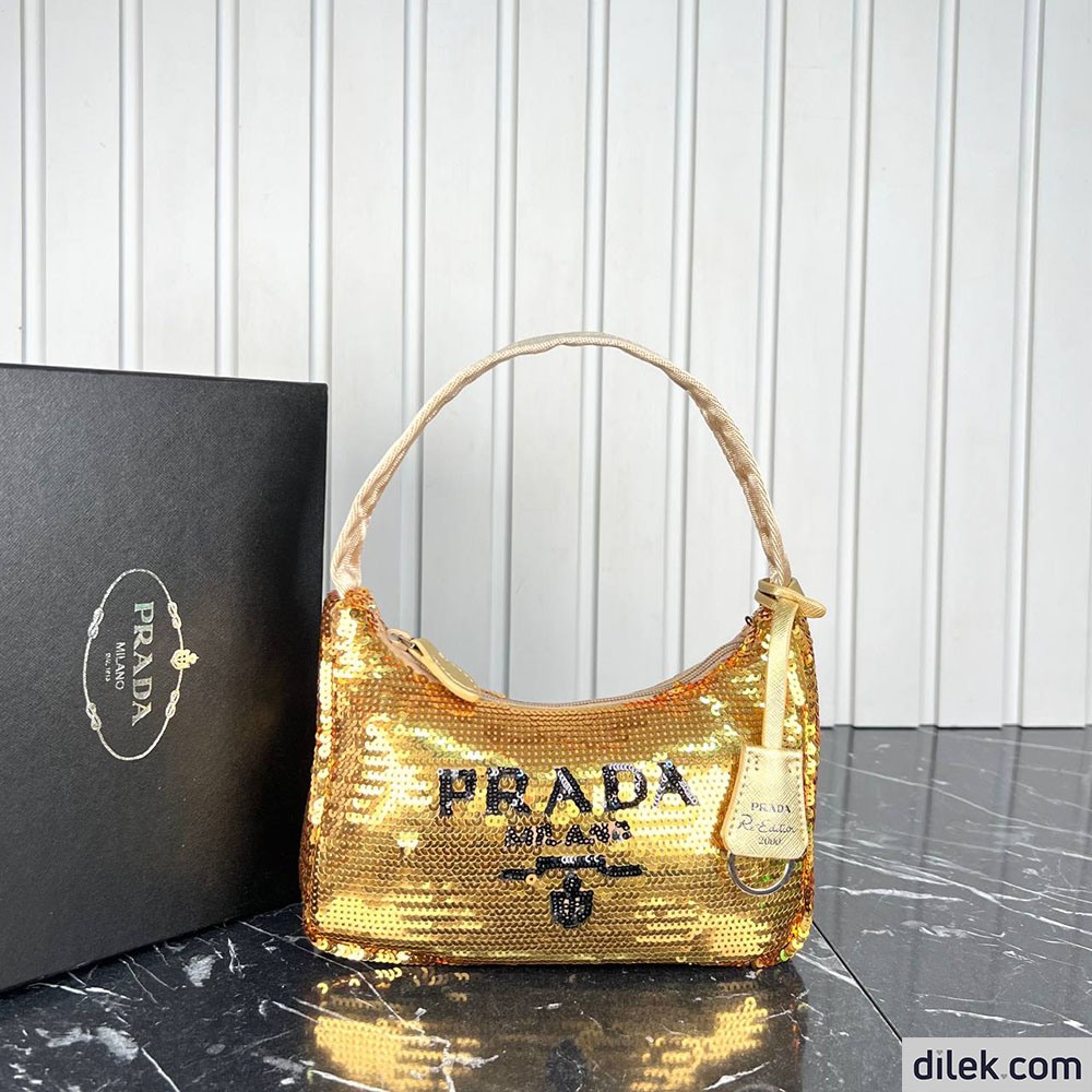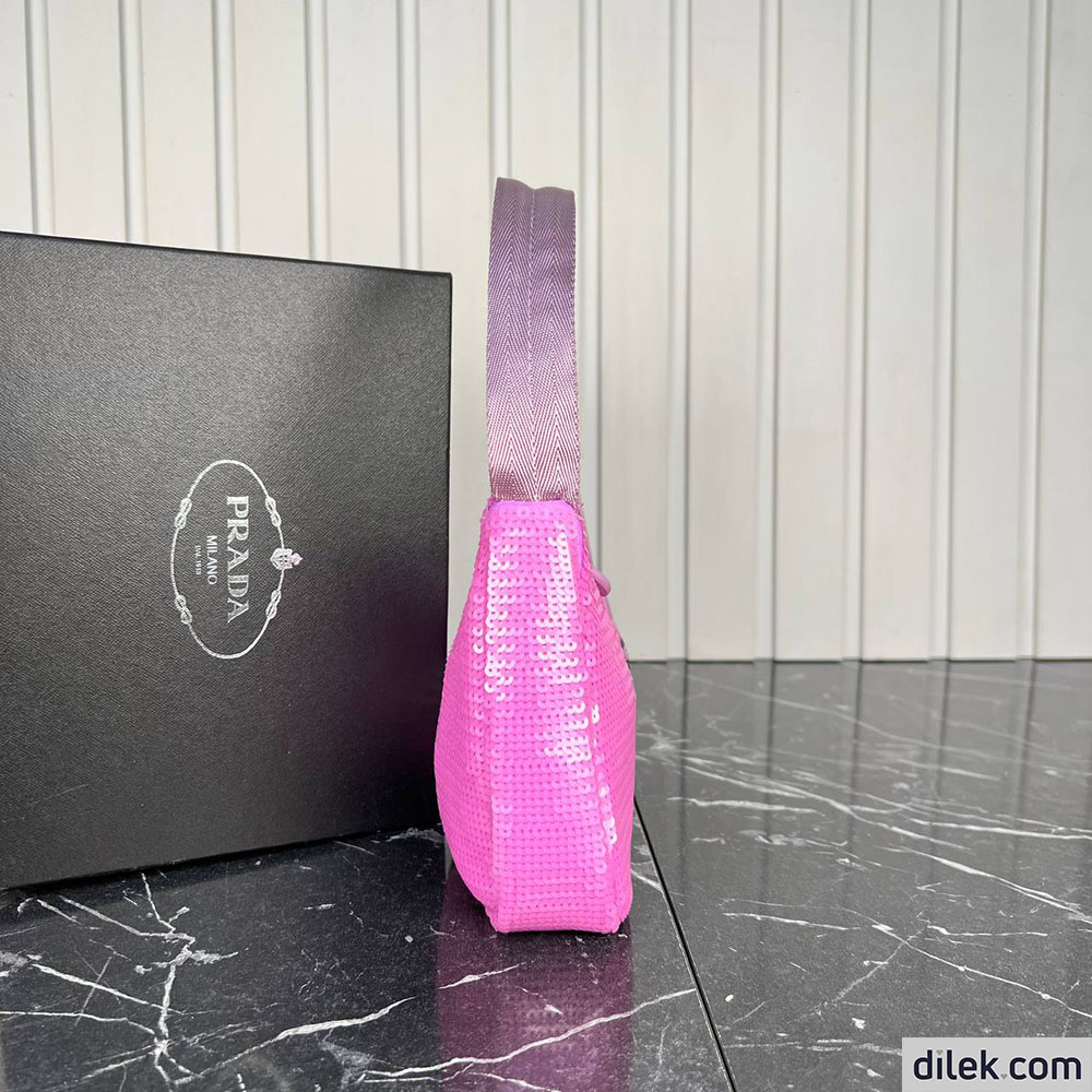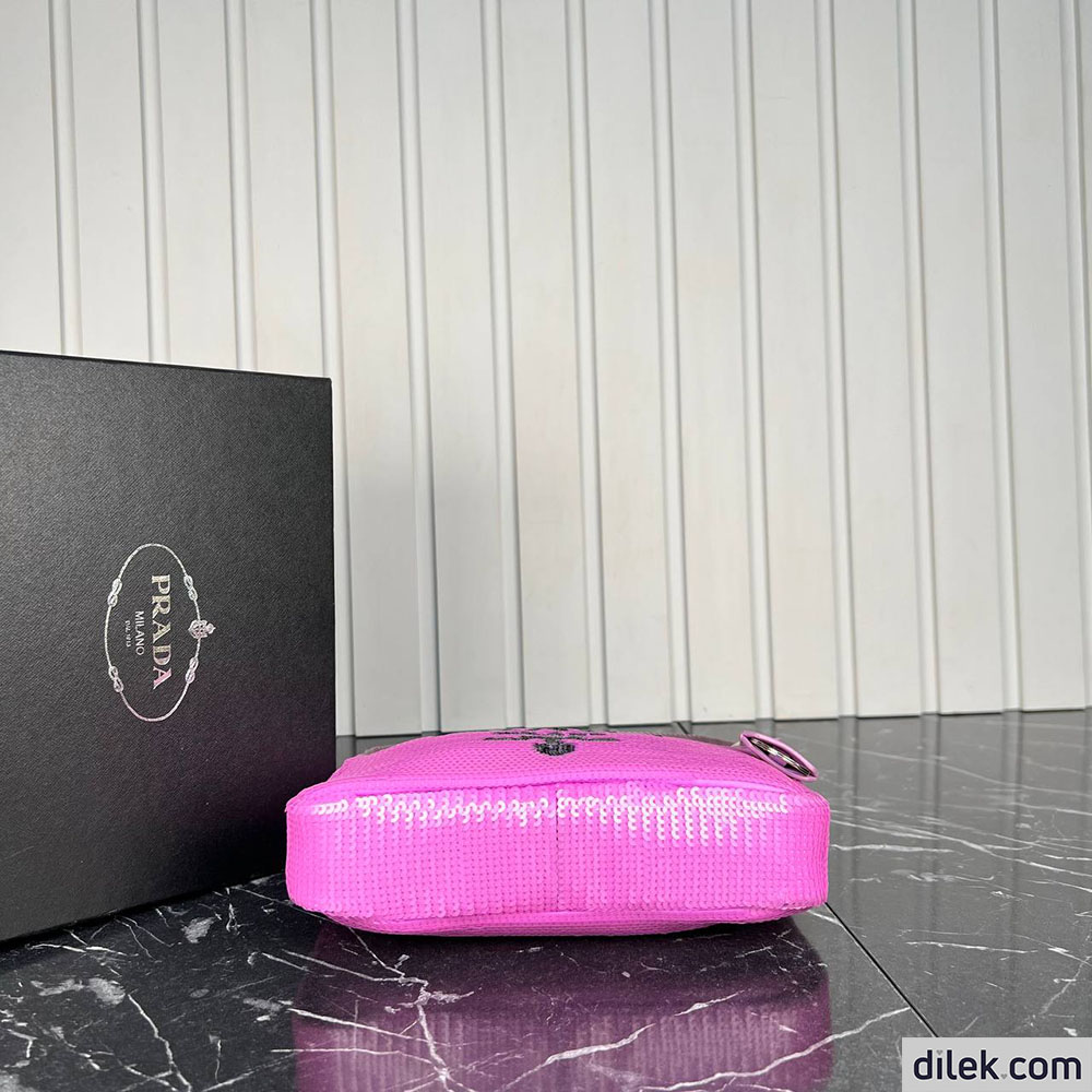 This mini hobo bag, an iconic Prada style, comes in a luxurious satin version studded with crystals and decorated with the emblematic enamel triangle logo.
