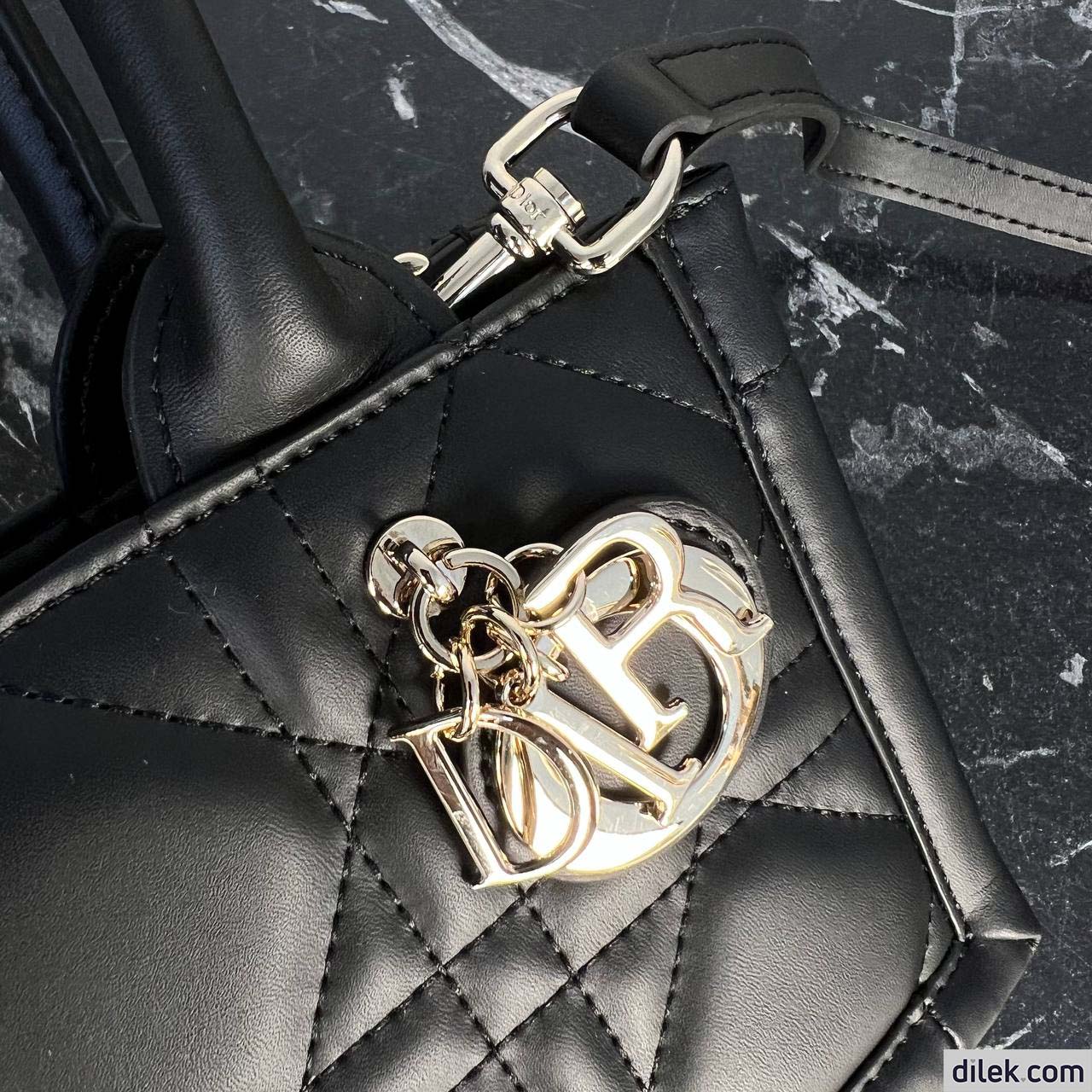 The Dior Book Tote is a House classic and original design by Maria Grazia Chiuri, Creative Director of Christian Dior. Constructed in latte calfskin, it is embellished with hallmark Macrocannage topstitching and accented by pale gold-finish metal D.I.O.R. charms adorning one of the top handles. Exemplifying House savoir-faire, the miniature style features an adjustable and removable strap that allows it to be carried by hand, worn over the shoulder or crossbody.