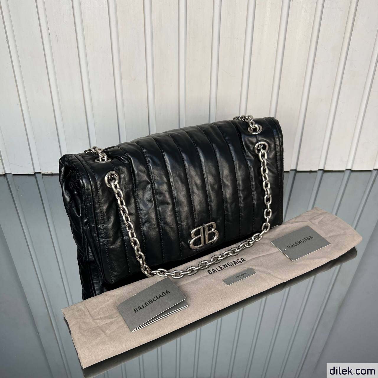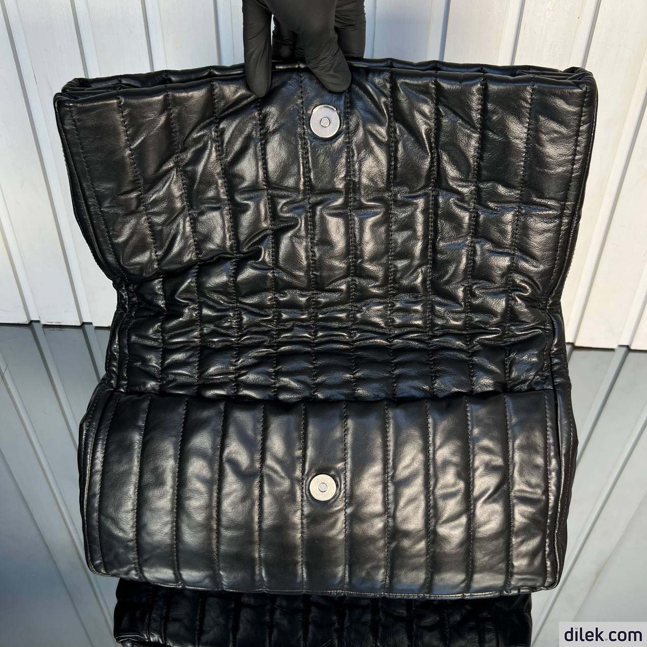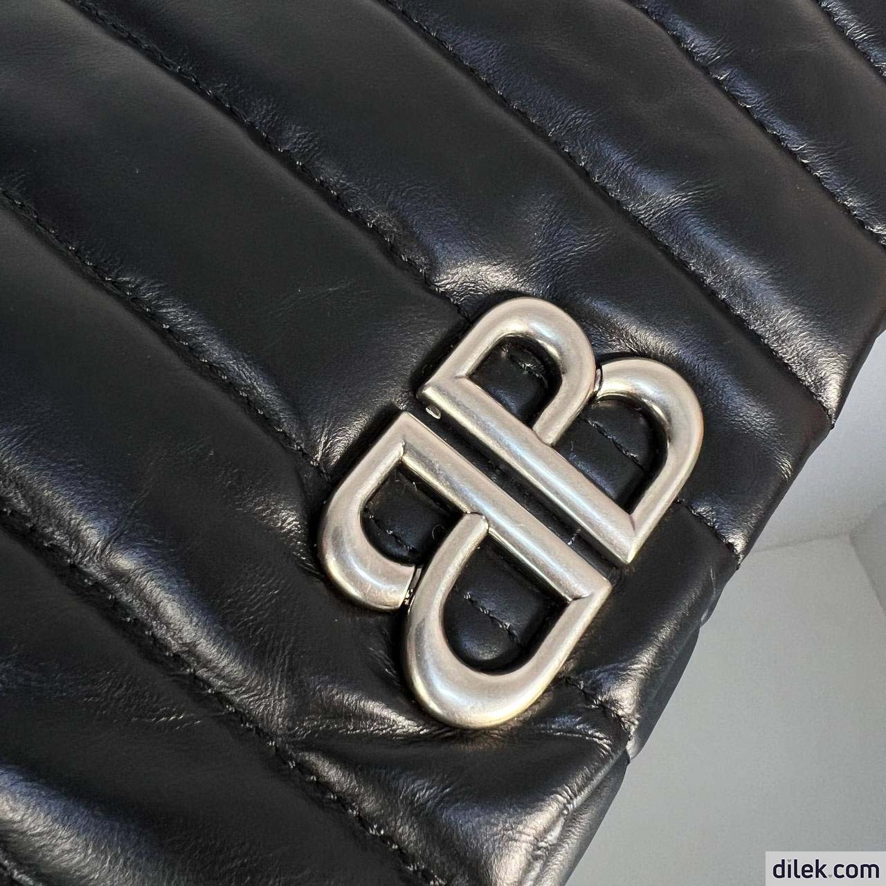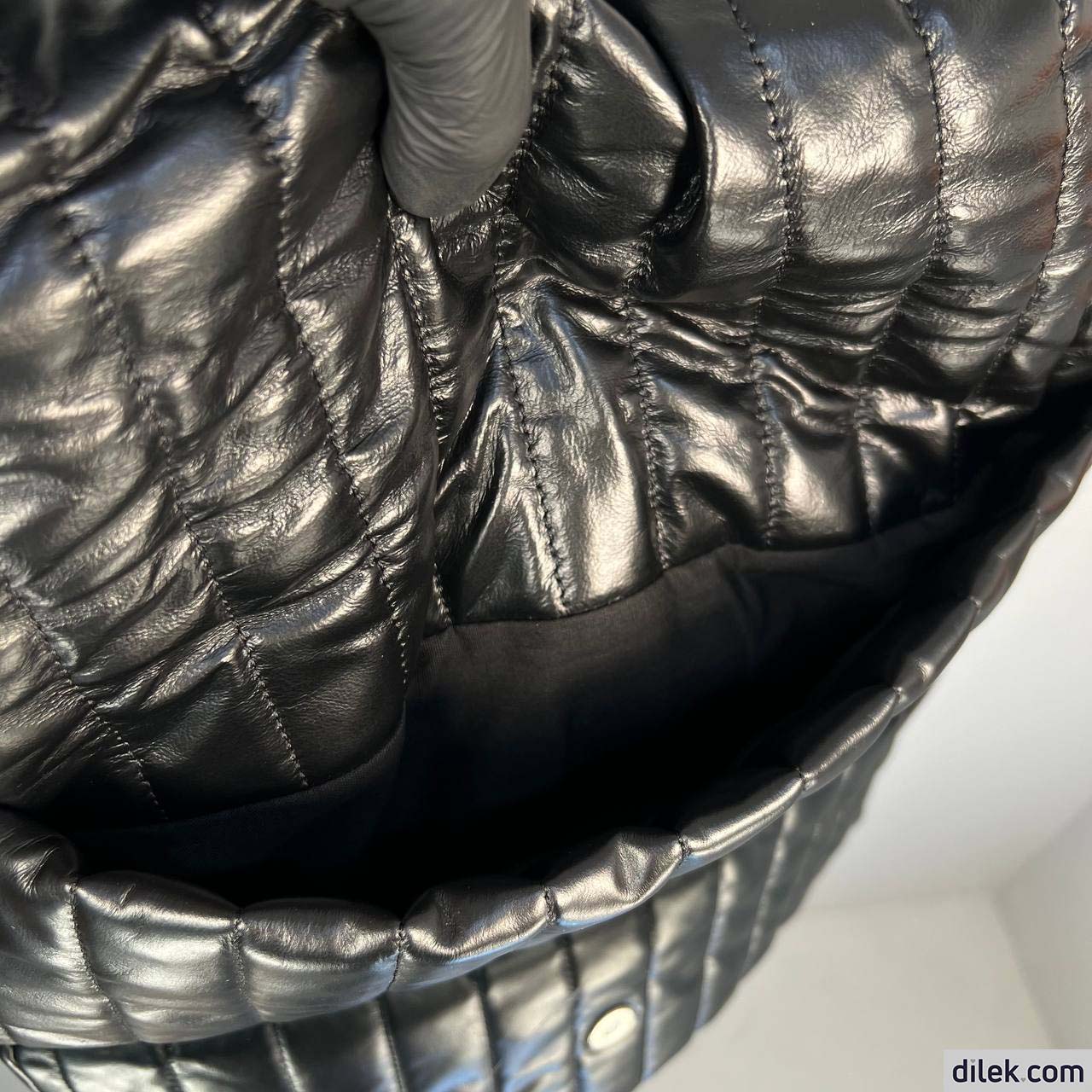 Monaco Chain Bag in black quilted thin calfskin, aged-silver hardware.