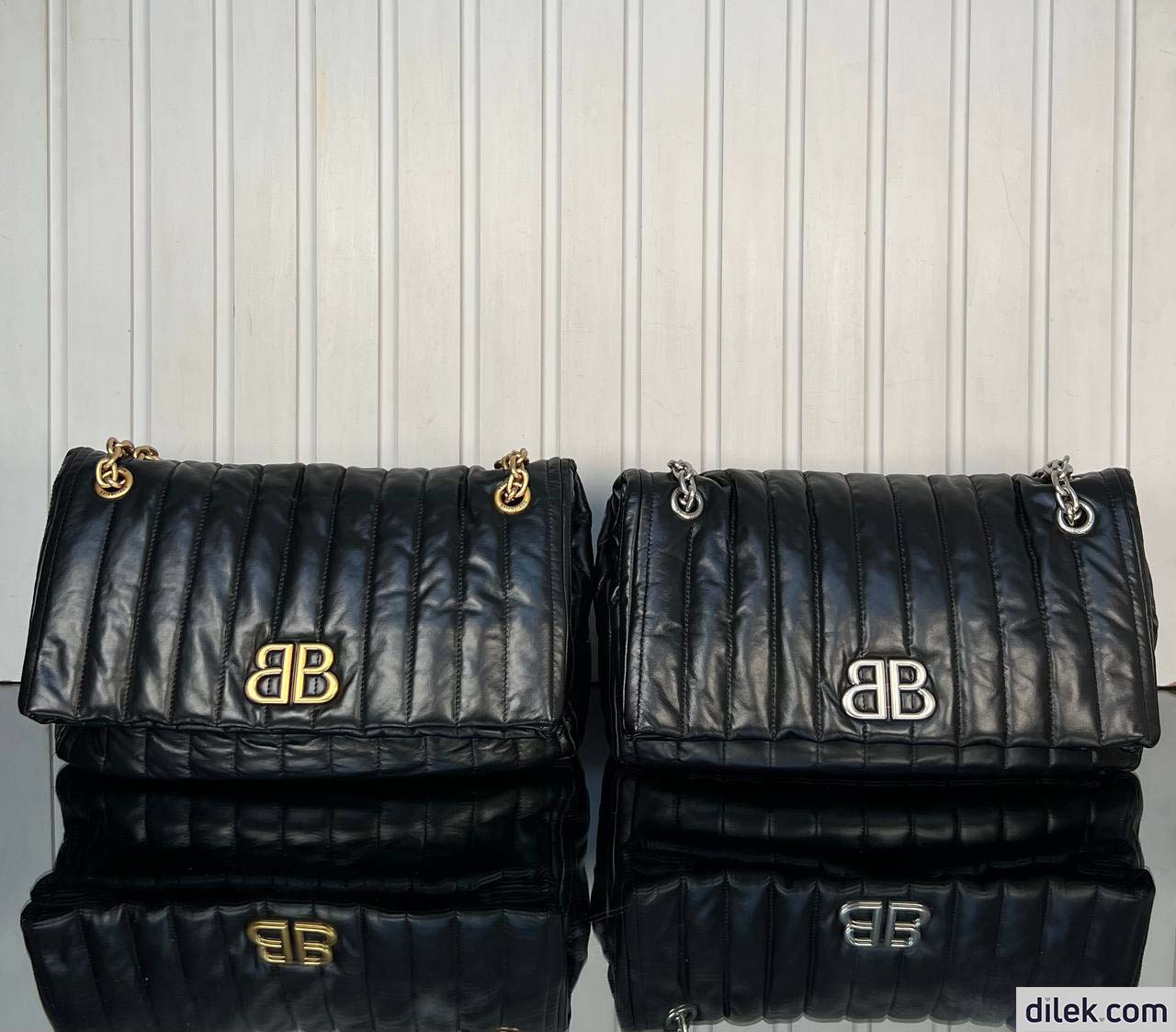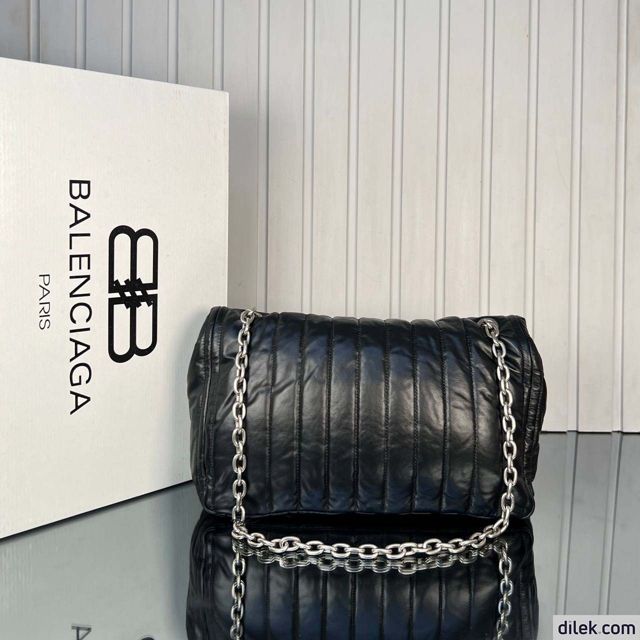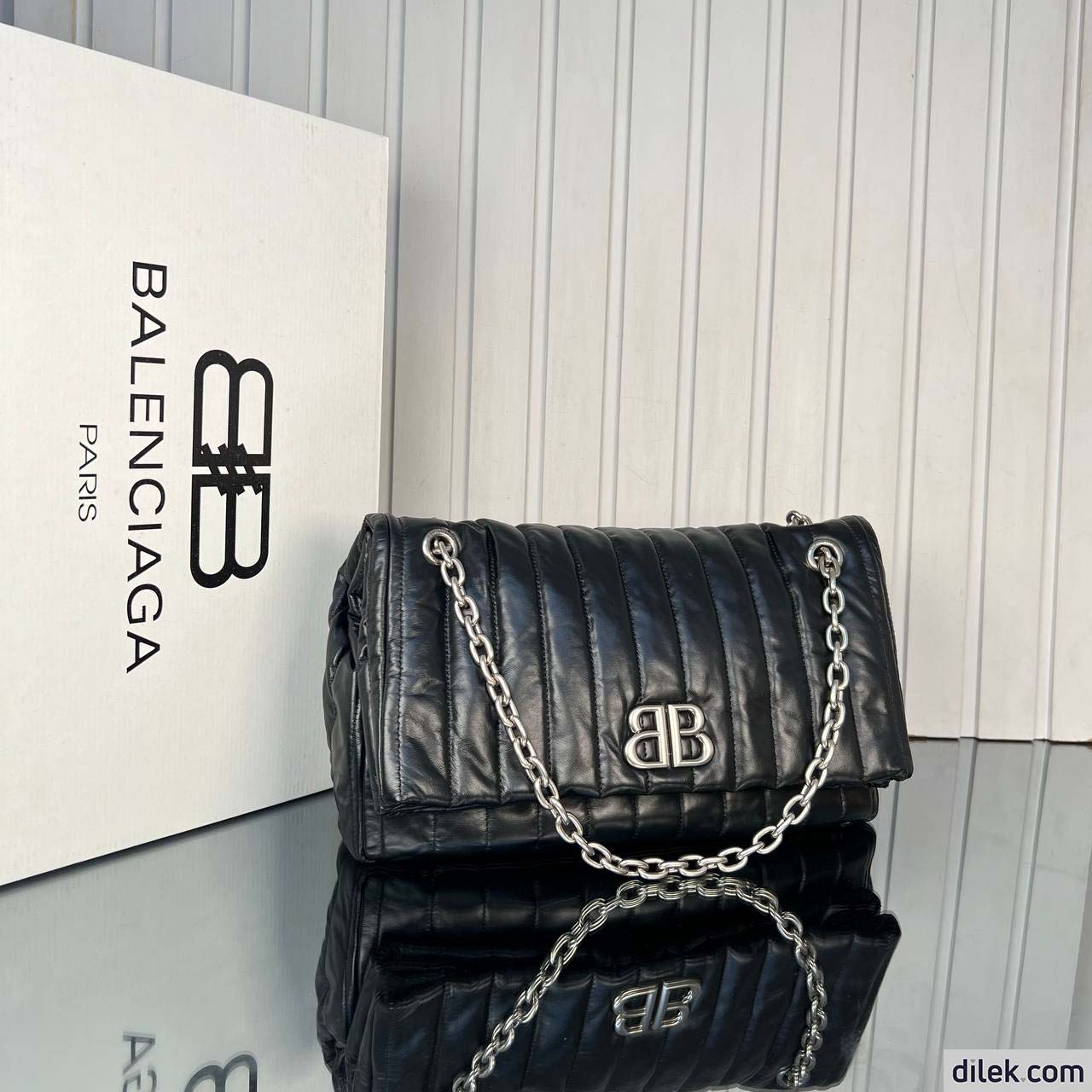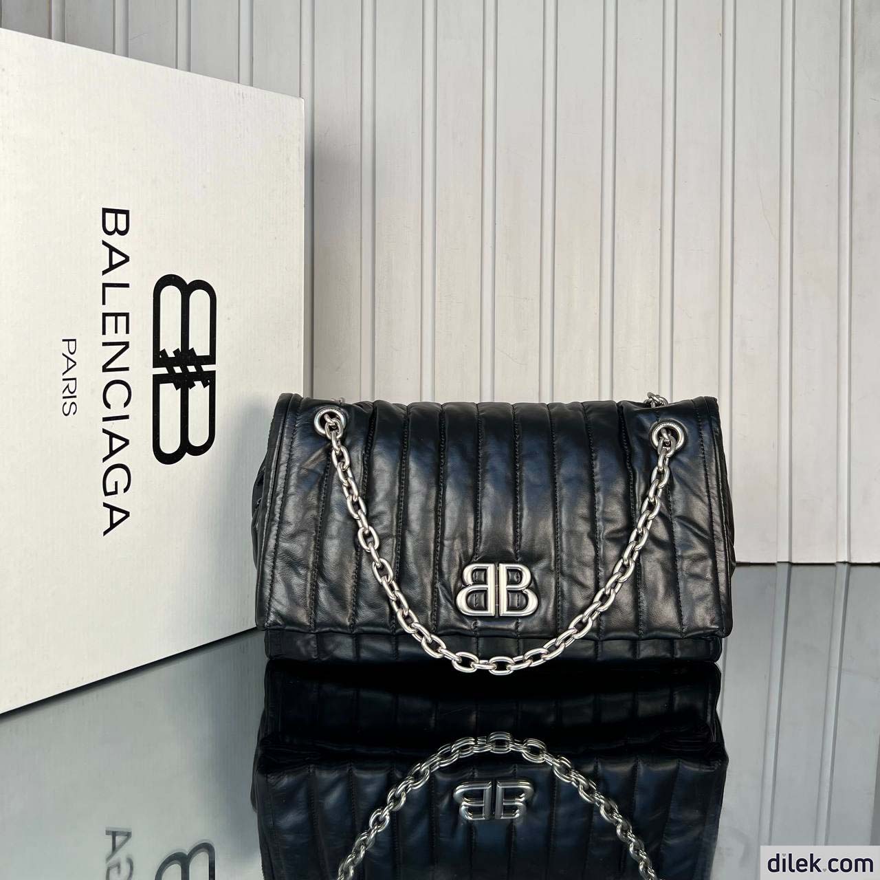Monaco Chain Bag in black quilted thin calfskin, aged-silver hardware.