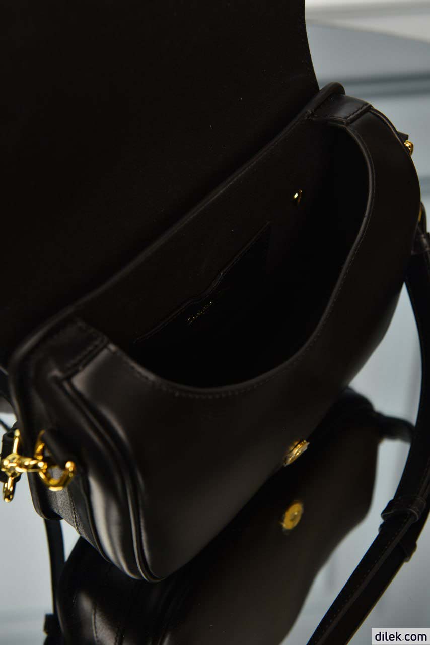 The Dior Bobby bag is a hobo style showcasing sophisticated lines and harmonious proportions. The latte box calfskin style has a suede calfskin interior for a supple touch as well as antique gold-finish metal hardware. Featuring a removable and adjustable sliding shoulder strap with a military-inspired buckle, the small Dior Bobby bag can be carried by hand, worn over the shoulder or crossbody.