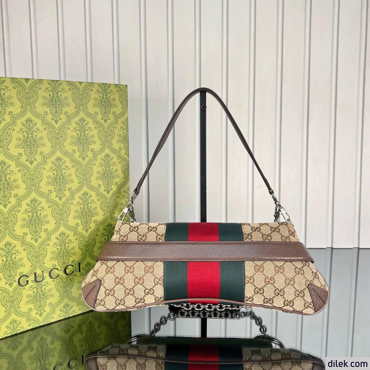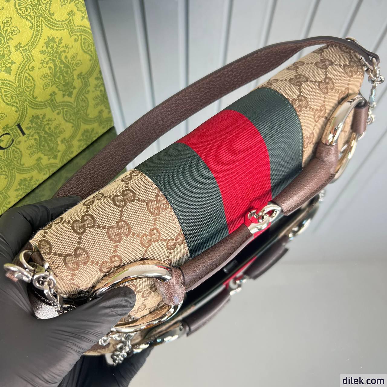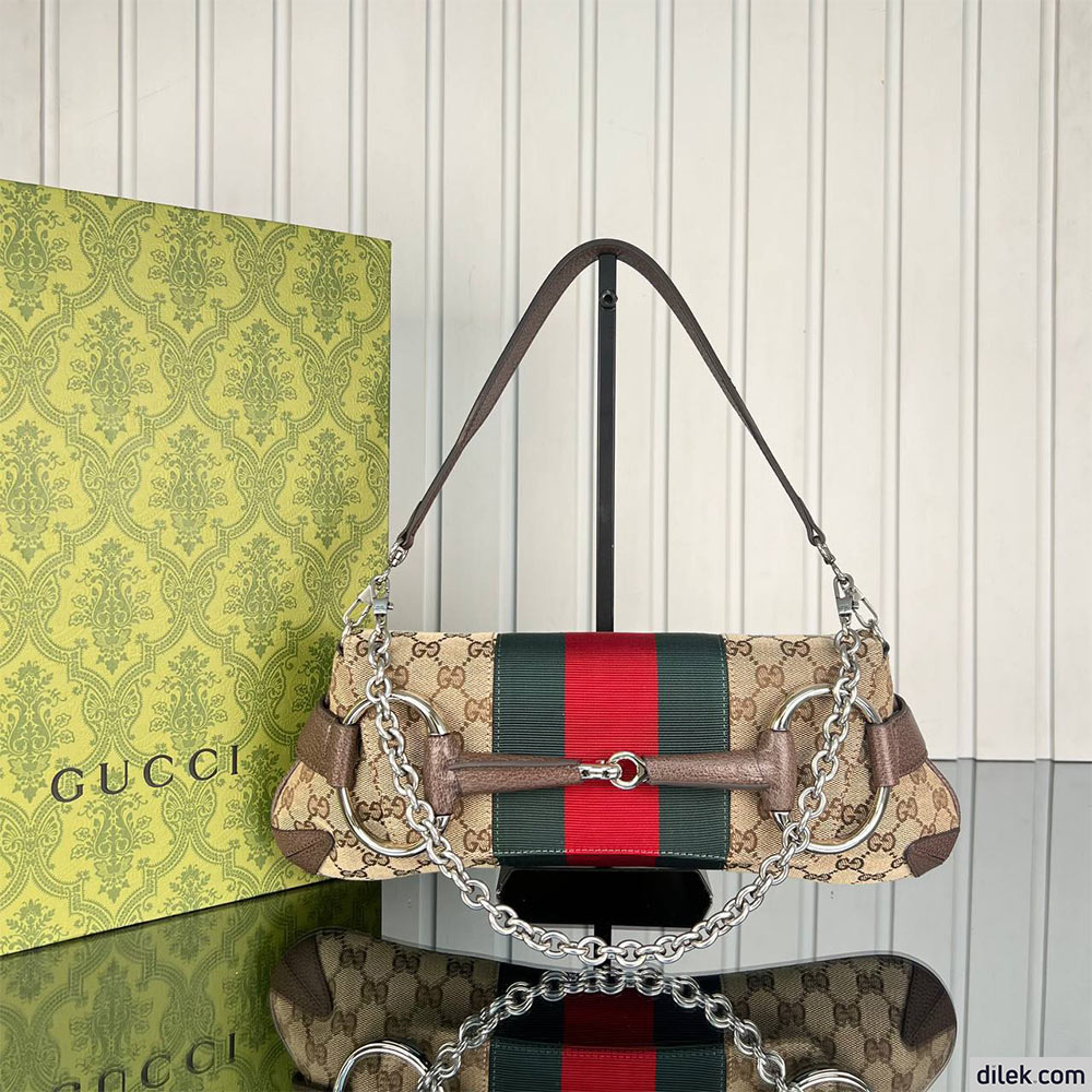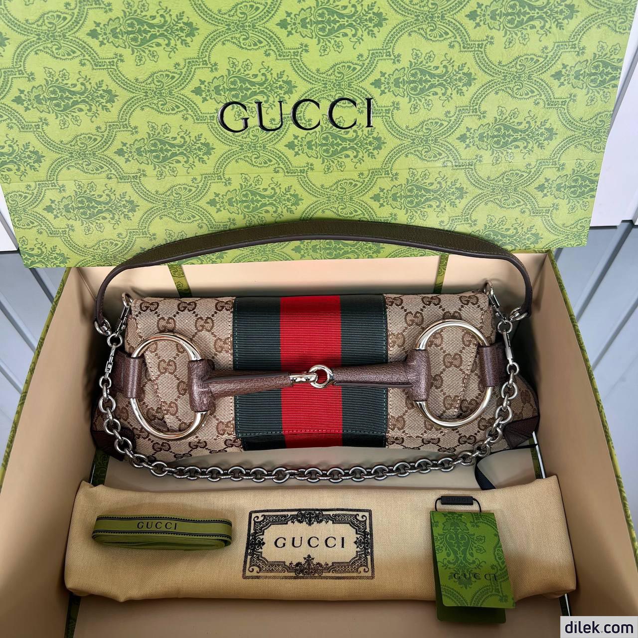 Gucci successfully recalls its past by connecting the archives to the present day. Adorned with a maxi Horsebit, first made popular during the early ‘2000s, this silhouette continues to be one of the most recognizable handbags of the House. Revisited for the Fall Winter 2023 collection, it is presented in various colors and textures that follow a contemporary approach.