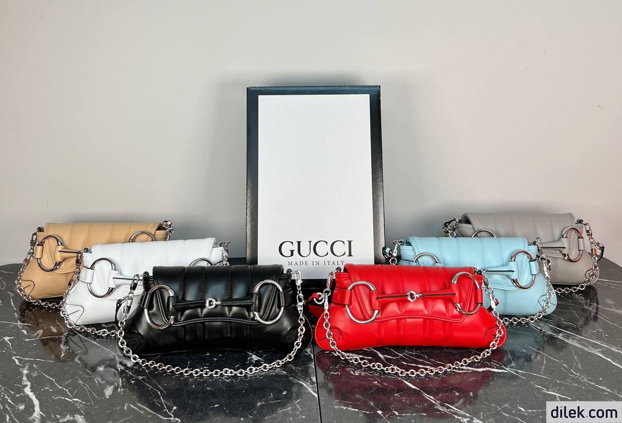 Gucci successfully recalls its past by connecting the archives to the present day. Adorned with a maxi Horsebit, first made popular during the early ‘2000s, this silhouette continues to be one of the most recognizable handbags of the House. Revisited for the Fall Winter 2023 collection, it is presented in various colors and textures that follow a contemporary approach.