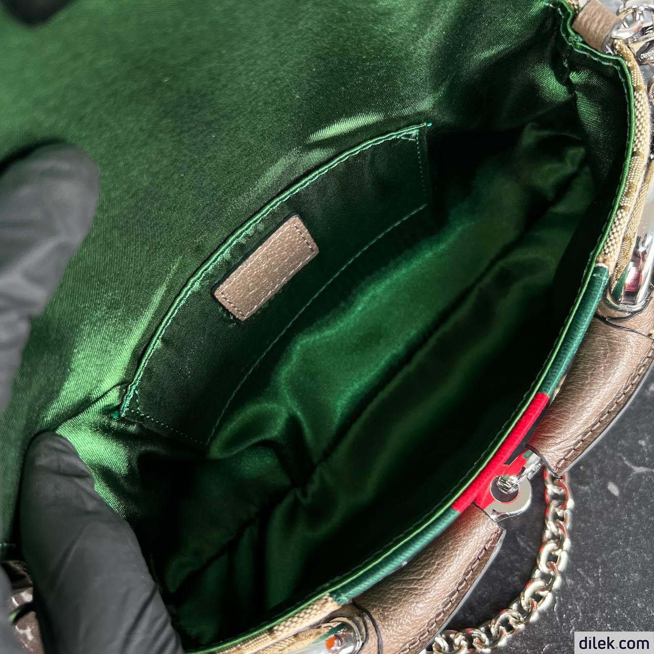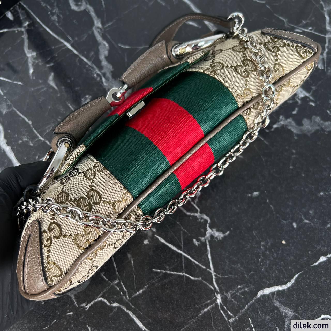 Gucci successfully recalls its past by connecting the archives to the present day. Adorned with a maxi Horsebit, first made popular during the early ‘2000s, this silhouette continues to be one of the most recognisable handbags of the House. Revisited for the Fall Winter 2023 collection, it is presented in various colours and textures that follow a contemporary approach.