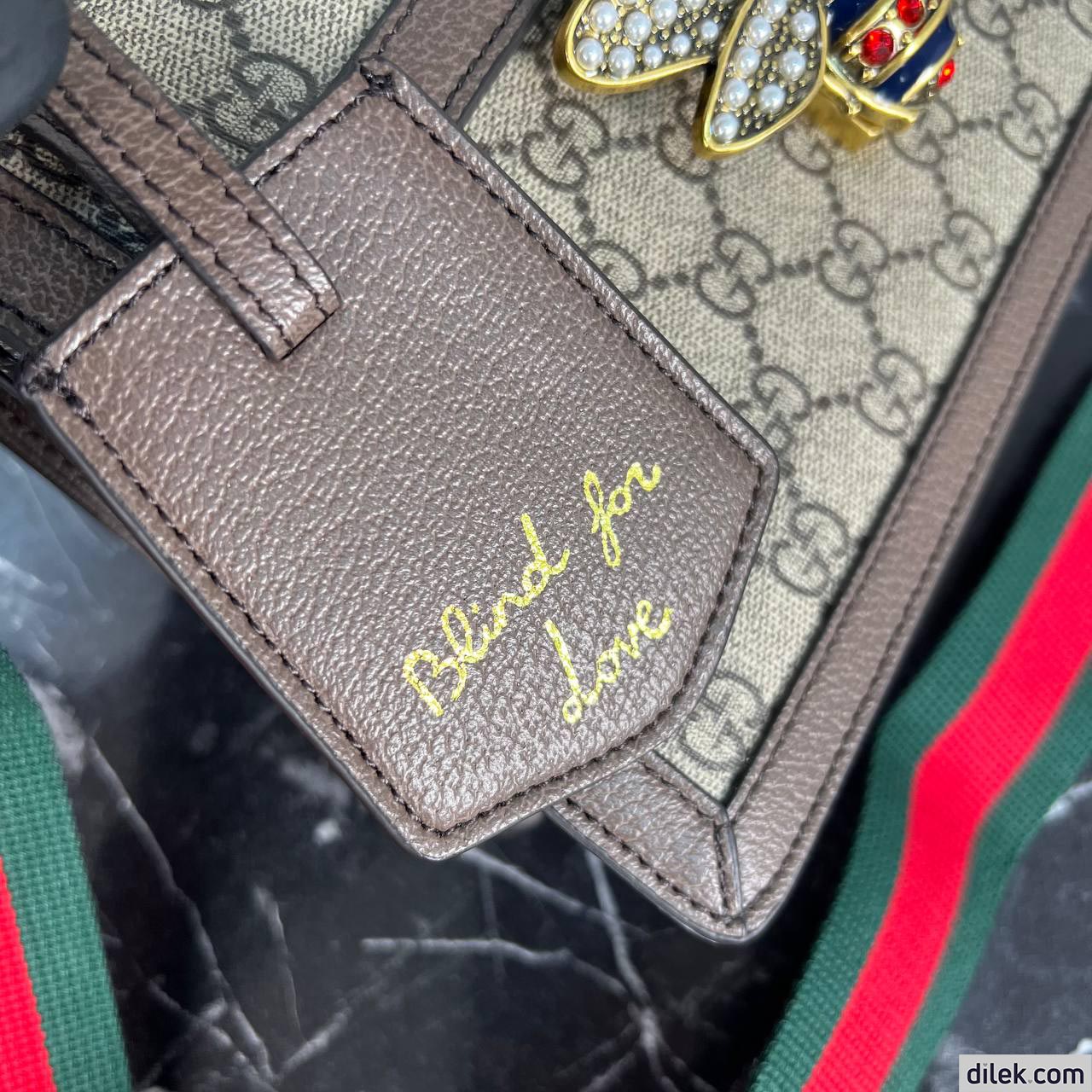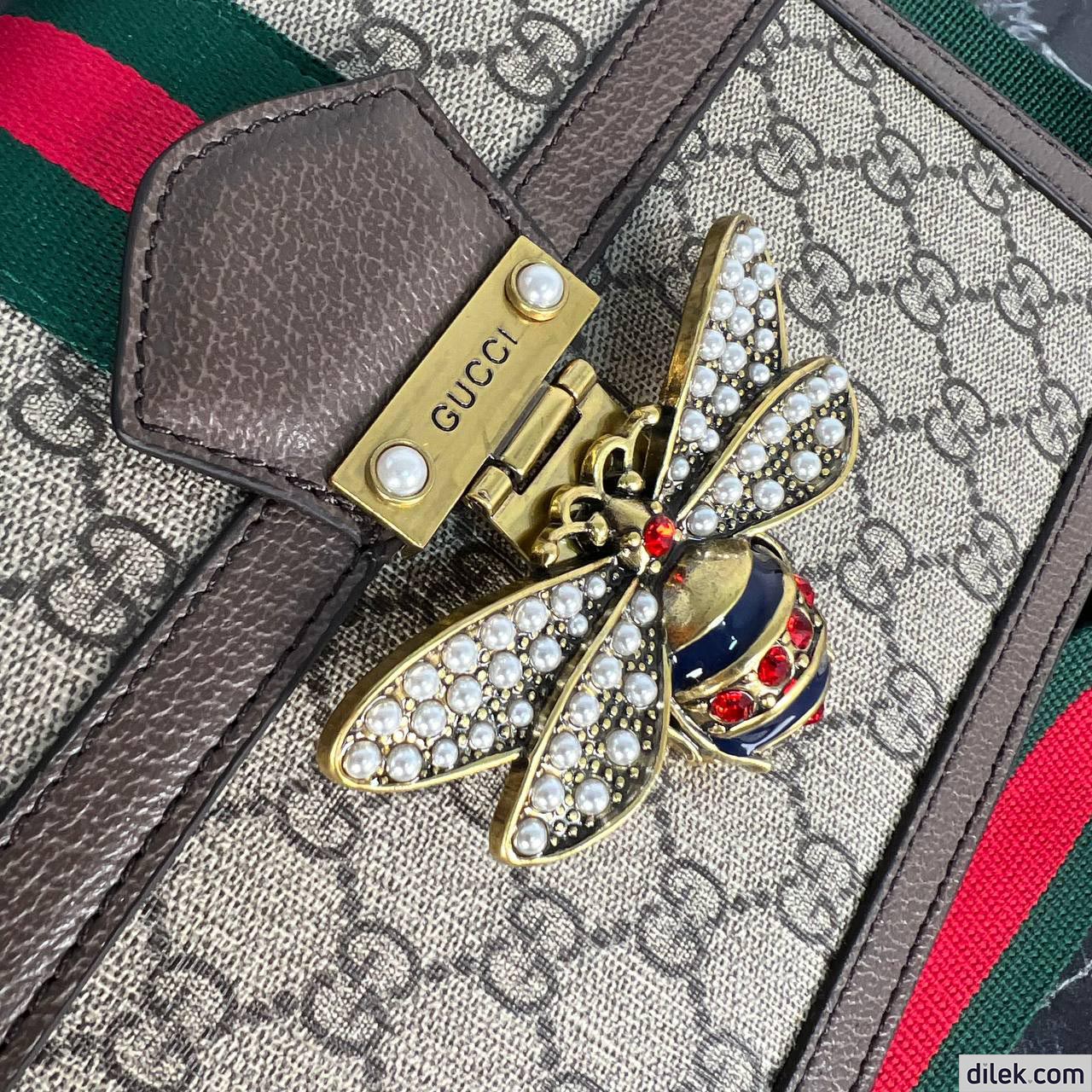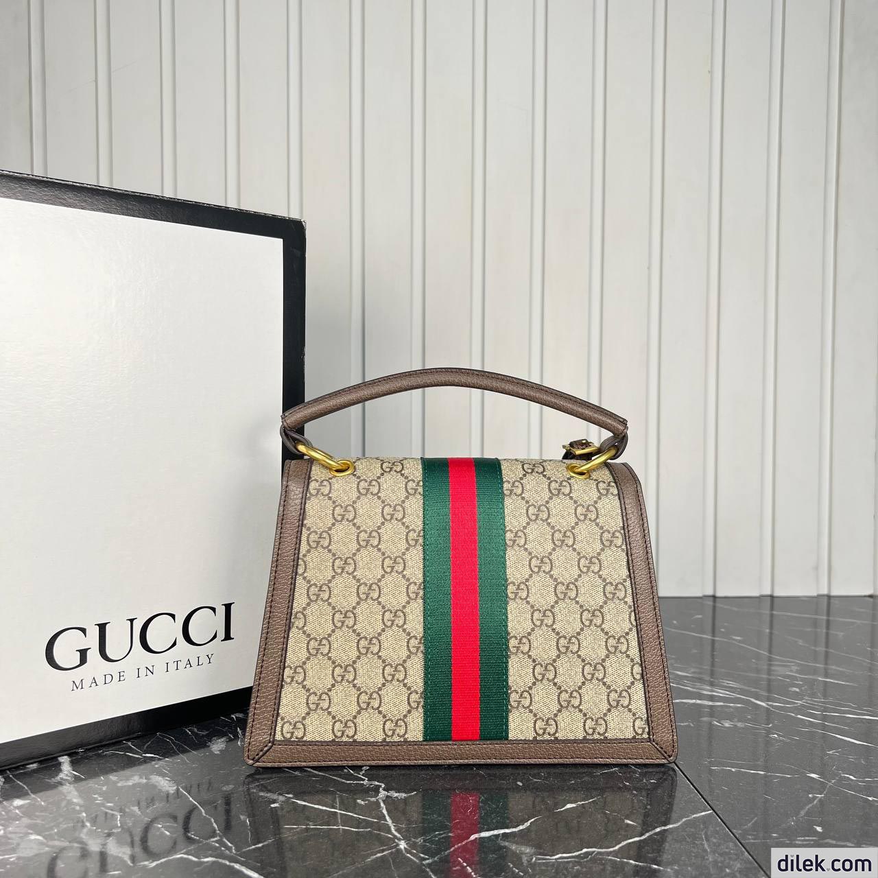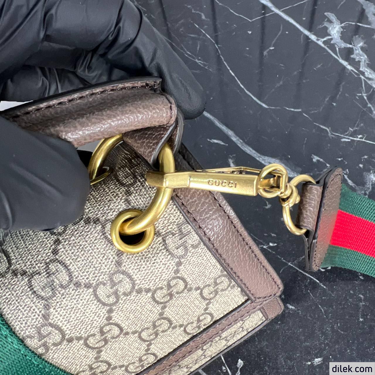 The world of Ophidia continues to evolve with new iterations each season. The top handle bag is presented as part of the Epilogue collection with a detachable shoulder strap. The vintage influenced square shape is accentuated by the House Web stripe and Double G hardware a contemporary take on a Gucci archival belt buckle from the '70s. Crafted from the House's monogram canvas, the style has a strong logo feel.