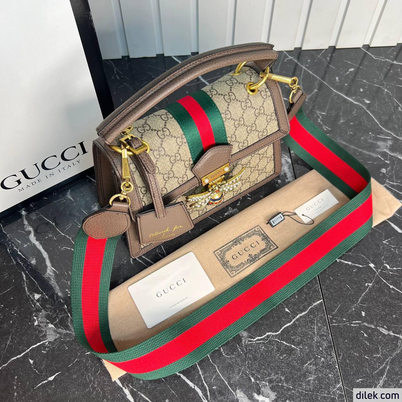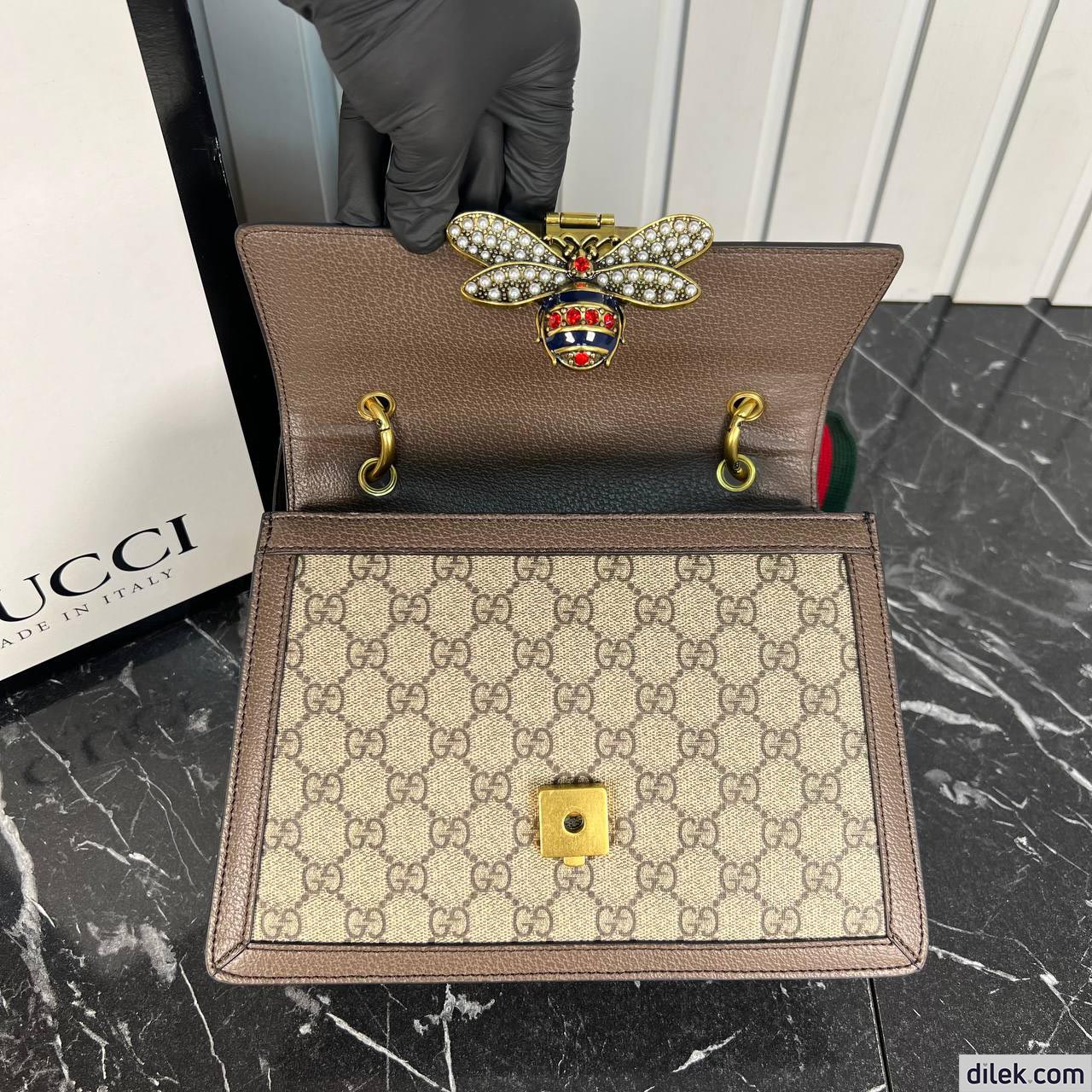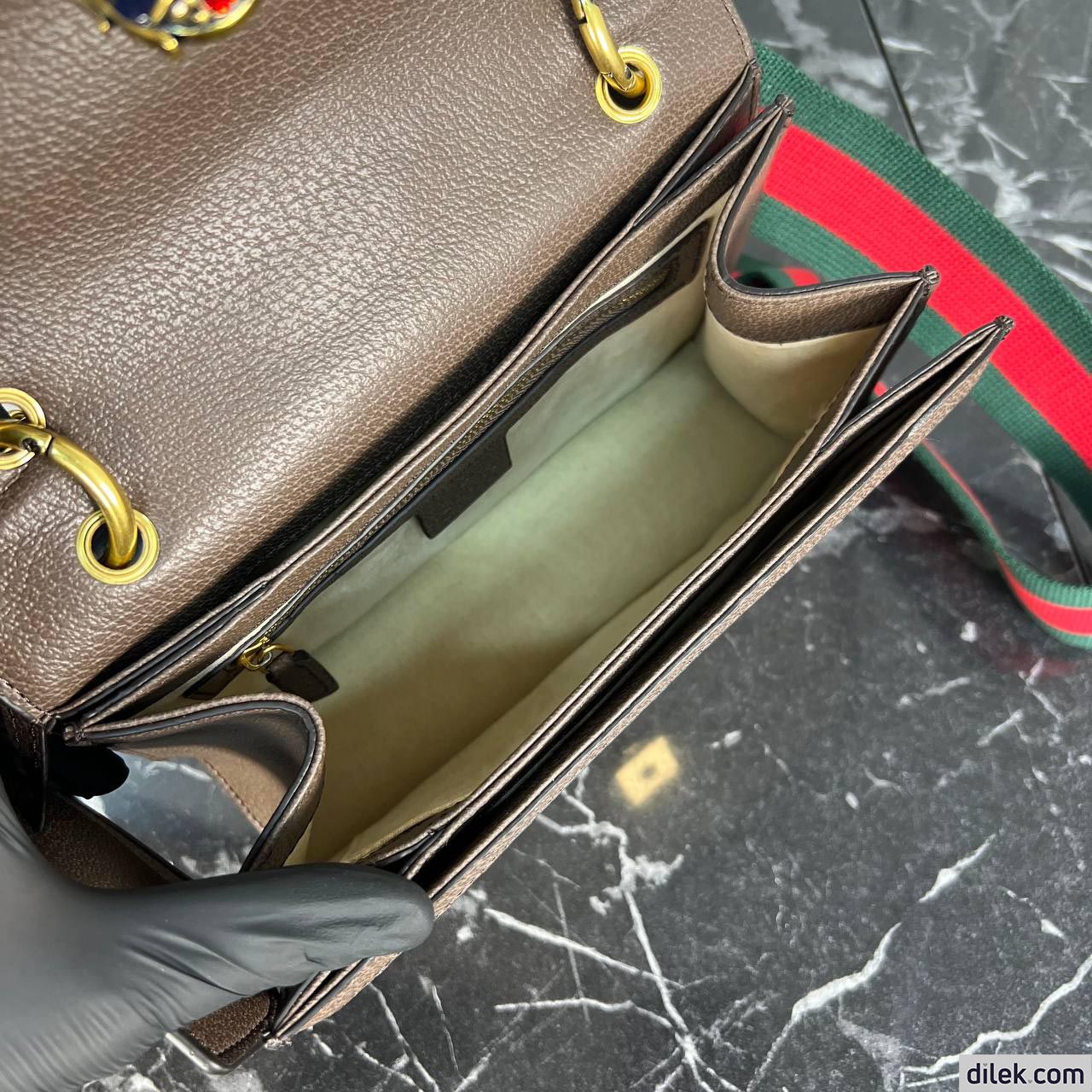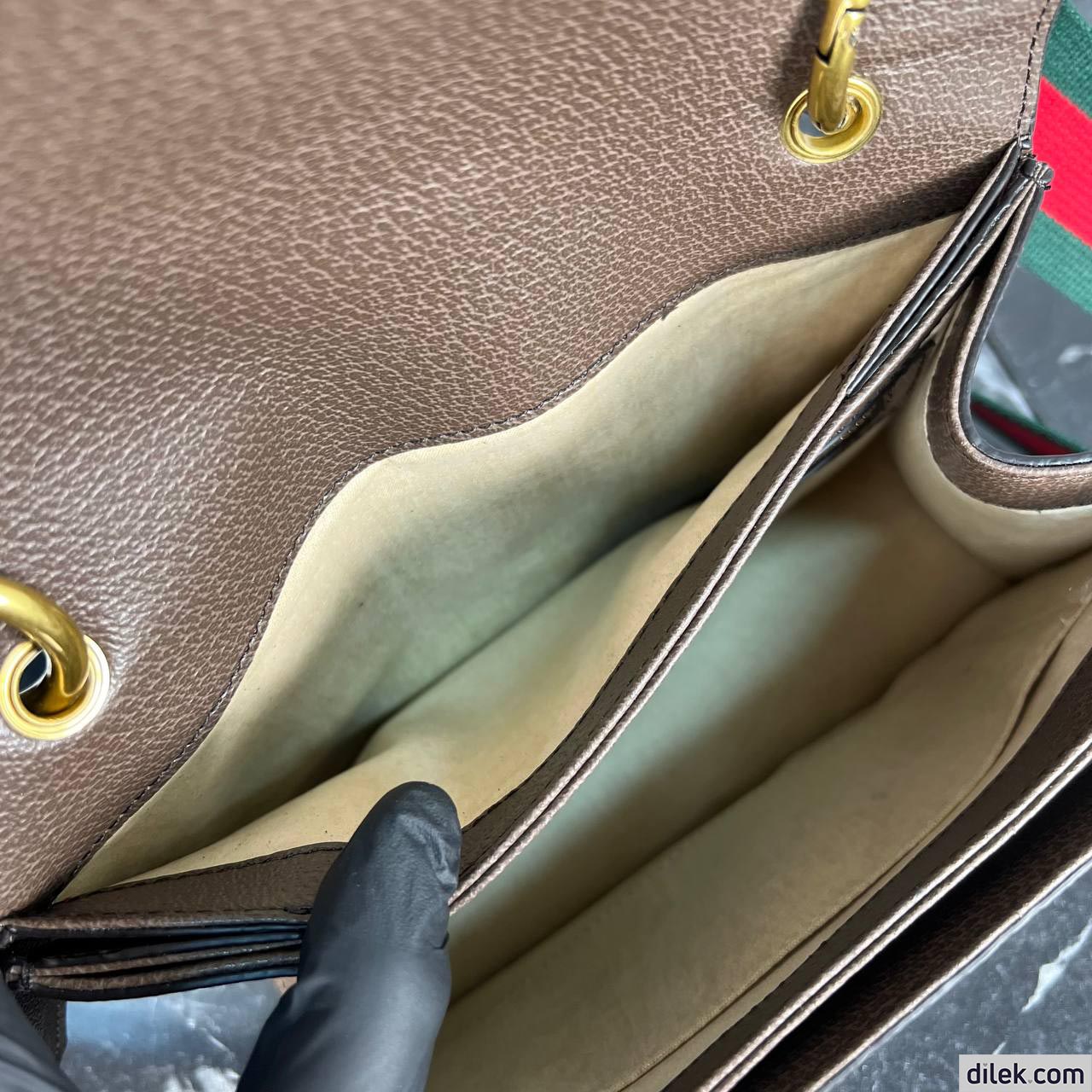 The world of Ophidia continues to evolve with new iterations each season. The top handle bag is presented as part of the Epilogue collection with a detachable shoulder strap. The vintage influenced square shape is accentuated by the House Web stripe and Double G hardware a contemporary take on a Gucci archival belt buckle from the '70s. Crafted from the House's monogram canvas, the style has a strong logo feel.
