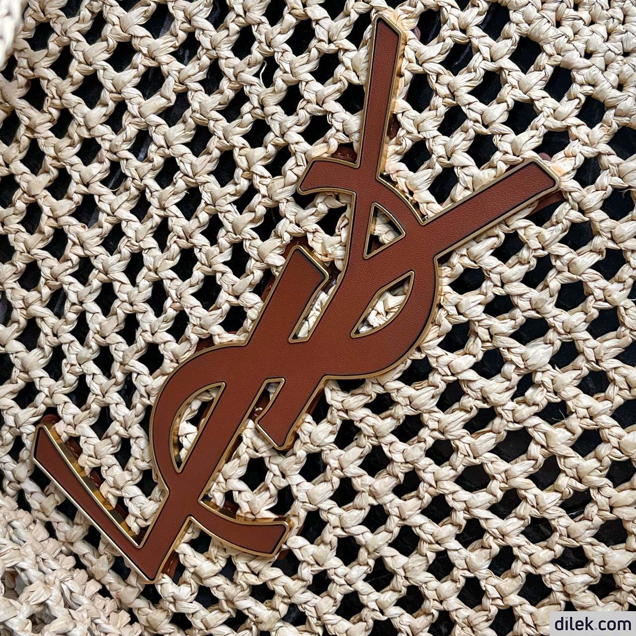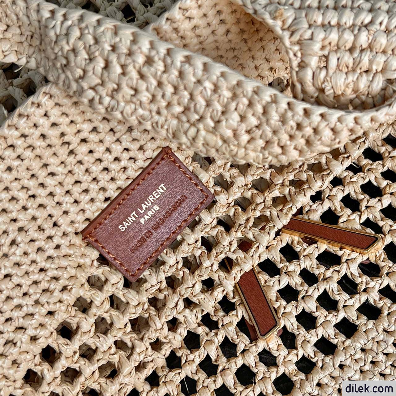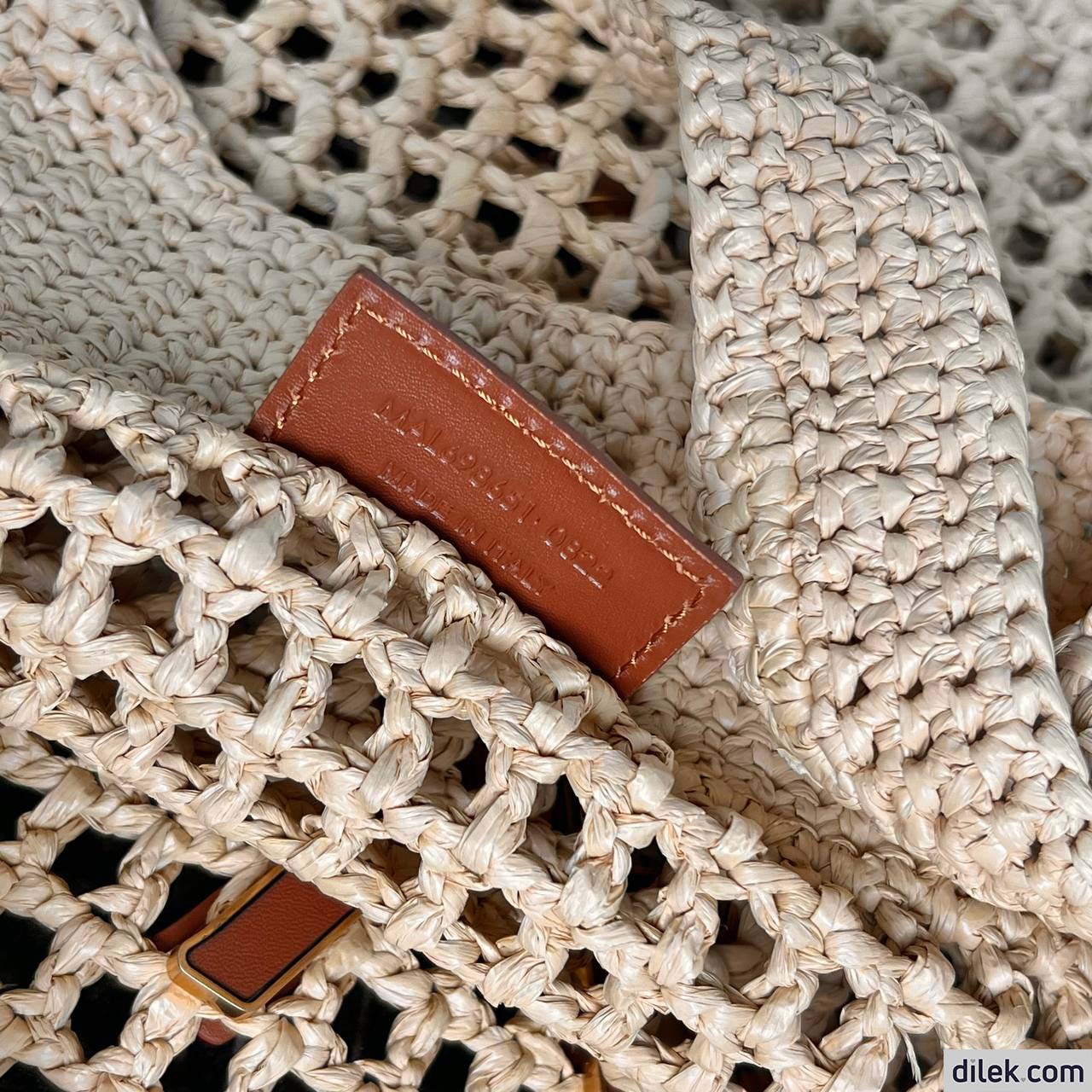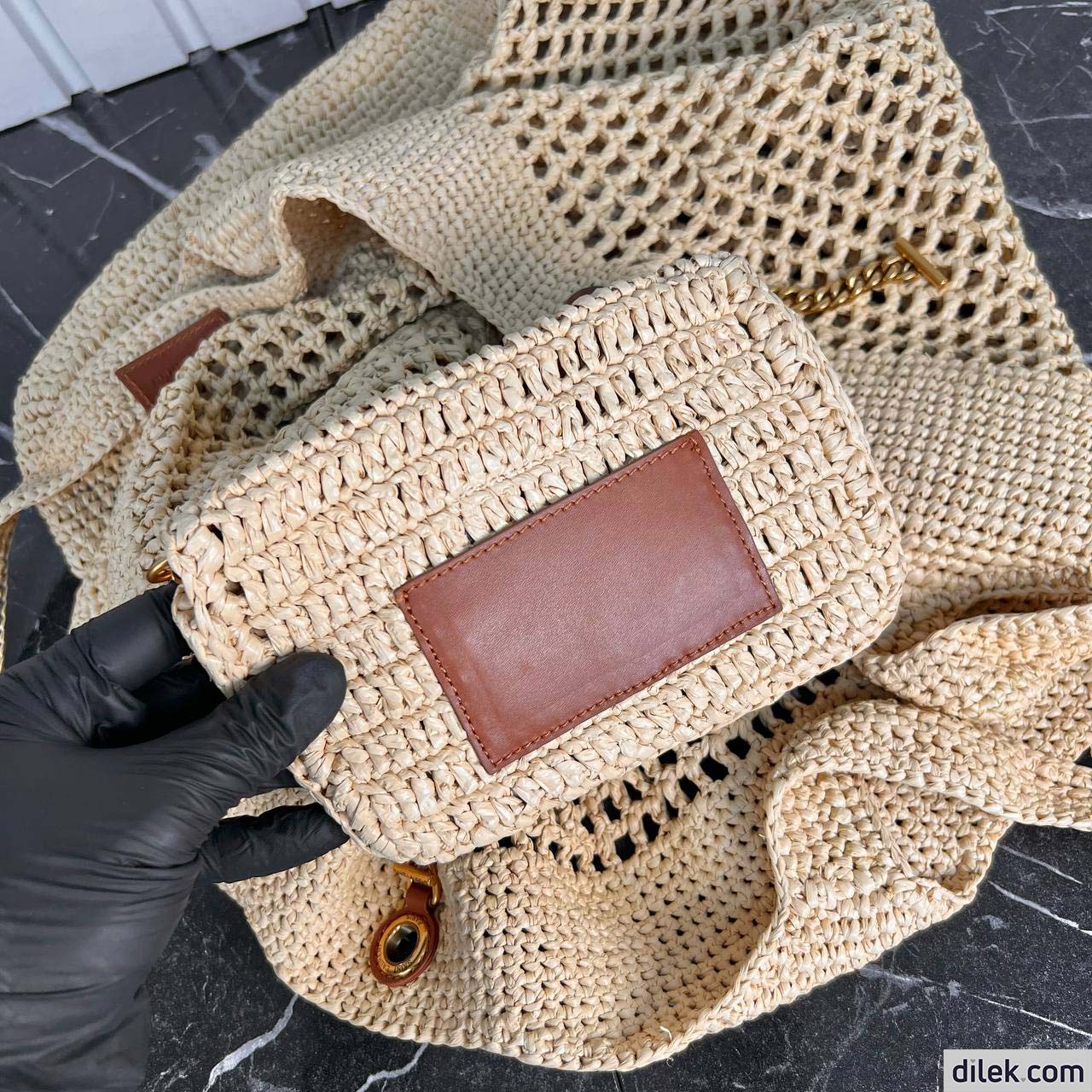Maxi shopping bag made in a hand-embroidered natural raffia. This technique requires the finest savoir-faire and specialized craftsmanship. Anorned with an oversized, sculptures cassandre, its inner chain can be used to adjust the sides.