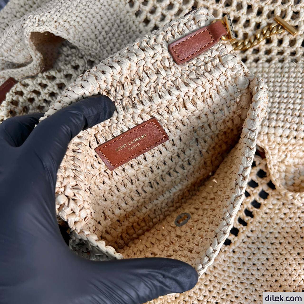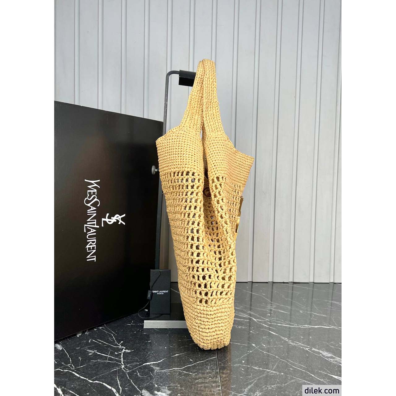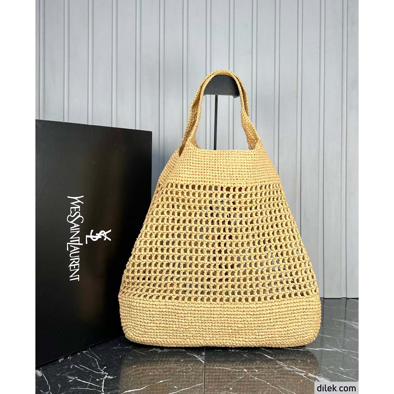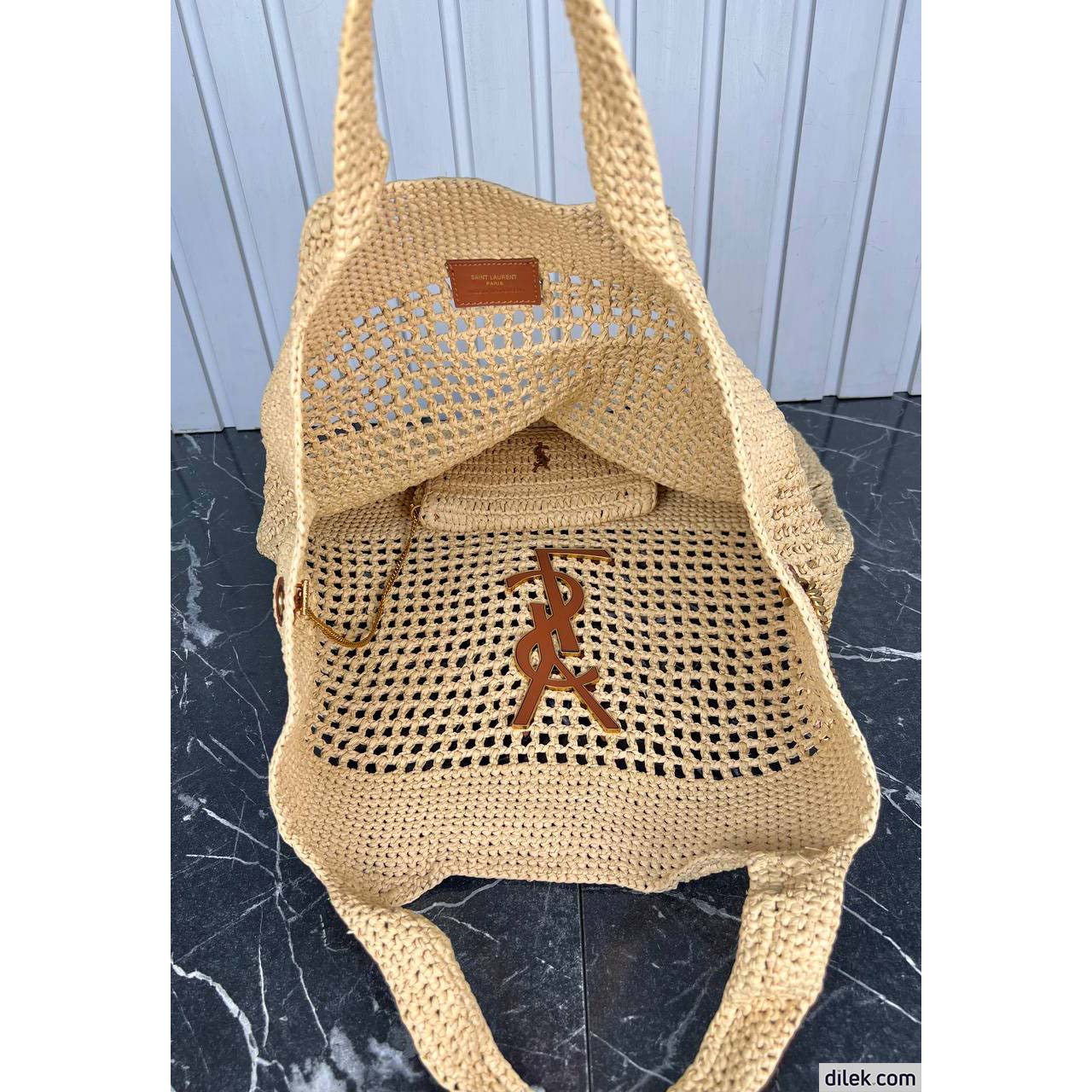 Maxi shopping bag made in a hand-embroidered natural raffia. This technique requires the finest savoir-faire and specialized craftsmanship. Anorned with an oversized, sculptures cassandre, its inner chain can be used to adjust the sides.