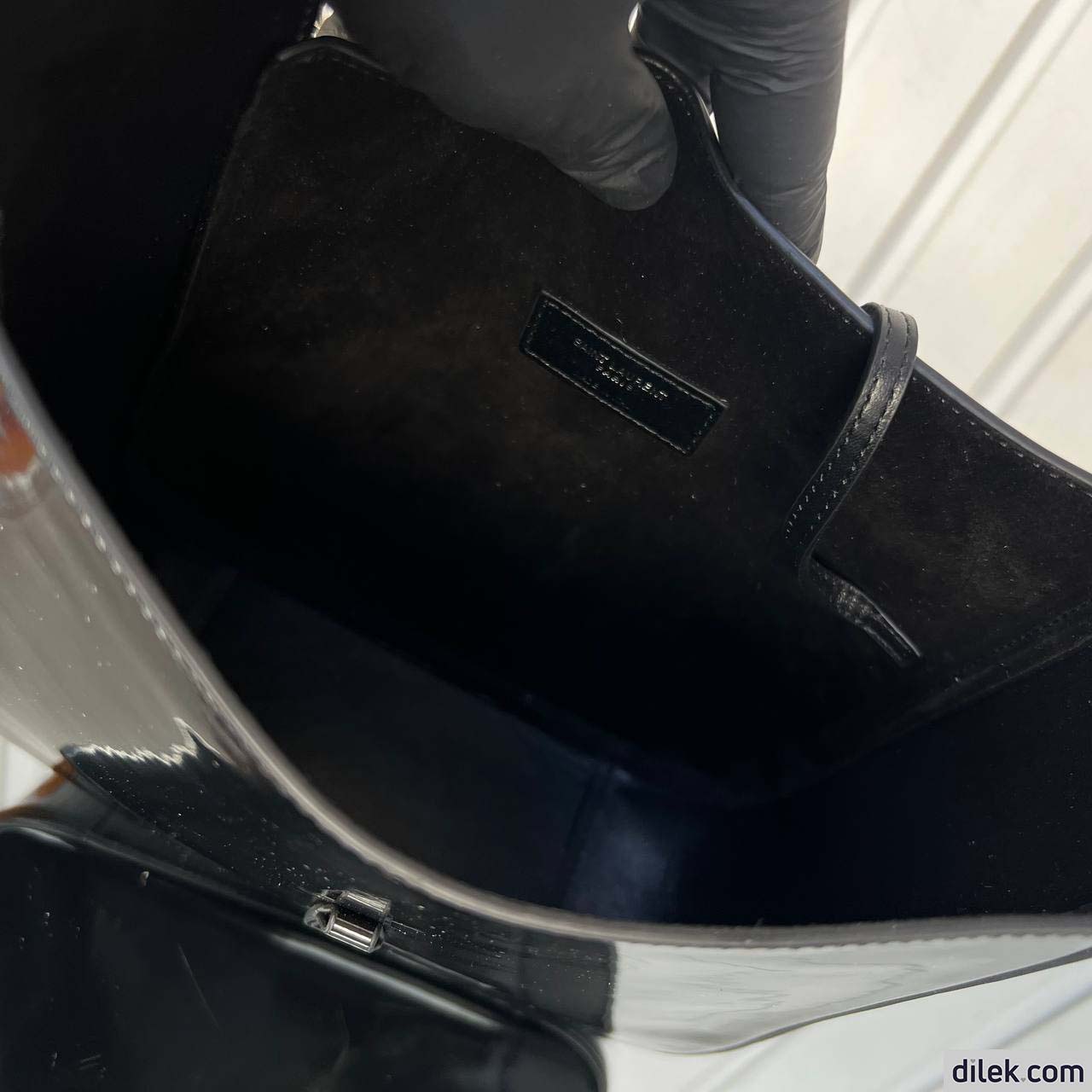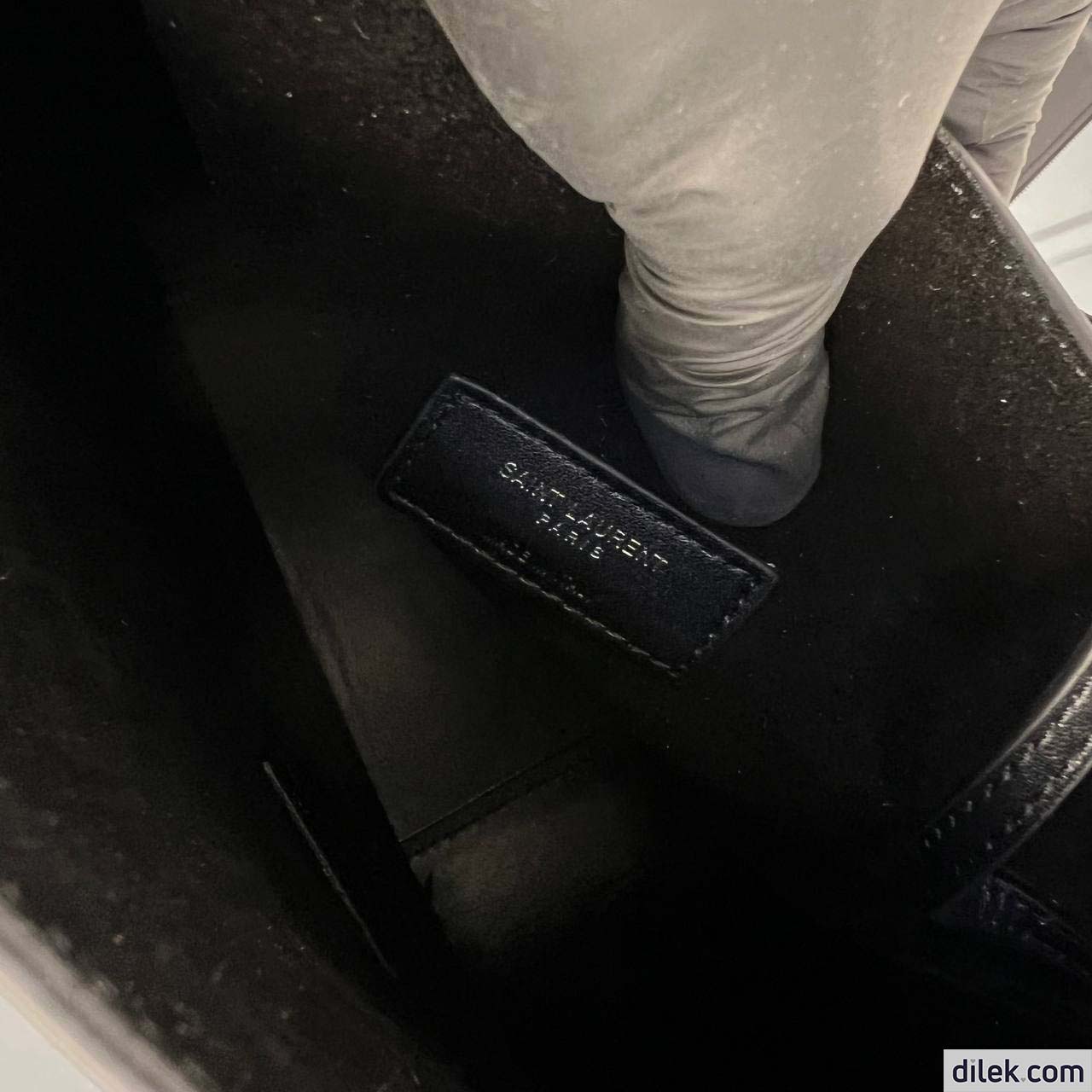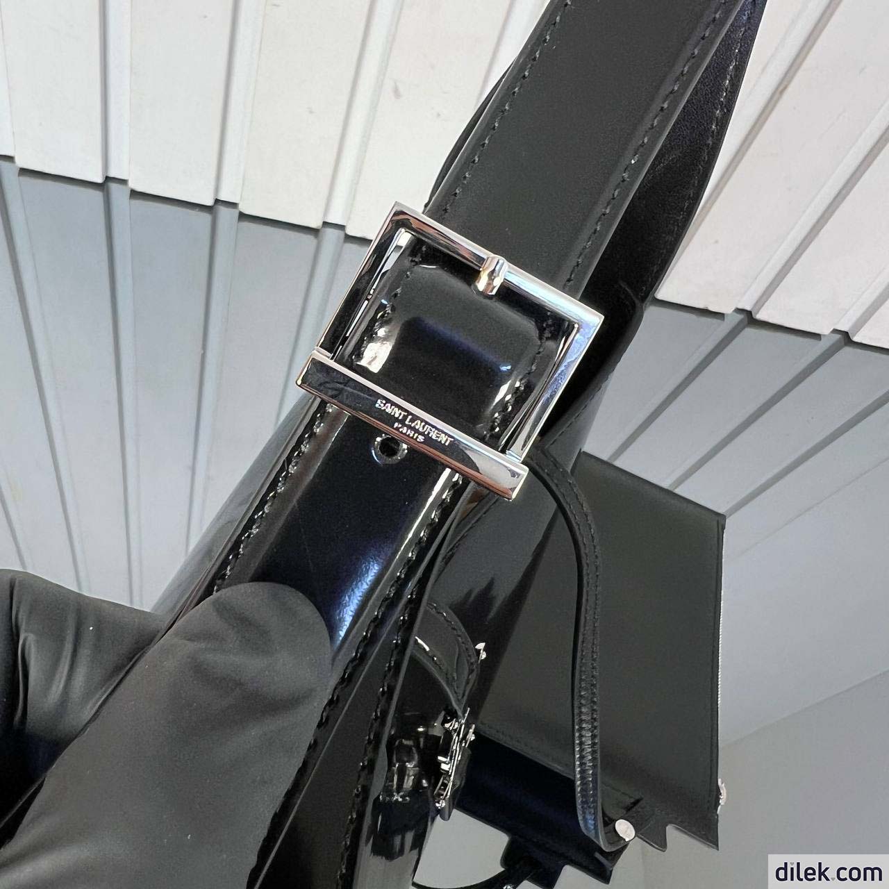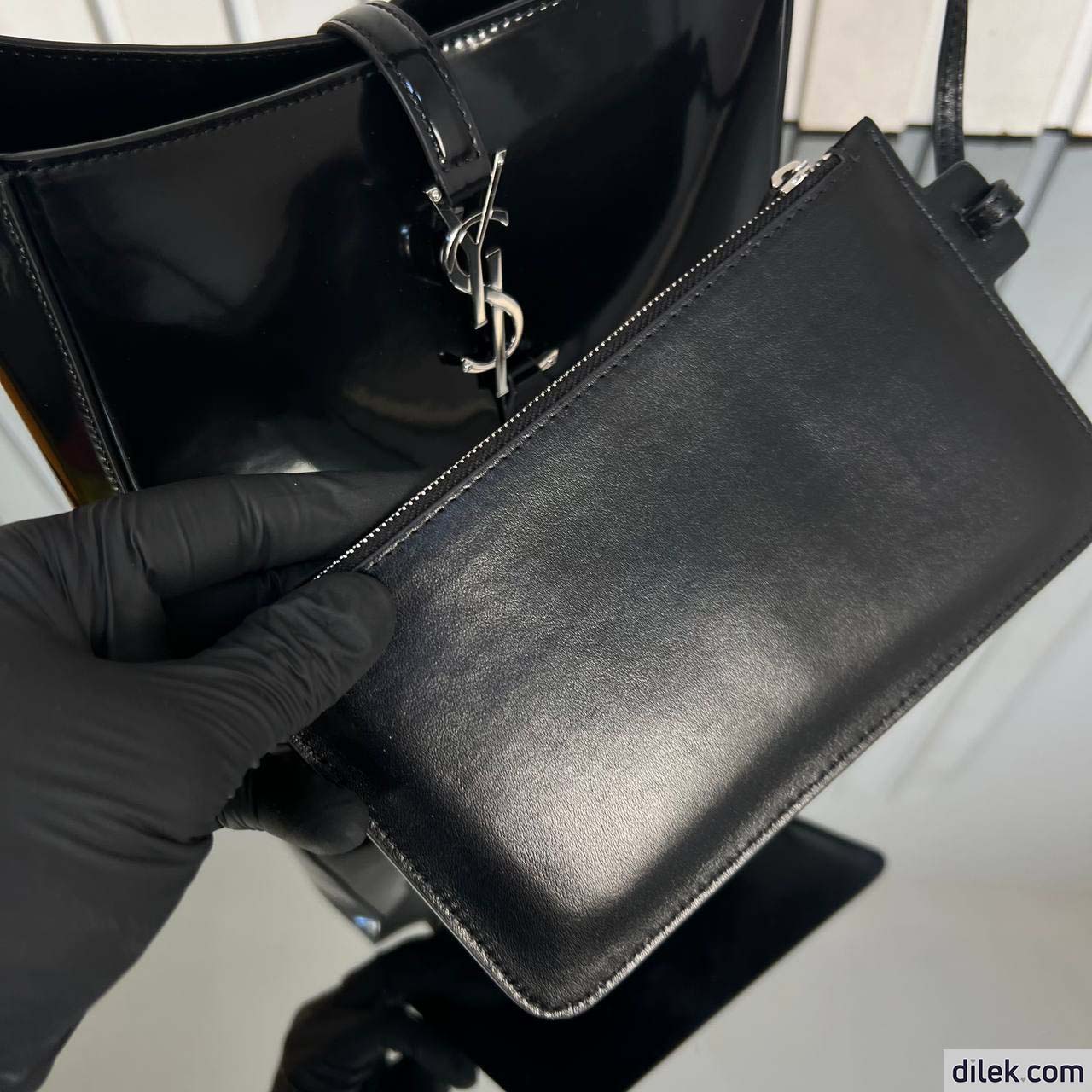 Bucket bag featuring the cassandre hook closure, top handle and an adjustable and detachable shoulder strap.