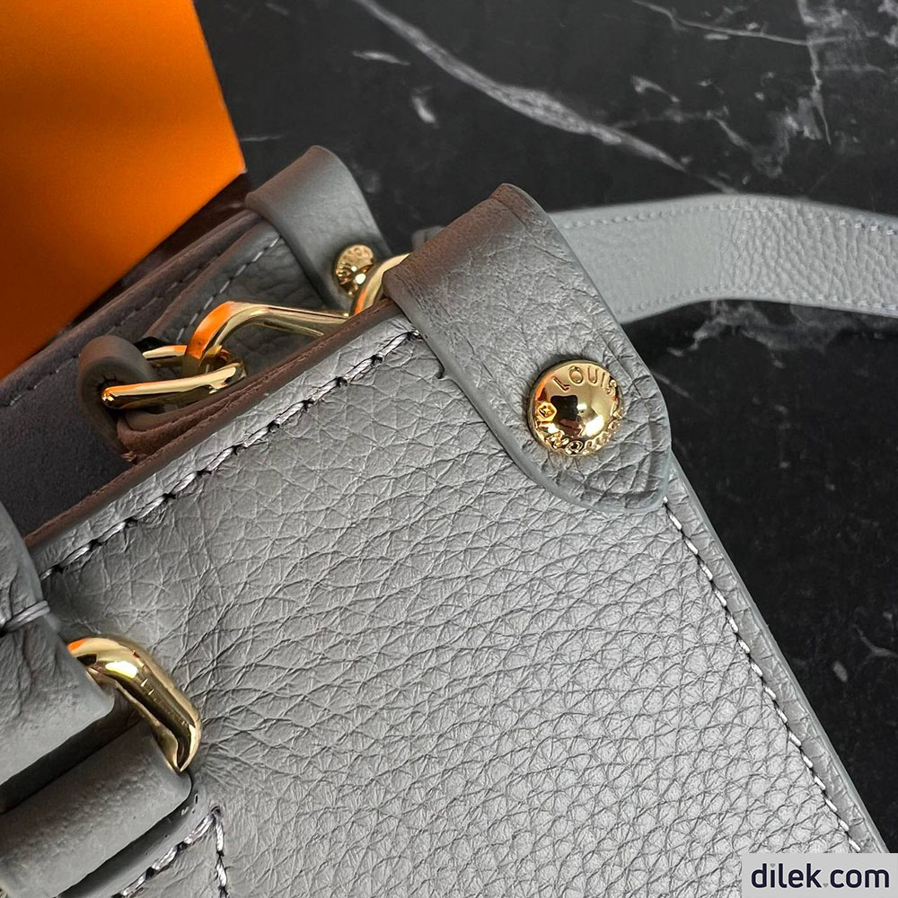 With its sleek design and sophisticated details, the Lock & Go handbag embodies effortless chic. Fashioned from smooth grained calf leather, it is finished with a gleaming LV turn lock, engraved rivets and a hot-stamped Louis Vuitton signature. Perfect for daily use, this versatile bag has both top handles and an adjustable, detachable strap for shoulder or cross-body wear.