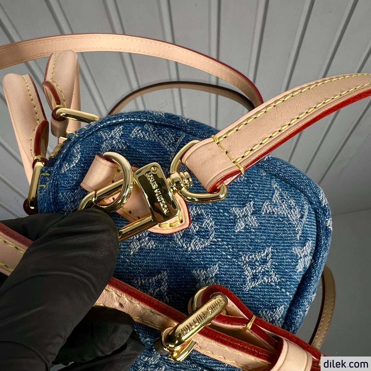 The adorable Speedy Nano handbag is even cuter in stone-washed Monogram Denim with natural leather handles and removable shoulder strap. The denim canvas is made from certified-organic cotton. On the side of the bag is a small pocket that opens and closes with a distinctive tuck lock. The Nano fits a smartphone, compact wallet, and lipstick.