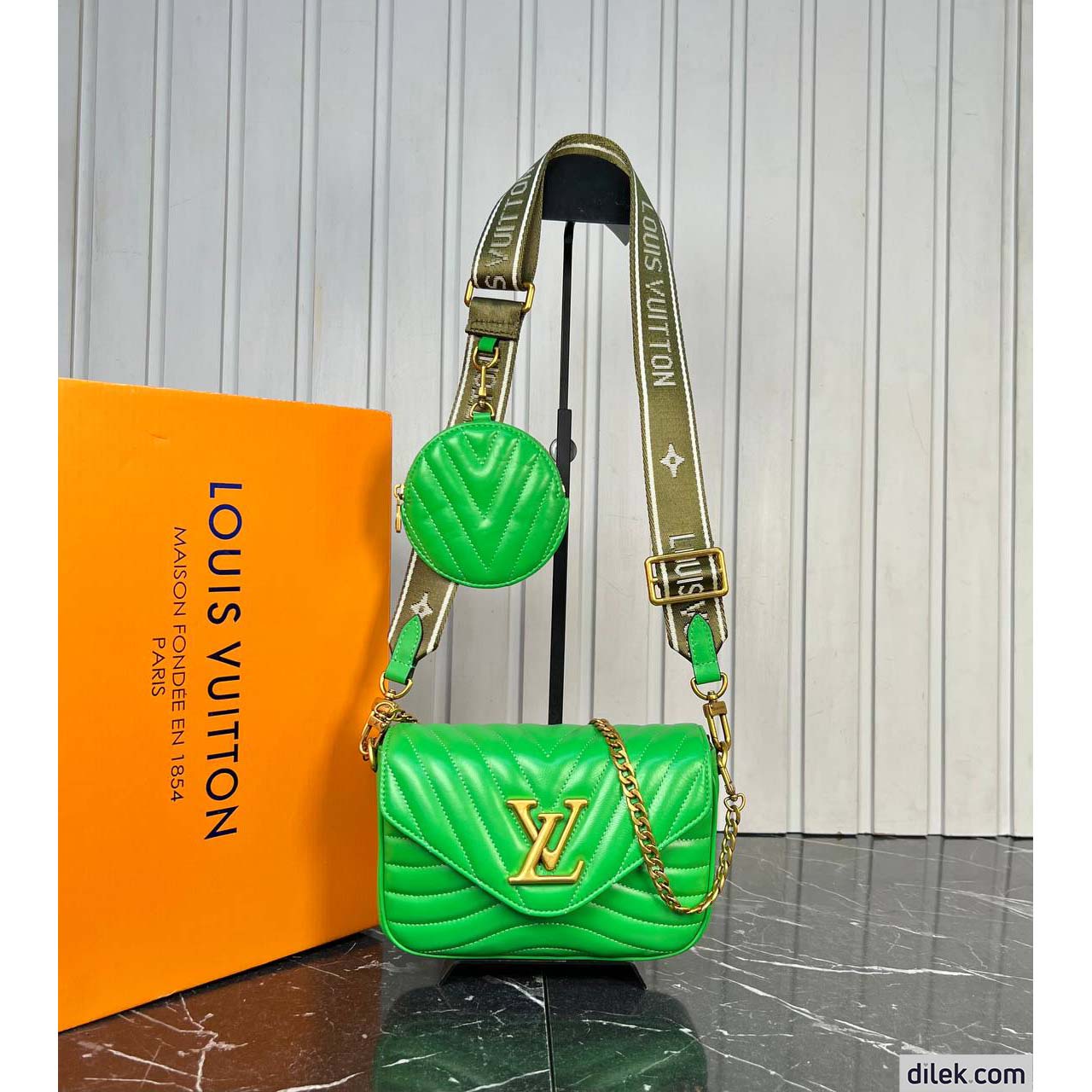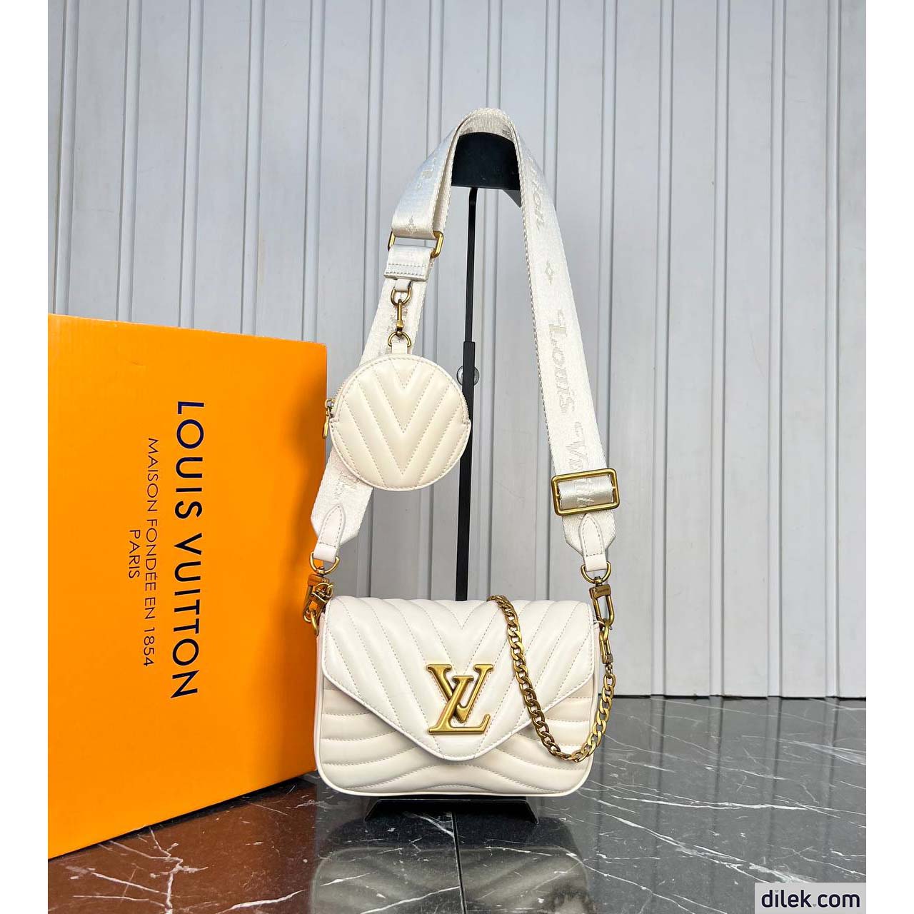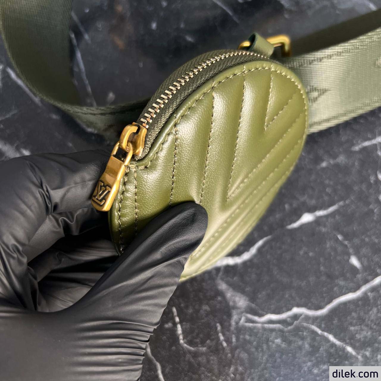 Louis Vuitton introduces the versatile New Wave Multi-Pochette crossbody handbag in quilted cowhide leather. With its wide strap, featuring an embroidered Louis Vuitton signature, gold-color chain for hand or short shoulder carry, and round coin purse clipped on the strap’s snap hook, all removable, it is the very definition of a versatile fashion accessory.