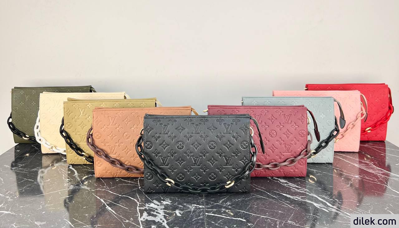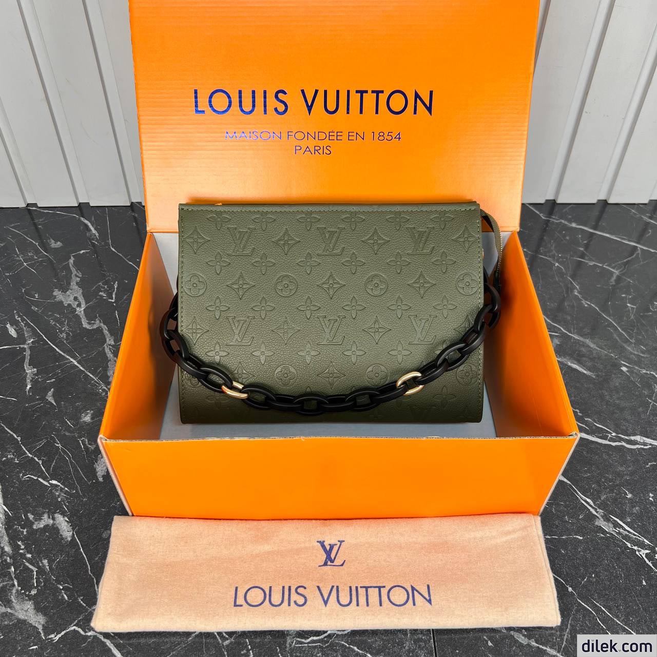 The Toiletry Pouch On Chain was inspired by the Monogram Toiletry Pouch cosmetic pouch, created in 1901, which Louis Vuitton clients also used as a clutch. This reworked design adds a removable chain and refined natural leather trim to create a fashionable bag, which can be carried in the hand or on the shoulder. Concealed inside is a smaller version of the pouch, which can also be used separately.